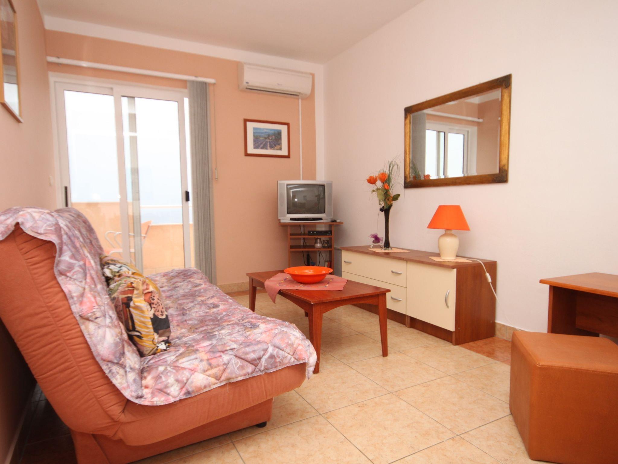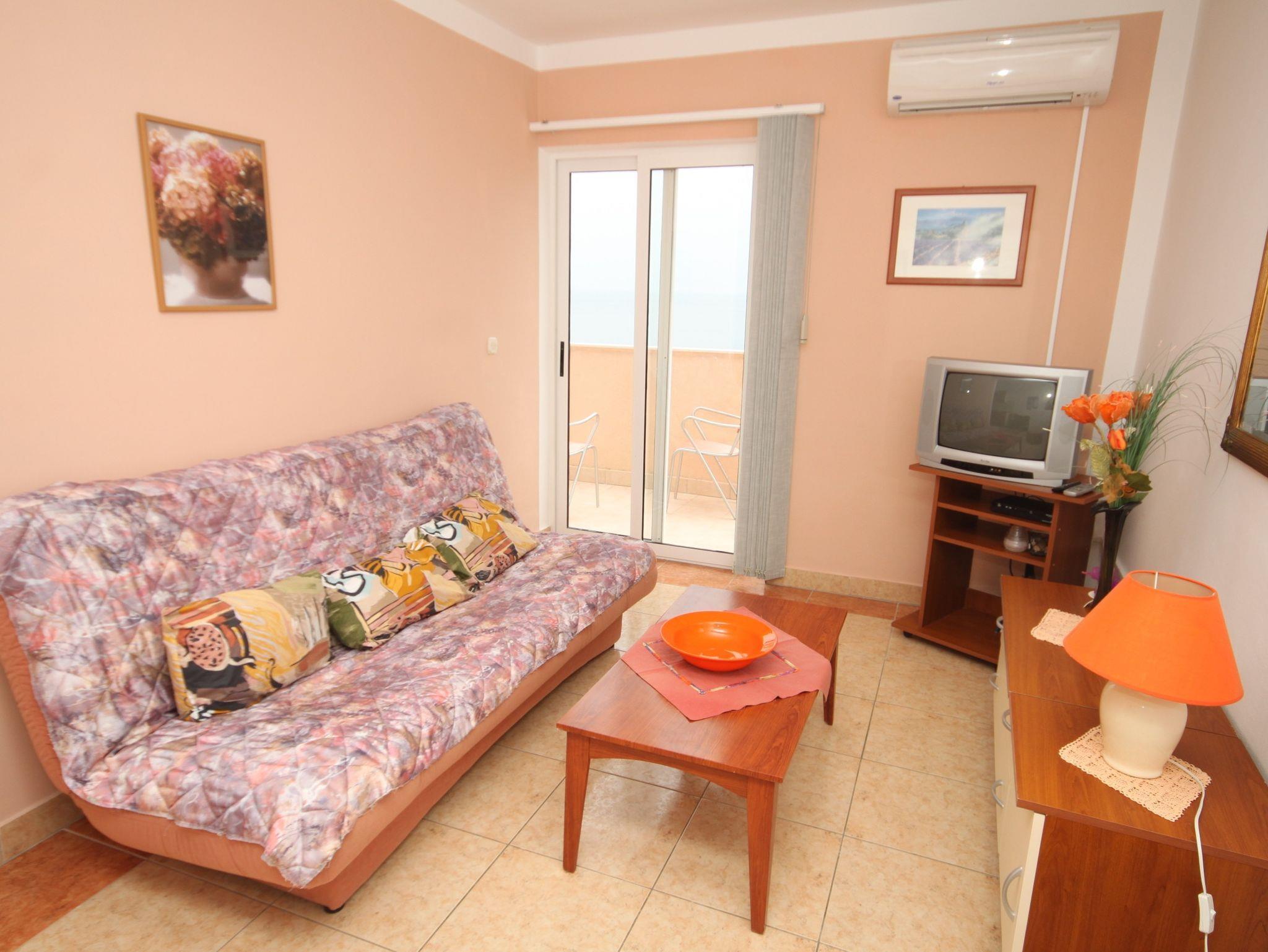 Ferienwohnung bietet Platz für 3 Gäste. Die Betten sind in Schlafzimmern, die es 1 gibt, und in Wohnzimmer, innerhalb einer Gesamtfläche von 31m2, angeordnet. Die Gäste haben einen eigenen Balkon zur Verfügung, auf der sie in warmen Sommernächten genießen können. Das Apartment bietet Meerblick. Es ist erlaubt, Speisen auf dem Gemeinschafts-Grill vorzubereiten. In der Unterkunftseinheit besteht die Möglichkeit des Mitbringens von Haustieren gegen Aufpreis. Die reservierte Unterkunftseinheit verfügt über einen gemeinsame Terrasse. IM PREIS INBEGRIFFEN: Kurtaxe, Endreinigung, Parkplatz, Internet, Bootsanlegeplatz, Kinderbett. UNVERBINDLICHE ZUSÄTZLICHE KOSTEN: Frühstück (15,00 €, 50% Nachlass für Kinder zwischen 4 und 12 Jahren, Kinder bis 4 Jahre sind frei.), Klimatisierung (5,00 € pro Nacht), Wäschewaschen (3,00 € Waschen), Haustiere (10,00 € pro Nacht), Zusatzbett (15,00 € pro Nacht). Die Verfügbarkeit zusätzlicher Dienstleistungen in Ihrem reservierten Termin und die Preise derselben (falls nicht aufgeführt) müssen im Voraus überprüft werden. Zusätzliche Dienstleistungen die in der Zahlungsaufforderung nicht aufgeführt sind werden direkt beim Vermieter bezahlt, angenommen der Gast nutzt auch diese. Ermäßigung auf den Grundpreis: Gratistag 14=13 (bei einem Aufenthalt von 14 Tagen oder mehr erhalten Sie einen Gratistag für den Aufenthalt bis 31.12.26).