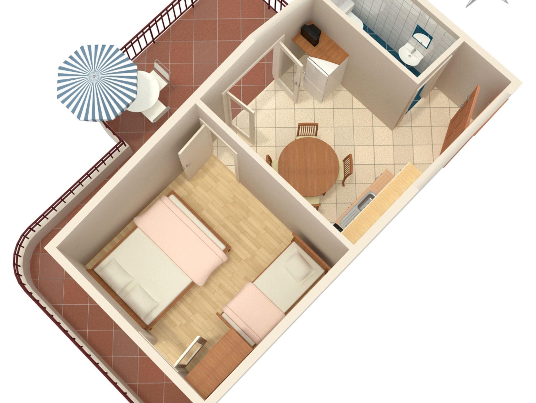 Ferienwohnung bietet Platz für 3 Gäste. Die Betten sind in Schlafzimmern, die es 1 gibt, innerhalb einer Gesamtfläche von 25m2, angeordnet. Die Gäste haben eine eigene Terrasse zur Verfügung, auf der sie in warmen Sommernächten genießen können. Das Apartment bietet Meerblick. Es ist erlaubt, Speisen auf dem Gemeinschafts-Grill vorzubereiten. In der Unterkunftseinheit besteht die Möglichkeit des Mitbringens von Haustieren gegen Aufpreis. IM PREIS INBEGRIFFEN: Kurtaxe, Endreinigung, Klimatisierung, Parkplatz, Internet. VERBINDLICHE ZUSÄTZLICHE KOSTEN: Aufzahlung für Kurzaufenthalte (prozentualer Zuschlag pro Nächtigungsanzahl: 30% - 1, 20% - 2, 10% - 3). UNVERBINDLICHE ZUSÄTZLICHE KOSTEN: Haustiere (5,00 € pro Nacht). Die Verfügbarkeit zusätzlicher Dienstleistungen in Ihrem reservierten Termin und die Preise derselben (falls nicht aufgeführt) müssen im Voraus überprüft werden. Zusätzliche Dienstleistungen die in der Zahlungsaufforderung nicht aufgeführt sind werden direkt beim Vermieter bezahlt, angenommen der Gast nutzt auch diese.