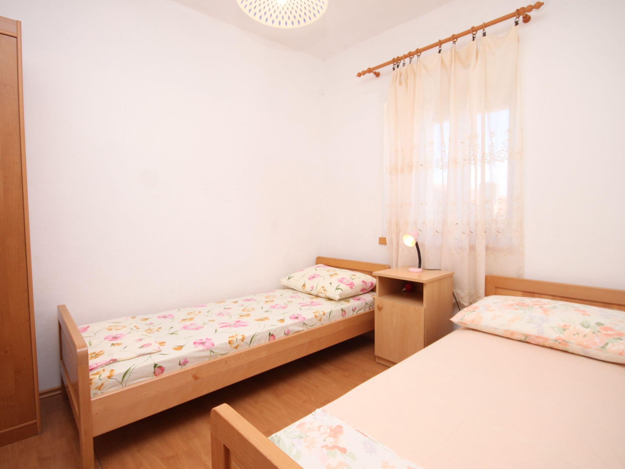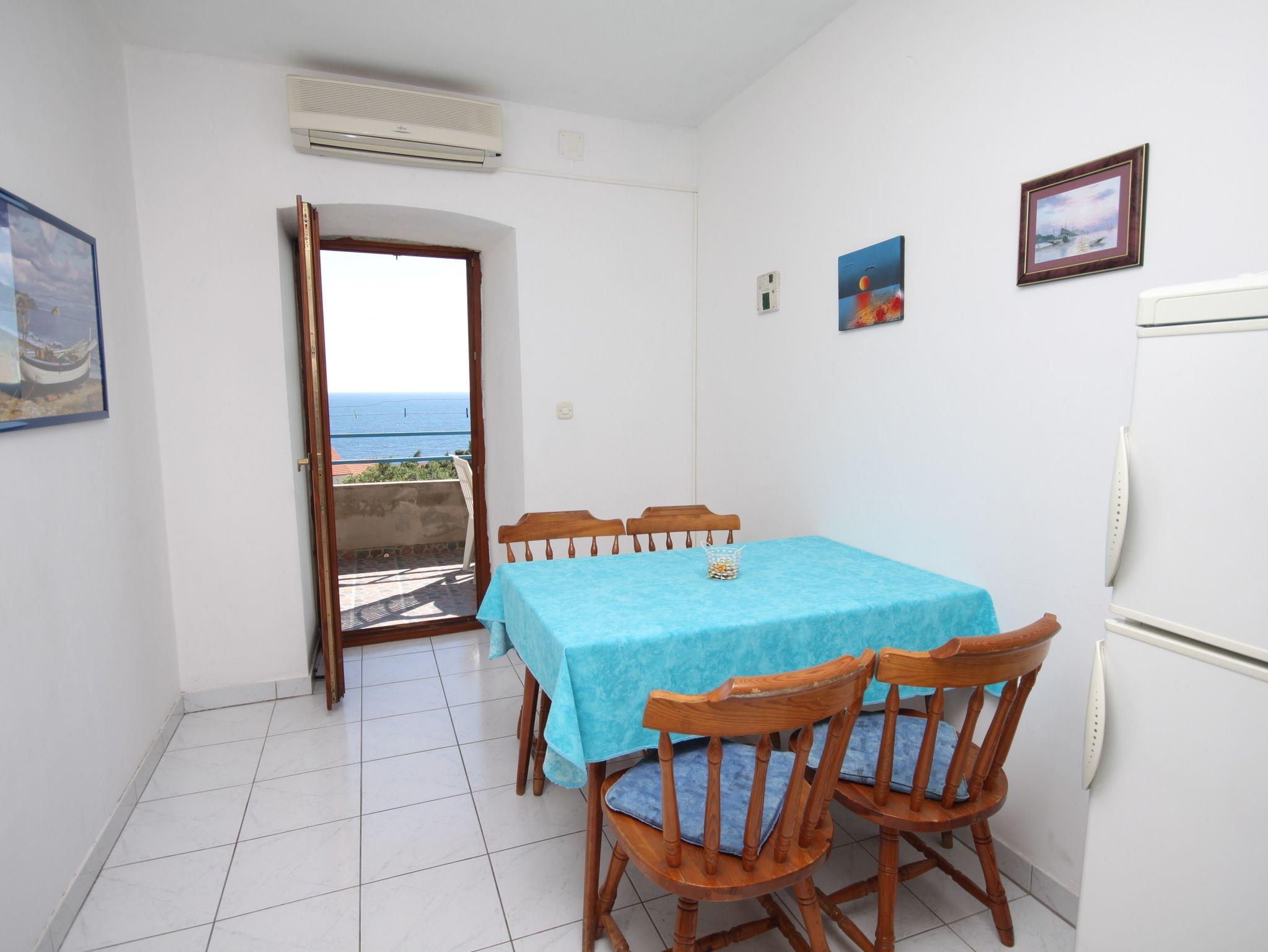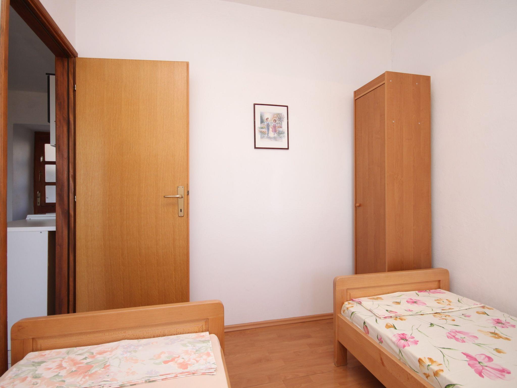 Ferienwohnung bietet Platz für 4 Gäste. Die Betten sind in Schlafzimmern, die es 2 gibt, innerhalb einer Gesamtfläche von 34m2, angeordnet. Die Gäste haben eine eigene Terrasse zur Verfügung, auf der sie in warmen Sommernächten genießen können. Das Apartment bietet Meerblick. Es ist erlaubt, Speisen auf dem Gemeinschafts-Grill vorzubereiten. In der Unterkunftseinheit besteht die Möglichkeit des Mitbringens von Haustieren, und die Dienstleistung ist im Preis der Unterkunft enthalten. IM PREIS INBEGRIFFEN: Kurtaxe, Endreinigung, Klimatisierung, Parkplatz, Internet, Haustiere, Kinderbett, Bügeleisen, Bügelbrett, Föhn, tragbarer Grill. VERBINDLICHE ZUSÄTZLICHE KOSTEN: Aufzahlung für Kurzaufenthalte (prozentualer Zuschlag pro Nächtigungsanzahl: 30% - 1, 20% - 2, 10% - 3). Die Verfügbarkeit zusätzlicher Dienstleistungen in Ihrem reservierten Termin und die Preise derselben (falls nicht aufgeführt) müssen im Voraus überprüft werden. Zusätzliche Dienstleistungen die in der Zahlungsaufforderung nicht aufgeführt sind werden direkt beim Vermieter bezahlt, angenommen der Gast nutzt auch diese. Ermäßigung auf den Grundpreis: Gratistag 14=13 (bei einem Aufenthalt von 14 Tagen oder mehr erhalten Sie einen Gratistag für den Aufenthalt bis 31.12.26).