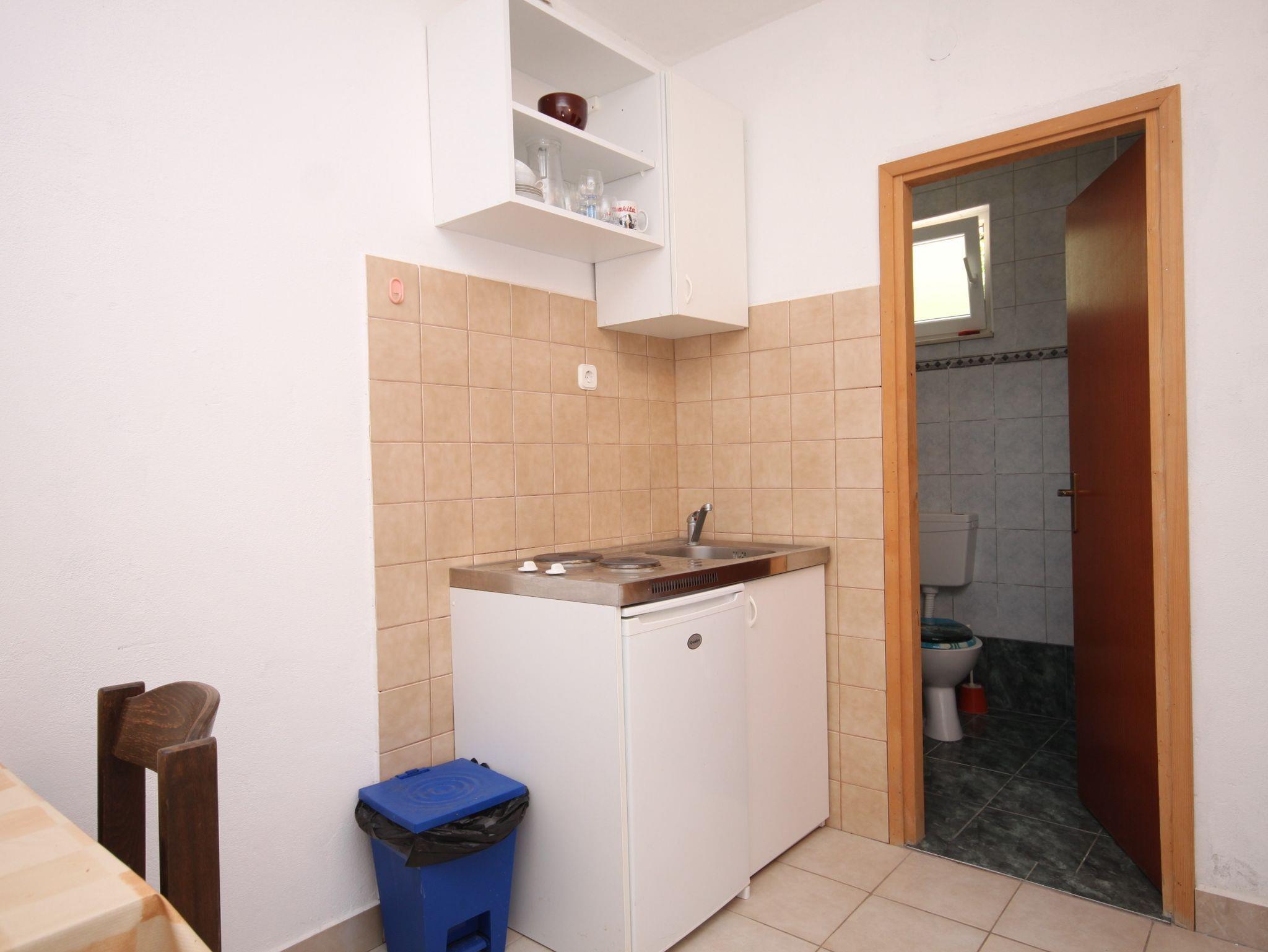Studio bietet Platz für 2 Gäste. Die Betten sind in Schlafzimmern, die es 1 gibt, innerhalb einer Gesamtfläche von 21m2, angeordnet. Die Gäste haben eine eigene Terrasse zur Verfügung, auf der sie in warmen Sommernächten genießen können. Das Studio-Apartment bietet Meerblick. Es ist erlaubt, Speisen auf dem Gemeinschafts-Grill vorzubereiten. In der Unterkunftseinheit besteht die Möglichkeit des Mitbringens von Haustieren gegen Aufpreis. IM PREIS INBEGRIFFEN: Kurtaxe, Endreinigung, Klimatisierung, Parkplatz, Internet, Kinderbett, Bügeleisen, Bügelbrett, Föhn. VERBINDLICHE ZUSÄTZLICHE KOSTEN: Aufzahlung für Kurzaufenthalte (prozentualer Zuschlag pro Nächtigungsanzahl: 30% - 1, 20% - 2, 10% - 3). UNVERBINDLICHE ZUSÄTZLICHE KOSTEN: Bootsanlegeplatz (5,00 € pro Nacht), Haustiere (5,00 € pro Nacht). Die Verfügbarkeit zusätzlicher Dienstleistungen in Ihrem reservierten Termin und die Preise derselben (falls nicht aufgeführt) müssen im Voraus überprüft werden. Zusätzliche Dienstleistungen die in der Zahlungsaufforderung nicht aufgeführt sind werden direkt beim Vermieter bezahlt, angenommen der Gast nutzt auch diese.