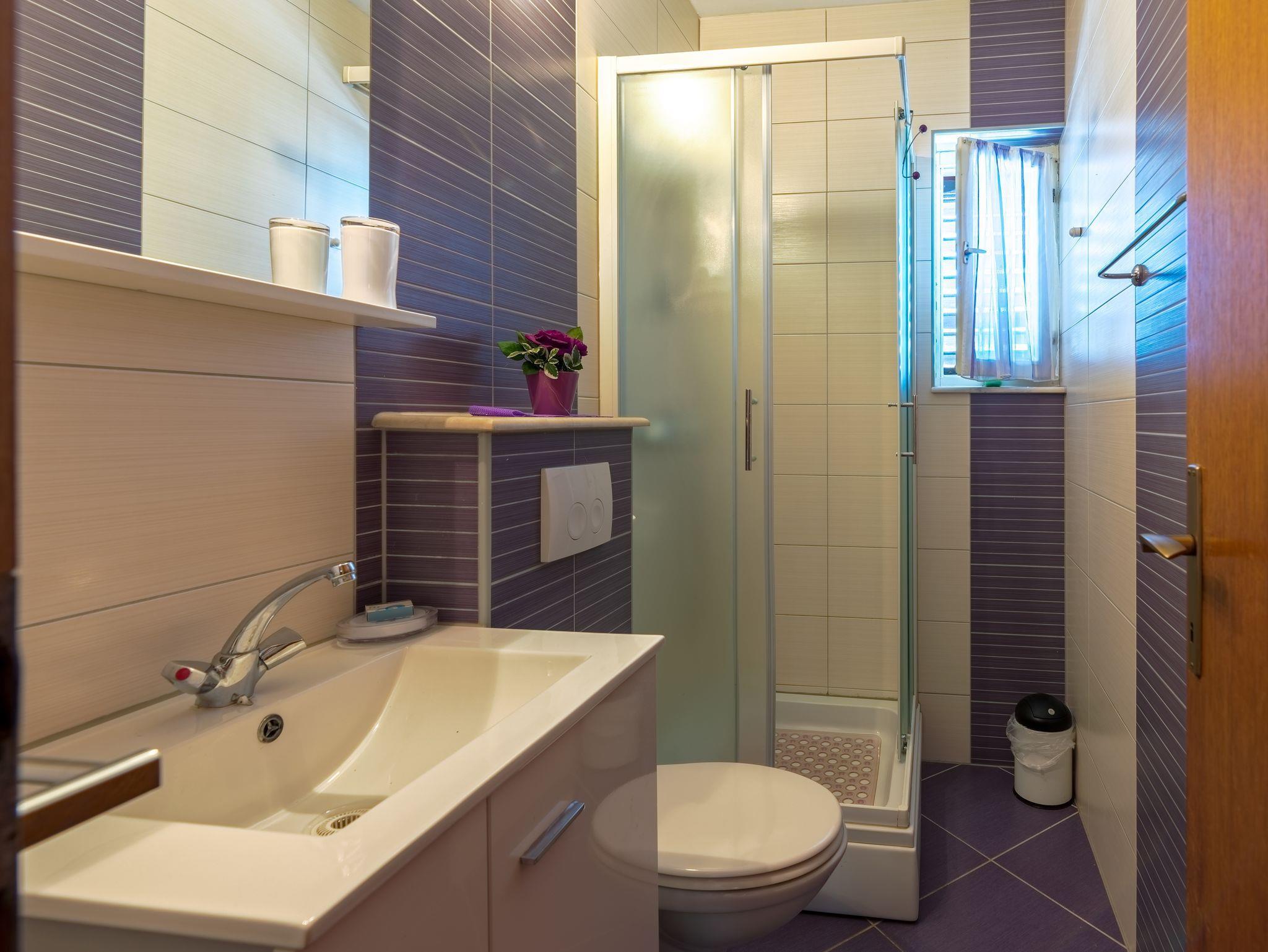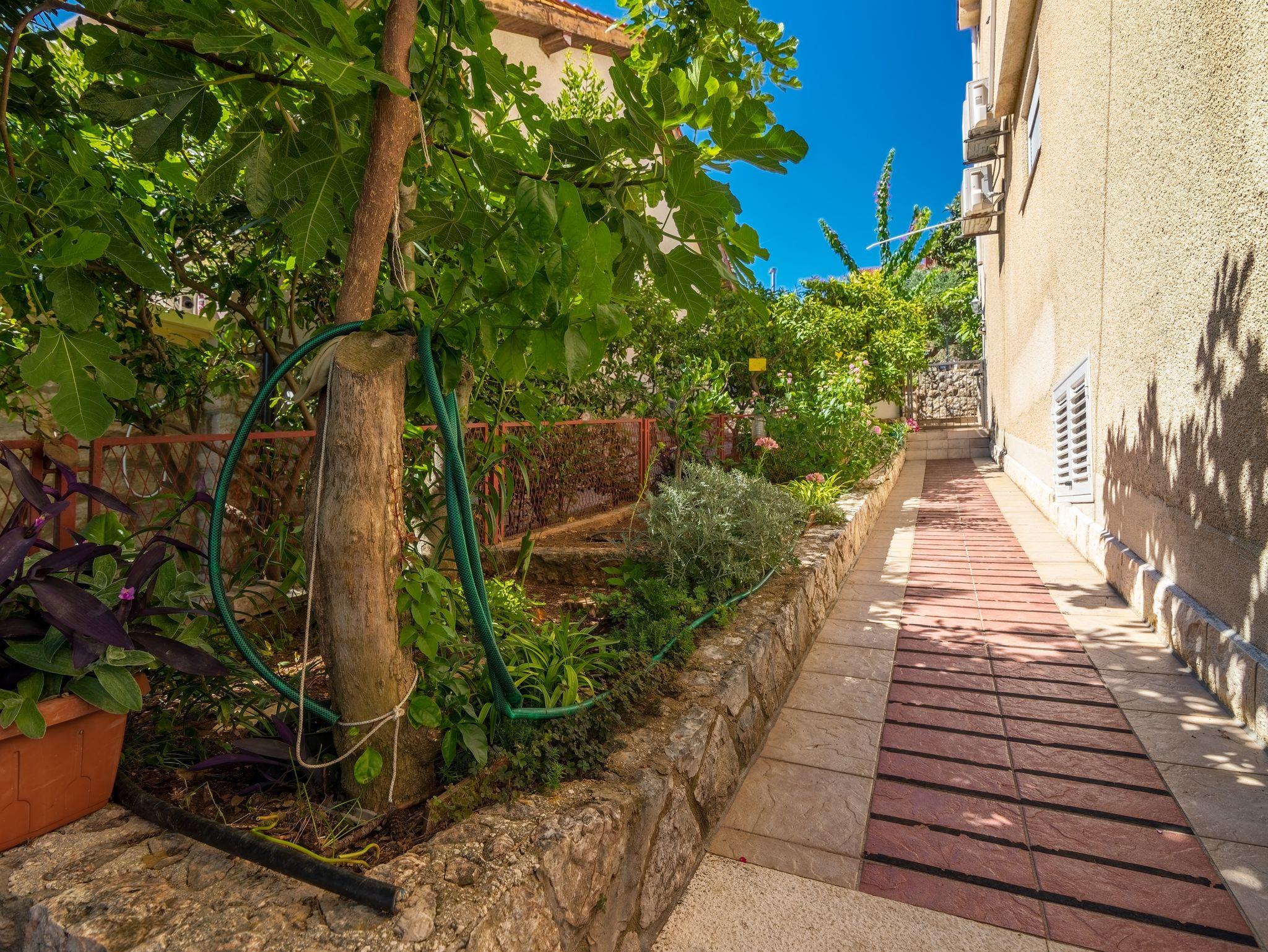 Ferienwohnung bietet Platz für 2 Gäste. Die Betten sind in Schlafzimmern, die es 1 gibt, innerhalb einer Gesamtfläche von 42m2, angeordnet. Die Gäste haben eine eigene Terrasse zur Verfügung, auf der sie in warmen Sommernächten genießen können. Das Apartment bietet Meerblick. Es ist erlaubt, Speisen auf dem Gemeinschafts-Grill vorzubereiten. IM PREIS INBEGRIFFEN: Kurtaxe, Endreinigung, Klimatisierung, Parkplatz, Internet, Wäschewaschen, Kinderbett. VERBINDLICHE ZUSÄTZLICHE KOSTEN: Aufzahlung für Kurzaufenthalte (prozentualer Zuschlag pro Nächtigungsanzahl: 30% - 1, 20% - 2, 10% - 3). Die Verfügbarkeit zusätzlicher Dienstleistungen in Ihrem reservierten Termin und die Preise derselben (falls nicht aufgeführt) müssen im Voraus überprüft werden. Zusätzliche Dienstleistungen die in der Zahlungsaufforderung nicht aufgeführt sind werden direkt beim Vermieter bezahlt, angenommen der Gast nutzt auch diese.