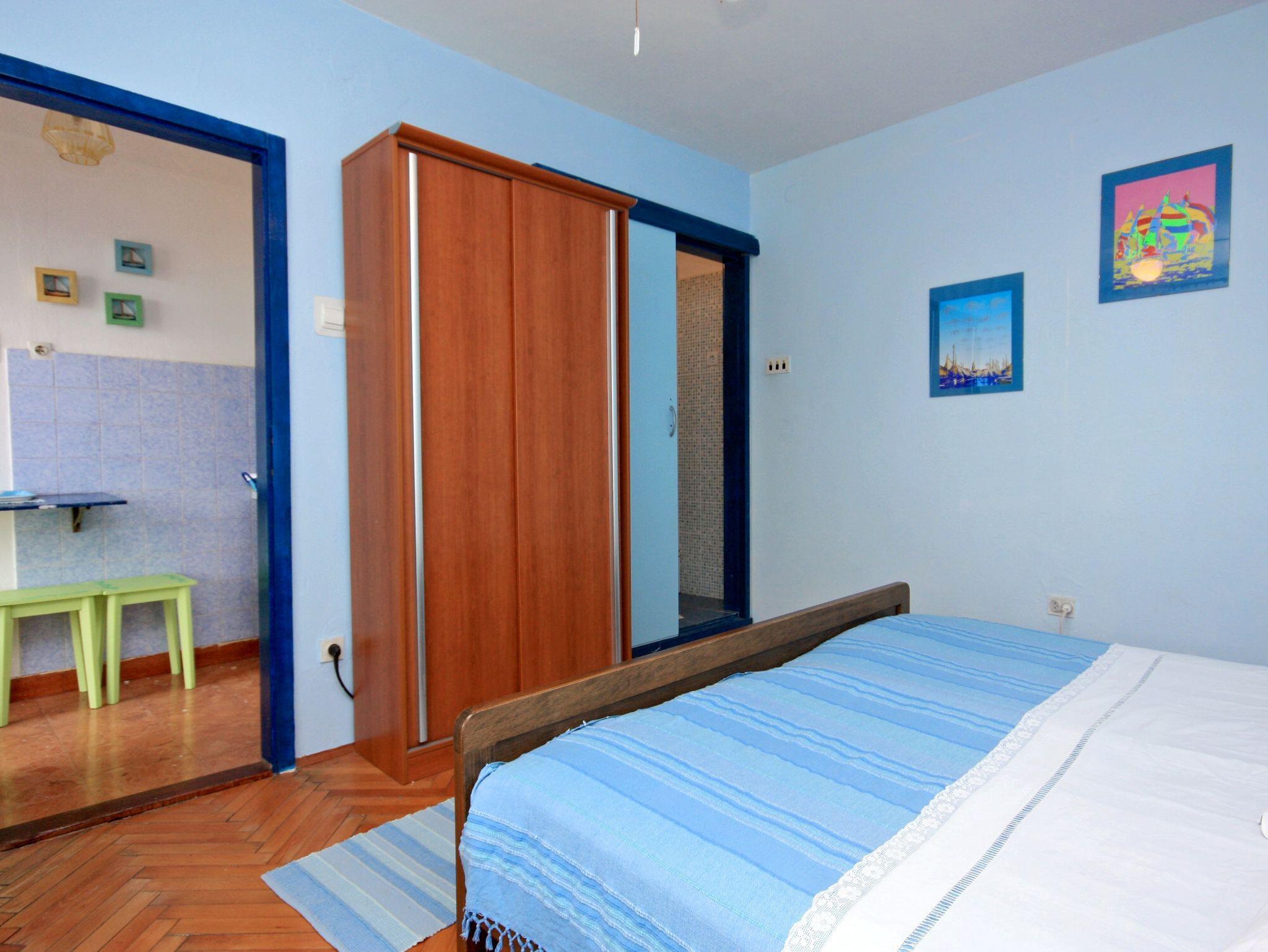 Studio bietet Platz für 3 Gäste. Die Betten sind in Schlafzimmern, die es 1 gibt, innerhalb einer Gesamtfläche von 20m2, angeordnet. Die Gäste haben eine eigene Terrasse zur Verfügung, auf der sie in warmen Sommernächten genießen können. Das Studio-Apartment bietet Meerblick. Es ist erlaubt, Speisen auf dem Gemeinschafts-Grill vorzubereiten. In der Unterkunftseinheit besteht die Möglichkeit des Mitbringens von Haustieren gegen Aufpreis. Durch die Terrasse der gebuchten Unterkunftseinheit gehen auch andere Gäste oder Vermieter. IM PREIS INBEGRIFFEN: Kurtaxe, Endreinigung, Parkplatz, Internet, Kinderbett. VERBINDLICHE ZUSÄTZLICHE KOSTEN: Aufzahlung für Kurzaufenthalte (prozentualer Zuschlag pro Nächtigungsanzahl: 30% - 1, 20% - 2, 10% - 3). UNVERBINDLICHE ZUSÄTZLICHE KOSTEN: Klimatisierung (5,00 € pro Nacht), Wäschewaschen (5,00 € Waschen), Haustiere (5,00 € pro Nacht). Die Verfügbarkeit zusätzlicher Dienstleistungen in Ihrem reservierten Termin und die Preise derselben (falls nicht aufgeführt) müssen im Voraus überprüft werden. Zusätzliche Dienstleistungen die in der Zahlungsaufforderung nicht aufgeführt sind werden direkt beim Vermieter bezahlt, angenommen der Gast nutzt auch diese. Ermäßigung auf den Grundpreis: Gratistag 14=13 (bei einem Aufenthalt von 14 Tagen oder mehr erhalten Sie einen Gratistag für den Aufenthalt bis 31.12.26).