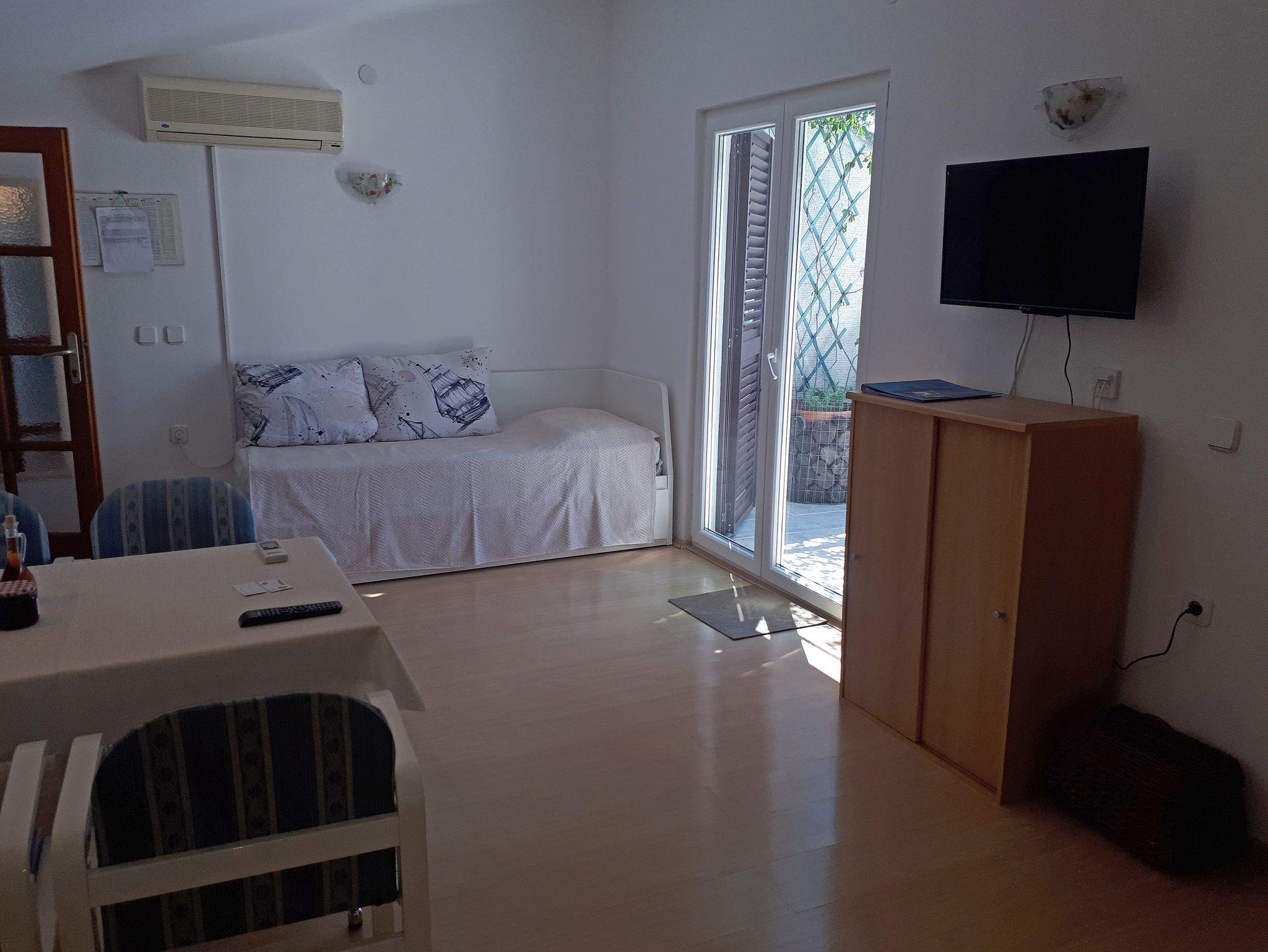 Ferienwohnung bietet Platz für 4 Gäste. Die Betten sind in Schlafzimmern, die es 1 gibt, und in Wohnzimmer, innerhalb einer Gesamtfläche von 36m2, angeordnet. Die Gäste haben eine eigene Terrasse zur Verfügung, auf der sie in warmen Sommernächten genießen können. Das Apartment bietet Meerblick. Es ist erlaubt, Speisen auf dem Gemeinschafts-Grill vorzubereiten. In der Unterkunftseinheit besteht die Möglichkeit des Mitbringens von Haustieren gegen Aufpreis. IM PREIS INBEGRIFFEN: Kurtaxe, Endreinigung, Klimatisierung, Parkplatz, Internet, Bügeleisen, Föhn. UNVERBINDLICHE ZUSÄTZLICHE KOSTEN: Haustiere (7,00 € pro Nacht). Die Verfügbarkeit zusätzlicher Dienstleistungen in Ihrem reservierten Termin und die Preise derselben (falls nicht aufgeführt) müssen im Voraus überprüft werden. Zusätzliche Dienstleistungen die in der Zahlungsaufforderung nicht aufgeführt sind werden direkt beim Vermieter bezahlt, angenommen der Gast nutzt auch diese. Ermäßigung auf den Grundpreis: Gratistag 14=13 (bei einem Aufenthalt von 14 Tagen oder mehr erhalten Sie einen Gratistag für den Aufenthalt bis 31.12.26).
