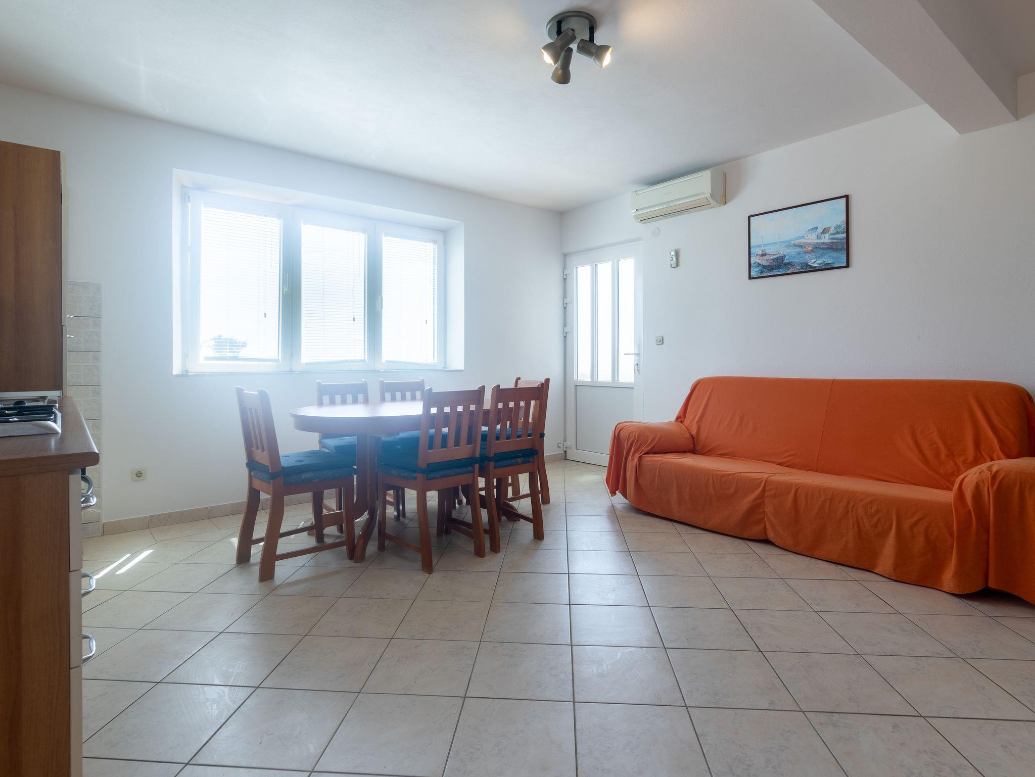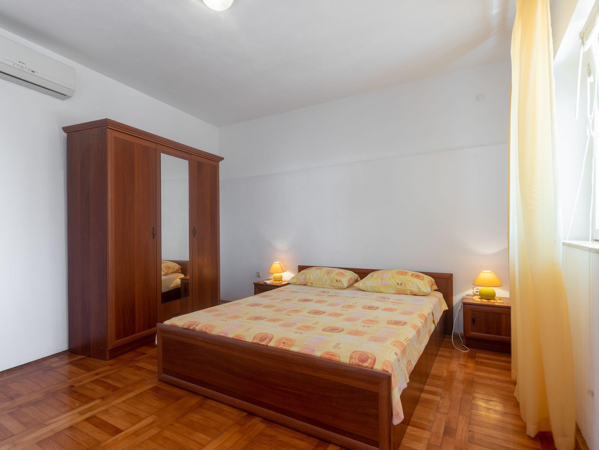 Ferienwohnung bietet Platz für 5 Gäste. Die Betten sind in Schlafzimmern, die es 2 gibt, und in Wohnzimmer, innerhalb einer Gesamtfläche von 65m2, angeordnet. Die Gäste haben eine eigene Terrasse zur Verfügung, auf der sie in warmen Sommernächten genießen können. Das Apartment bietet Meerblick. Für vollen Genuss und Entspannung gibt es einen privaten Grill für Gäste dieser Unterkunft. In der Unterkunftseinheit besteht die Möglichkeit des Mitbringens von Haustieren gegen Aufpreis. Unterkunftseinheit hat Räume, die von dem Rest der Einheit abgetrennt werden. IM PREIS INBEGRIFFEN: Kurtaxe, Endreinigung, Klimatisierung, Parkplatz, Internet, Bügeleisen, Bügelbrett, Föhn. VERBINDLICHE ZUSÄTZLICHE KOSTEN: Aufzahlung für Kurzaufenthalte (prozentualer Zuschlag pro Nächtigungsanzahl: 30% - 1, 20% - 2, 10% - 3). UNVERBINDLICHE ZUSÄTZLICHE KOSTEN: Garage (3,00 € pro Nacht), Wäschewaschen (15,00 € Waschen), Haustiere (5,00 € pro Nacht). Die Verfügbarkeit zusätzlicher Dienstleistungen in Ihrem reservierten Termin und die Preise derselben (falls nicht aufgeführt) müssen im Voraus überprüft werden. Zusätzliche Dienstleistungen die in der Zahlungsaufforderung nicht aufgeführt sind werden direkt beim Vermieter bezahlt, angenommen der Gast nutzt auch diese. Ermäßigung auf den Grundpreis: Gratistag 28=25 (bei einem Aufenthalt von 28 oder mehr Tagen erhalten Sie 3 kostenlose Tage für den Aufenthalt bis 31.12.26).