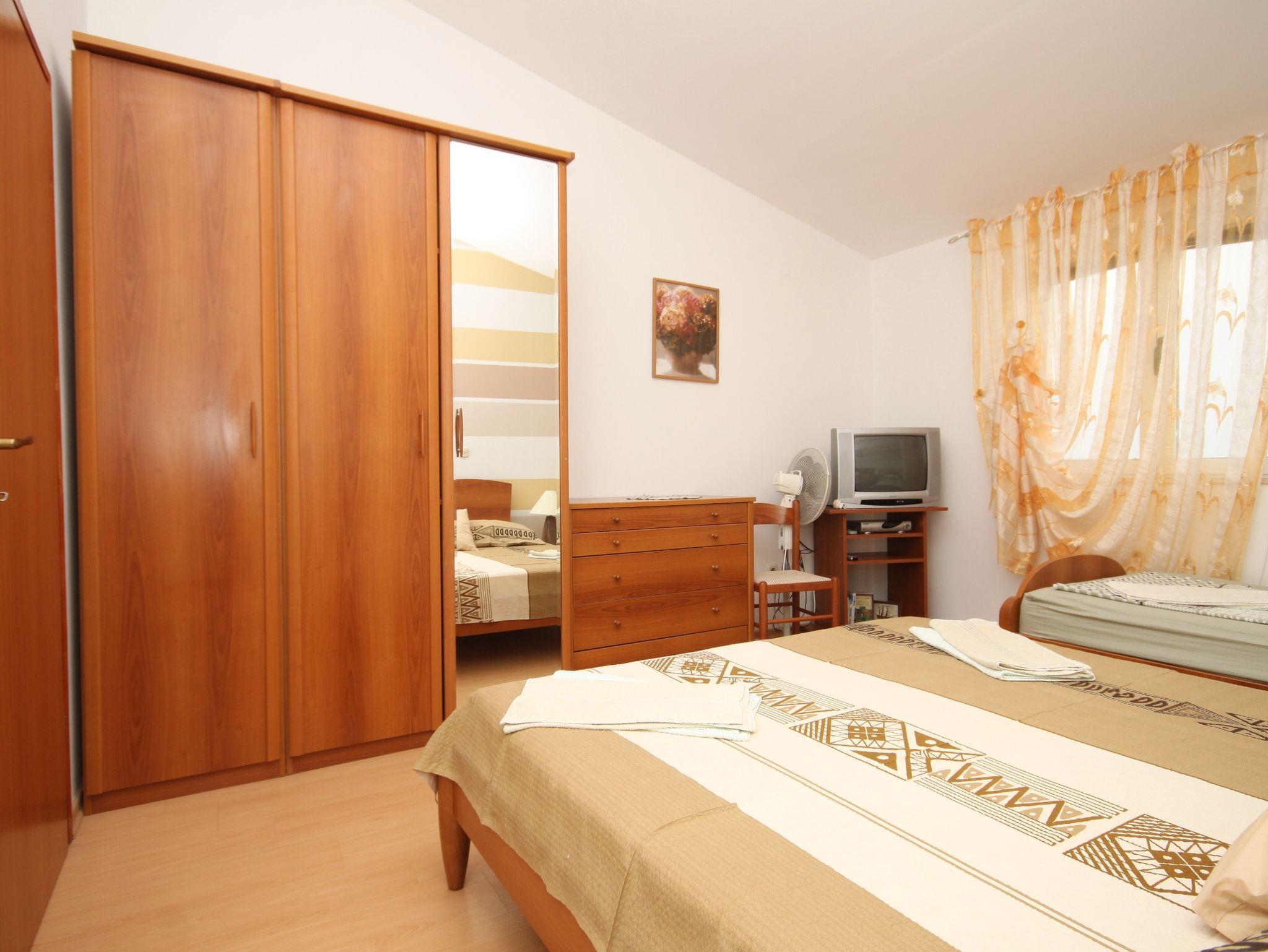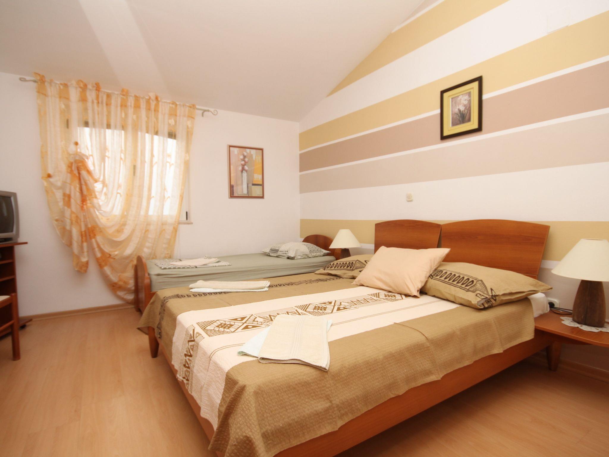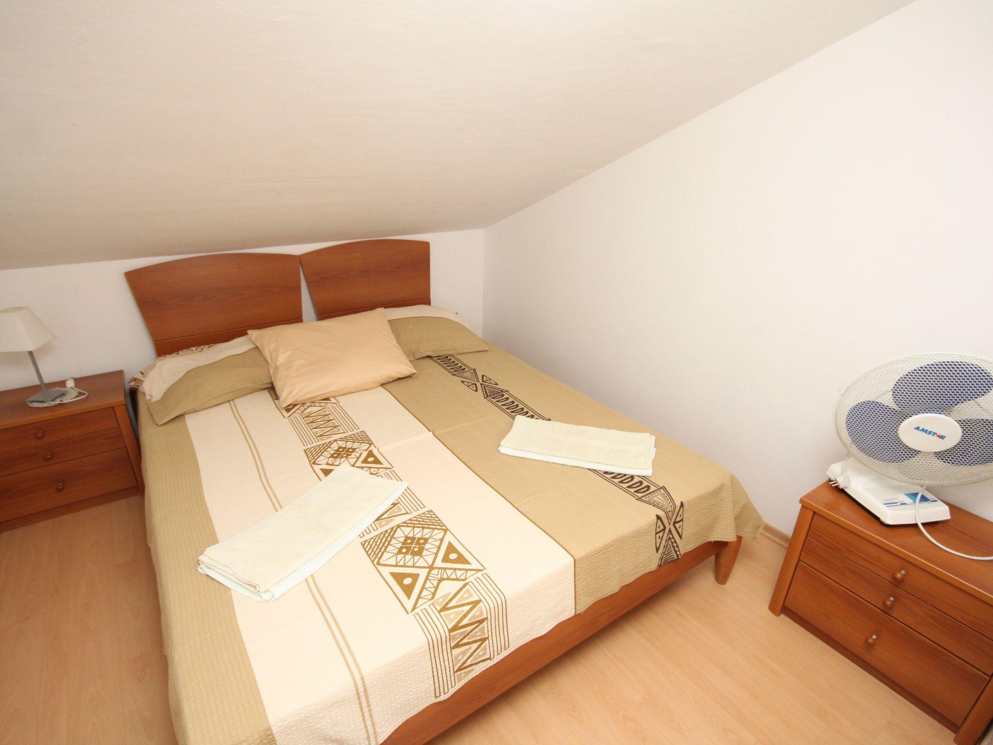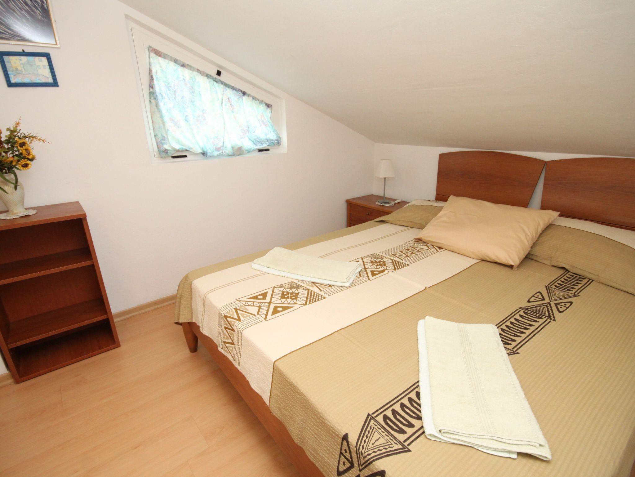 Ferienwohnung bietet Platz für 5 Gäste. Die Betten sind in Schlafzimmern, die es 2 gibt, innerhalb einer Gesamtfläche von 34m2, angeordnet. Das Apartment bietet Meerblick. Es ist erlaubt, Speisen auf dem Gemeinschafts-Grill vorzubereiten. In der Unterkunftseinheit besteht die Möglichkeit des Mitbringens von Haustieren gegen Aufpreis. Die reservierte Unterkunftseinheit verfügt über einen gemeinsame Terrasse. IM PREIS INBEGRIFFEN: Kurtaxe, Endreinigung, Parkplatz, Internet, Bootsanlegeplatz, Kinderbett. UNVERBINDLICHE ZUSÄTZLICHE KOSTEN: Frühstück (15,00 €, 50% Nachlass für Kinder zwischen 4 und 12 Jahren, Kinder bis 4 Jahre sind frei.), Klimatisierung (5,00 € pro Nacht), Wäschewaschen (3,00 € Waschen), Haustiere (10,00 € pro Nacht), Zusatzbett (15,00 € pro Nacht). Die Verfügbarkeit zusätzlicher Dienstleistungen in Ihrem reservierten Termin und die Preise derselben (falls nicht aufgeführt) müssen im Voraus überprüft werden. Zusätzliche Dienstleistungen die in der Zahlungsaufforderung nicht aufgeführt sind werden direkt beim Vermieter bezahlt, angenommen der Gast nutzt auch diese. Ermäßigung auf den Grundpreis: Gratistag 14=13 (bei einem Aufenthalt von 14 Tagen oder mehr erhalten Sie einen Gratistag für den Aufenthalt bis 31.12.26).