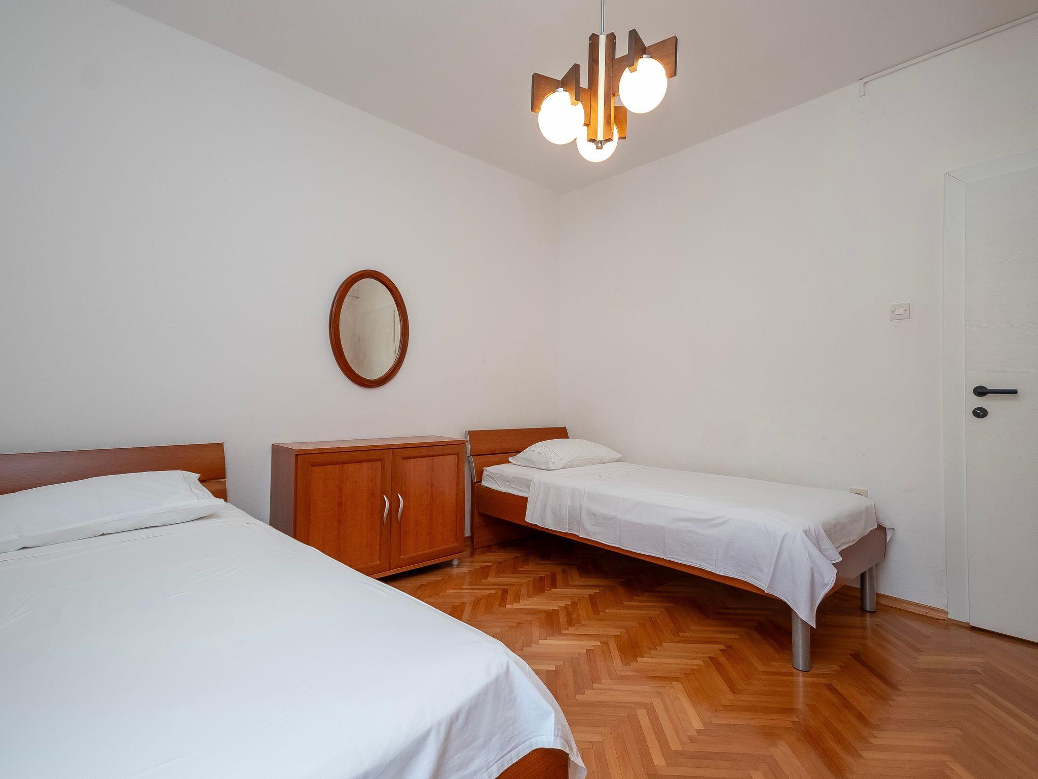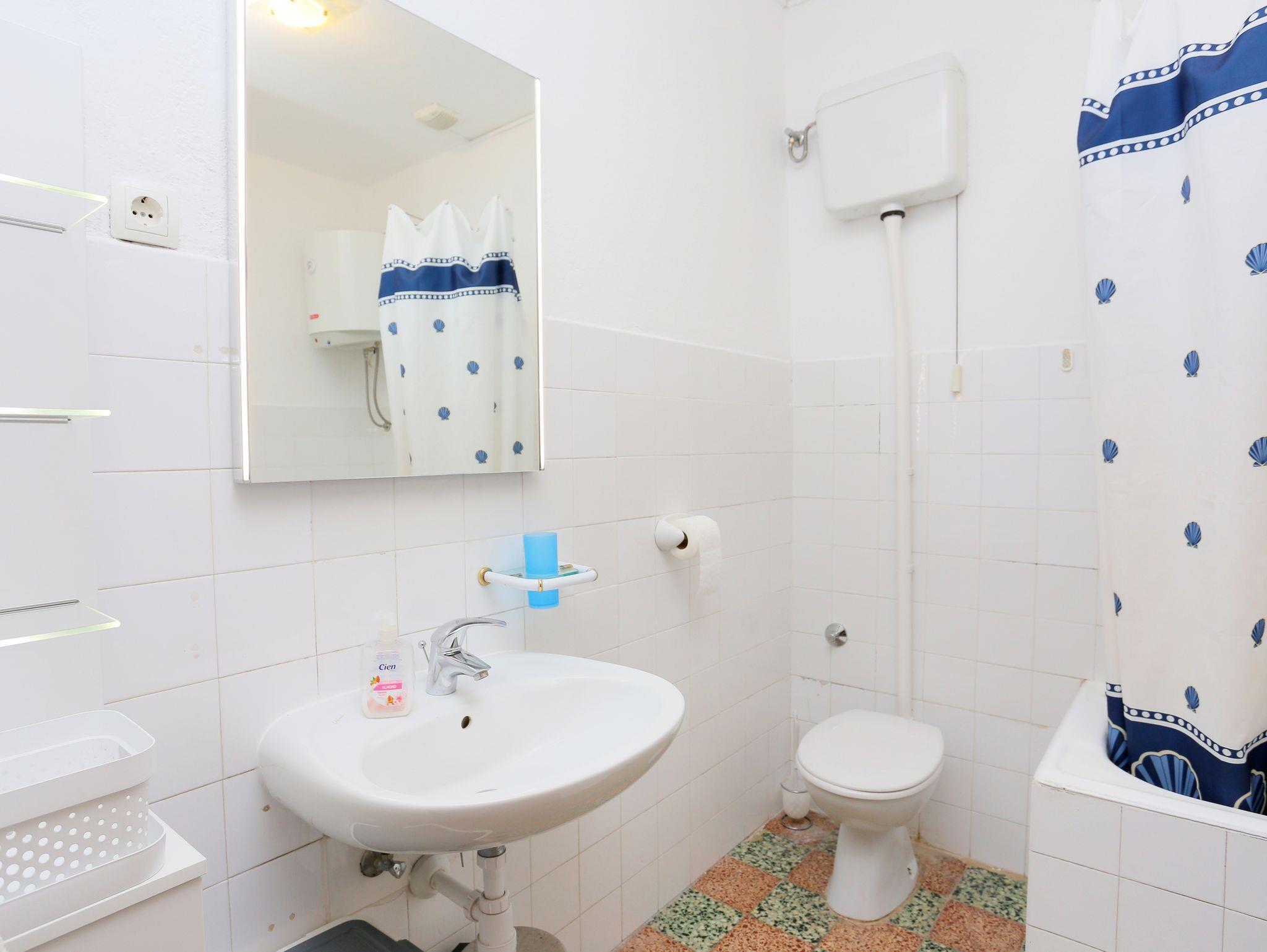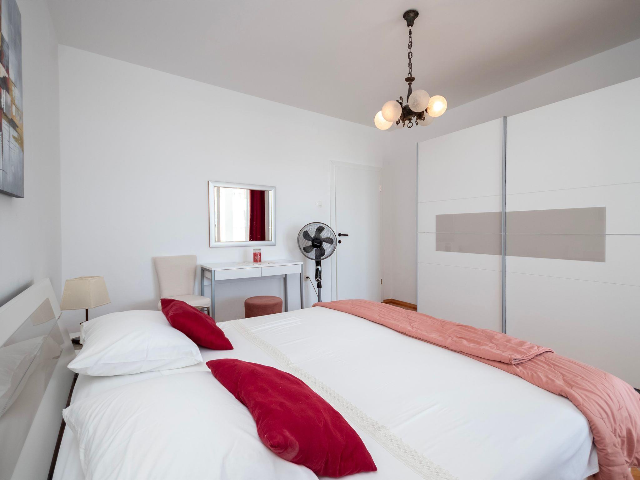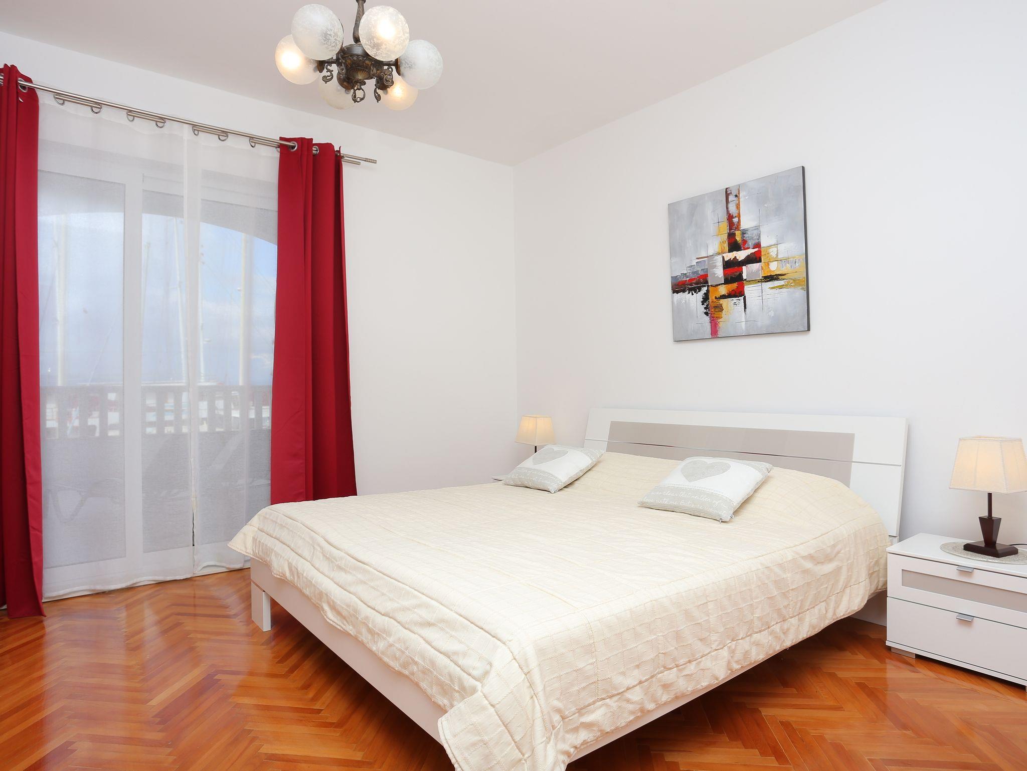 Ferienwohnung bietet Platz für 6 Gäste. Die Betten sind in Schlafzimmern, die es 3 gibt, innerhalb einer Gesamtfläche von 73m2, angeordnet. Die Gäste haben eine eigene Terrasse zur Verfügung, auf der sie in warmen Sommernächten genießen können. Das Apartment bietet Meerblick. Es ist erlaubt, Speisen auf dem Gemeinschafts-Grill vorzubereiten. IM PREIS INBEGRIFFEN: Kurtaxe, Endreinigung, Klimatisierung, Parkplatz, Internet, Bootsanlegeplatz, Kinderbett, tragbarer Grill. VERBINDLICHE ZUSÄTZLICHE KOSTEN: Aufzahlung für Kurzaufenthalte (prozentualer Zuschlag pro Nächtigungsanzahl: 30% - 1, 20% - 2, 10% - 3). UNVERBINDLICHE ZUSÄTZLICHE KOSTEN: Wäschewaschen (5,00 € Waschen). Die Verfügbarkeit zusätzlicher Dienstleistungen in Ihrem reservierten Termin und die Preise derselben (falls nicht aufgeführt) müssen im Voraus überprüft werden. Zusätzliche Dienstleistungen die in der Zahlungsaufforderung nicht aufgeführt sind werden direkt beim Vermieter bezahlt, angenommen der Gast nutzt auch diese.