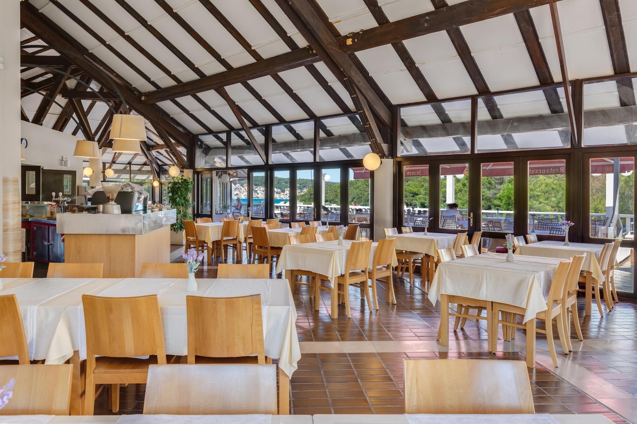 I skyggen av furutrærne smelter leilighetskomplekset harmonisk inn i omgivelsene og inviterer deg til å tilbringe en uforglemmelig ferie. Det er kun 50 meter mellom ditt praktisk innredede feriehus og den vakre bukten med det svakt skrånende havet - en ideell adresse for en bekymringsløs familieferie. Feriestedets omfattende fritidstilbud garanterer deg så mye variasjon du vil hver dag.I de to restaurantene kan du nyte kulinariske herligheter og glemme hverdagen. Hvis du vil trekke deg tilbake til privatlivet i mellom, kan du også lage noe selv på kjøkkenkroken i leiligheten din. Du kan enkelt få ingrediensene i supermarkedet, som også ligger på eiendommens eiendom. Jereza ligger omtrent 3 kilometer fra fastlandet, lett tilgjengelig via en bro som bare er 30 meter lang og er synonymt med skjønnheten i Dalmatia. Det krystallklare vannet, det originale middelhavsnaturlandskapet og de mange fritids- og underholdningstilbudene gjør stedet veldig populært blant feriegjester. Fra kirketårnet til menighetskirken har du en vakker utsikt over stedet og skjærgården. Det svakt skrånende havet i de vakre buktene er ideelt for en strandferie med familien. I sommermånedene avrunder tradisjonell folklore og fiskefestivaler det kulturelle tilbudet. inkludert: energikostnader, sengetøy, håndklær, sluttrengjøring, registreringsavgift. Mobilitet: Ikke egnet for personer med begrenset mobilitet.