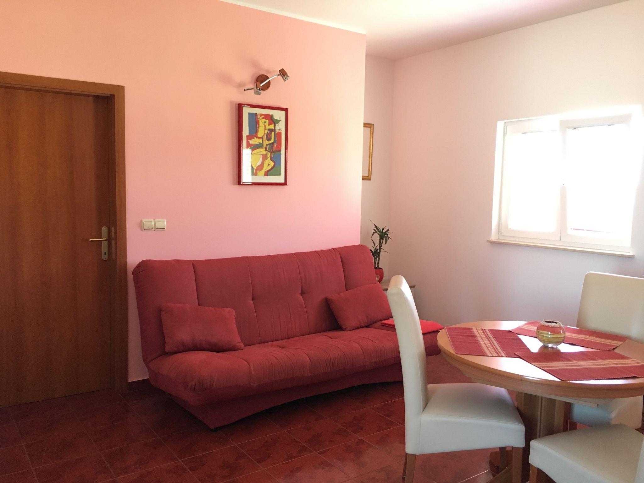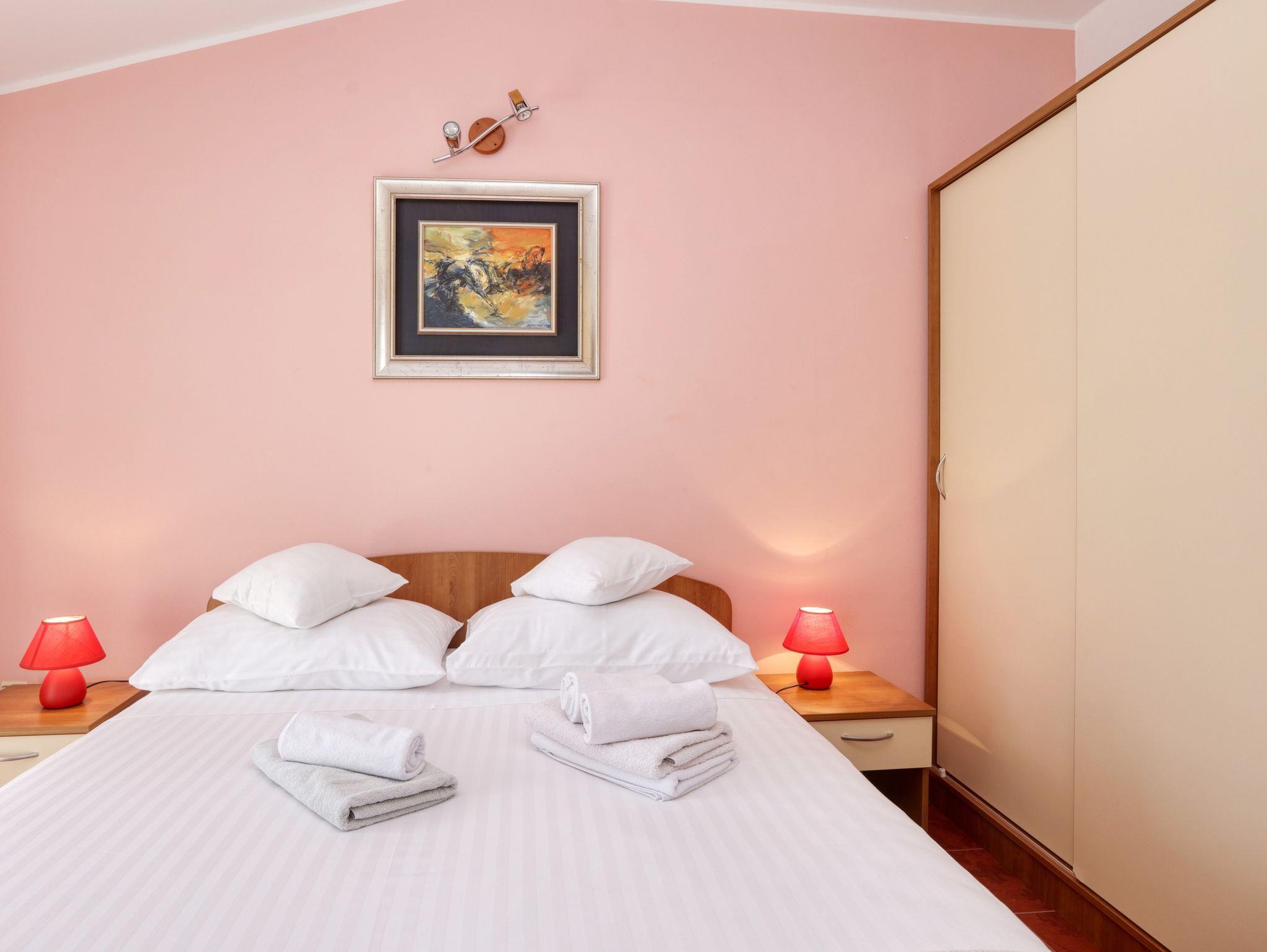 Ferienwohnung bietet Platz für 2 Gäste. Die Betten sind in Schlafzimmern, die es 1 gibt, innerhalb einer Gesamtfläche von 42m2, angeordnet. Die Gäste haben eine eigene Terrasse zur Verfügung, auf der sie in warmen Sommernächten genießen können. Das Apartment bietet Meerblick. Es ist erlaubt, Speisen auf dem Gemeinschafts-Grill vorzubereiten. In der Unterkunftseinheit besteht die Möglichkeit des Mitbringens von Haustieren gegen Aufpreis. IM PREIS INBEGRIFFEN: Kurtaxe, Endreinigung, Klimatisierung, Parkplatz, Internet, Kinderbett, Bügeleisen, Bügelbrett, Föhn, tragbarer Grill, 2 Kinderbettchen (im Preis enthalten). VERBINDLICHE ZUSÄTZLICHE KOSTEN: Aufzahlung für Kurzaufenthalte (prozentualer Zuschlag pro Nächtigungsanzahl: 30% - 1, 20% - 2, 10% - 3). UNVERBINDLICHE ZUSÄTZLICHE KOSTEN: Wäschewaschen (15,00 € Waschen), Haustiere (10,00 € pro Nacht). Die Verfügbarkeit zusätzlicher Dienstleistungen in Ihrem reservierten Termin und die Preise derselben (falls nicht aufgeführt) müssen im Voraus überprüft werden. Zusätzliche Dienstleistungen die in der Zahlungsaufforderung nicht aufgeführt sind werden direkt beim Vermieter bezahlt, angenommen der Gast nutzt auch diese. Ermäßigung auf den Grundpreis: Gratistag 28=25 (bei einem Aufenthalt von 28 oder mehr Tagen erhalten Sie 3 kostenlose Tage für den Aufenthalt bis 31.12.26).