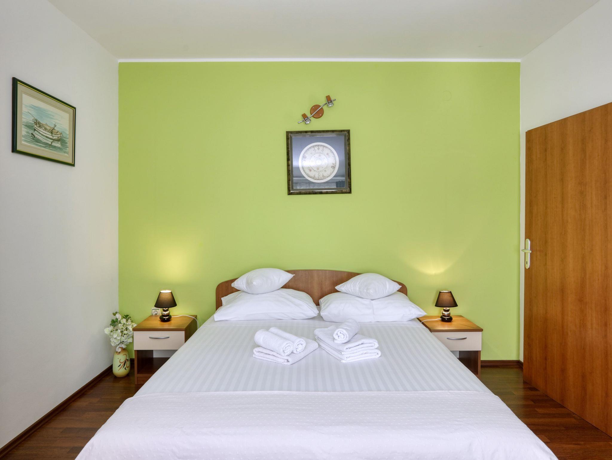 Ferienwohnung bietet Platz für 2 Gäste. Die Betten sind in Schlafzimmern, die es 1 gibt, innerhalb einer Gesamtfläche von 44m2, angeordnet. Die Gäste haben eine eigene Terrasse zur Verfügung, auf der sie in warmen Sommernächten genießen können. Das Apartment bietet Meerblick. Es ist erlaubt, Speisen auf dem Gemeinschafts-Grill vorzubereiten. In der Unterkunftseinheit besteht die Möglichkeit des Mitbringens von Haustieren gegen Aufpreis. IM PREIS INBEGRIFFEN: Kurtaxe, Endreinigung, Klimatisierung, Parkplatz, Internet, Kinderbett, Bügeleisen, Bügelbrett, Föhn, tragbarer Grill, 2 Kinderbettchen (im Preis enthalten). VERBINDLICHE ZUSÄTZLICHE KOSTEN: Aufzahlung für Kurzaufenthalte (prozentualer Zuschlag pro Nächtigungsanzahl: 30% - 1, 20% - 2, 10% - 3). UNVERBINDLICHE ZUSÄTZLICHE KOSTEN: Wäschewaschen (15,00 € Waschen), Haustiere (10,00 € pro Nacht). Die Verfügbarkeit zusätzlicher Dienstleistungen in Ihrem reservierten Termin und die Preise derselben (falls nicht aufgeführt) müssen im Voraus überprüft werden. Zusätzliche Dienstleistungen die in der Zahlungsaufforderung nicht aufgeführt sind werden direkt beim Vermieter bezahlt, angenommen der Gast nutzt auch diese. Ermäßigung auf den Grundpreis: Gratistag 28=25 (bei einem Aufenthalt von 28 oder mehr Tagen erhalten Sie 3 kostenlose Tage für den Aufenthalt bis 31.12.26).