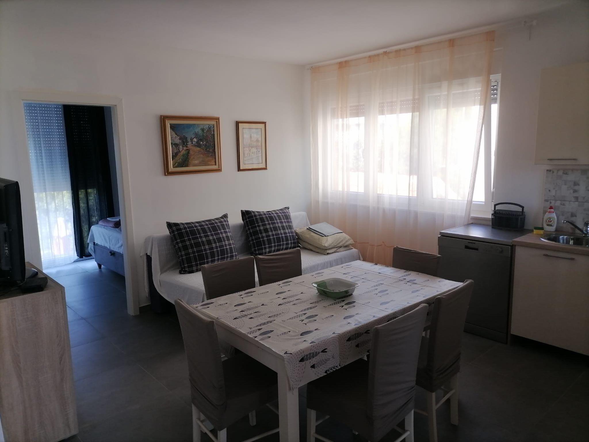 Ferienwohnung bietet Platz für 6 Gäste. Die Betten sind in Schlafzimmern, die es 2 gibt, und in Wohnzimmer, innerhalb einer Gesamtfläche von 60m2, angeordnet. Die Gäste haben eine eigene Terrasse zur Verfügung, auf der sie in warmen Sommernächten genießen können. Es ist erlaubt, Speisen auf dem Gemeinschafts-Grill vorzubereiten. IM PREIS INBEGRIFFEN: Kurtaxe, Endreinigung, Klimatisierung, Parkplatz, Internet, Wäschewaschen, Bügeleisen, Föhn. VERBINDLICHE ZUSÄTZLICHE KOSTEN: Aufzahlung für Kurzaufenthalte (prozentualer Zuschlag pro Nächtigungsanzahl: 30% - 1, 20% - 2, 10% - 3). Die Verfügbarkeit zusätzlicher Dienstleistungen in Ihrem reservierten Termin und die Preise derselben (falls nicht aufgeführt) müssen im Voraus überprüft werden. Zusätzliche Dienstleistungen die in der Zahlungsaufforderung nicht aufgeführt sind werden direkt beim Vermieter bezahlt, angenommen der Gast nutzt auch diese. Ermäßigung auf den Grundpreis: Gratistag 14=13 (bei einem Aufenthalt von 14 Tagen oder mehr erhalten Sie einen Gratistag für den Aufenthalt bis 31.12.26).