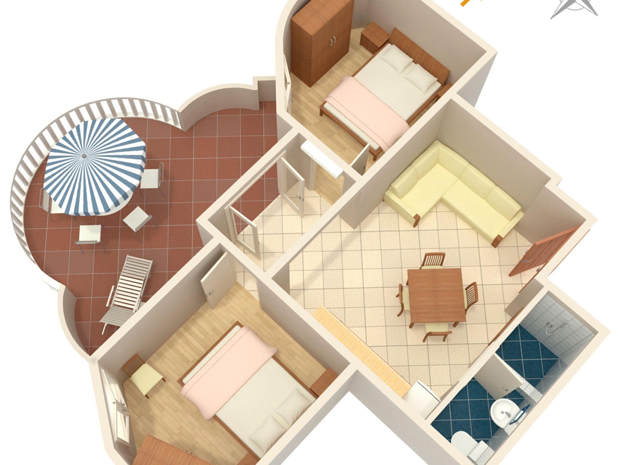 Ferienwohnung bietet Platz für 5 Gäste. Die Betten sind in Schlafzimmern, die es 2 gibt, und in Esszimmer, innerhalb einer Gesamtfläche von 50m2, angeordnet. Die Gäste haben eine eigene Terrasse zur Verfügung, auf der sie in warmen Sommernächten genießen können. Es ist erlaubt, Speisen auf dem Gemeinschafts-Grill vorzubereiten. IM PREIS INBEGRIFFEN: Kurtaxe, Endreinigung, Klimatisierung, Parkplatz, Internet, Föhn. VERBINDLICHE ZUSÄTZLICHE KOSTEN: Aufzahlung für Kurzaufenthalte (prozentualer Zuschlag pro Nächtigungsanzahl: 30% - 1, 20% - 2, 10% - 3). UNVERBINDLICHE ZUSÄTZLICHE KOSTEN: Wäschewaschen (5,00 € Waschen). Die Verfügbarkeit zusätzlicher Dienstleistungen in Ihrem reservierten Termin und die Preise derselben (falls nicht aufgeführt) müssen im Voraus überprüft werden. Zusätzliche Dienstleistungen die in der Zahlungsaufforderung nicht aufgeführt sind werden direkt beim Vermieter bezahlt, angenommen der Gast nutzt auch diese.