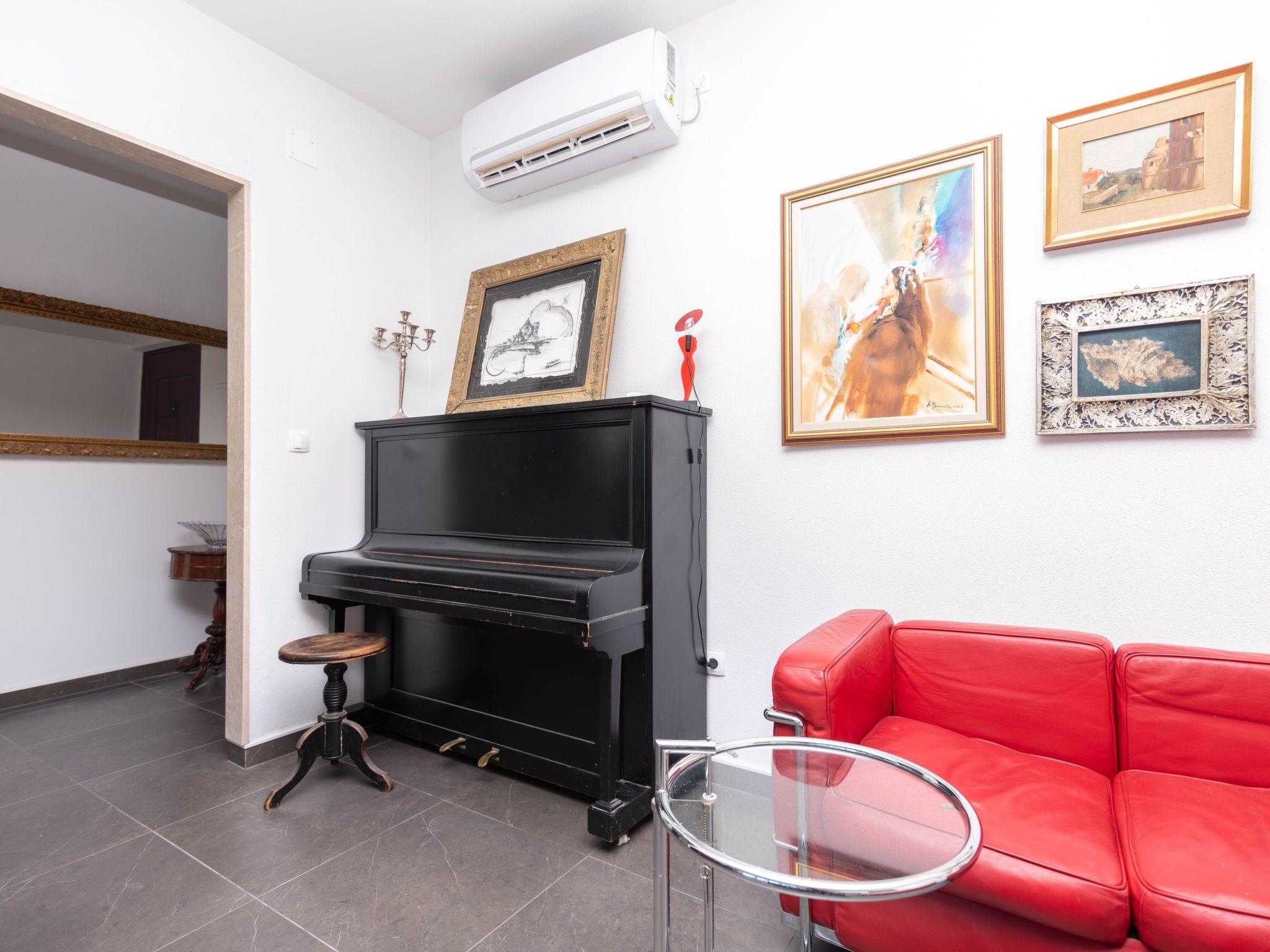 On first floor there are 3 bedrooms, all with double beds. There is fully equipped kitchen with big living room and amazing piano which exits to sunny terrace.