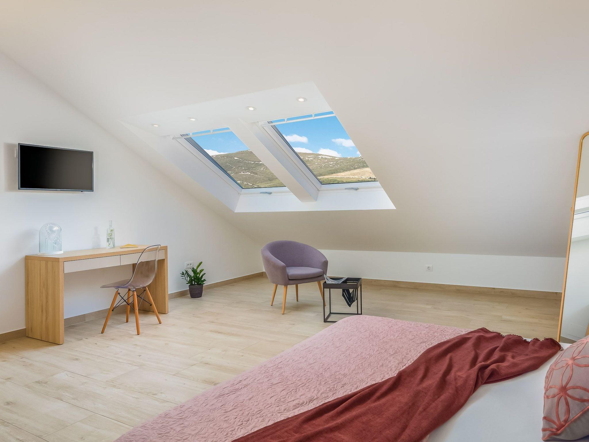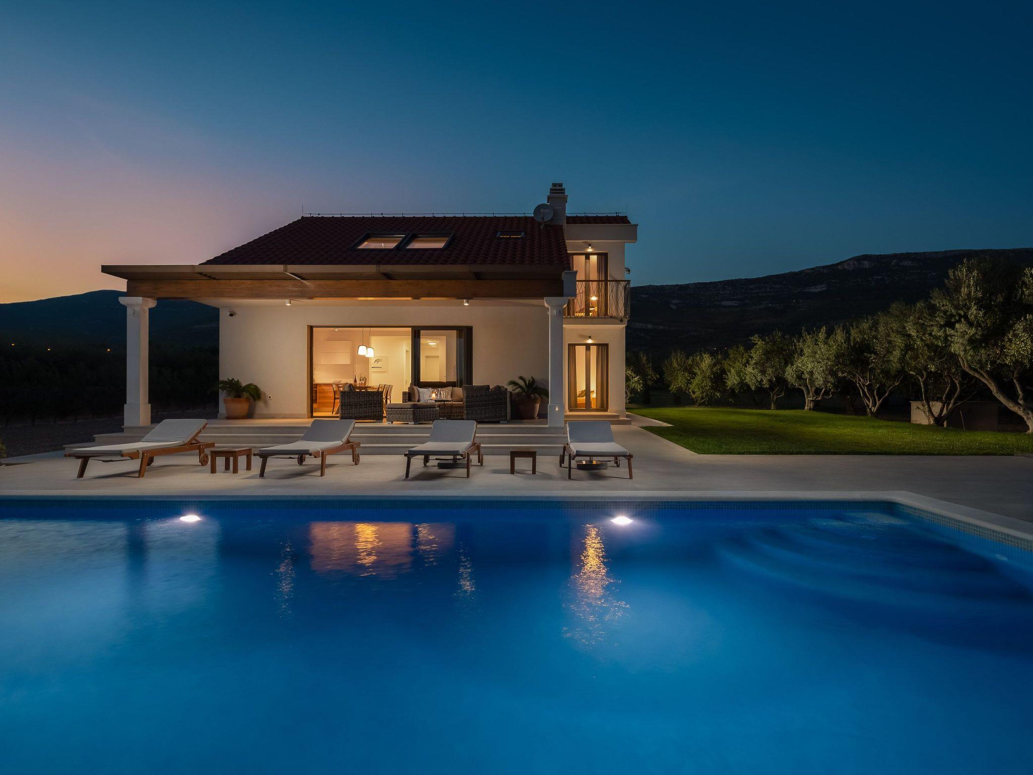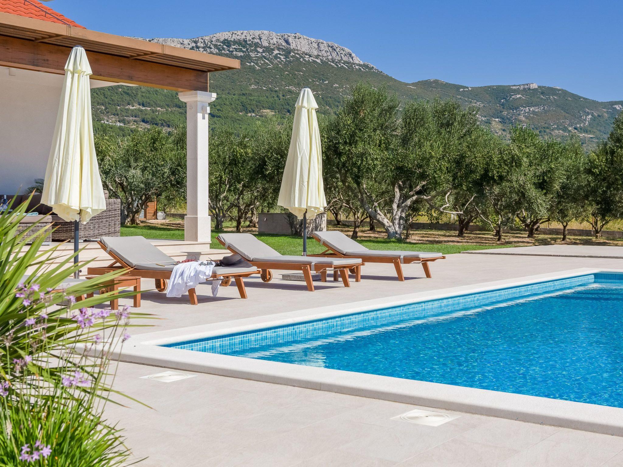 VIlla Cvita is located on a completely fenced and gated property of 5000 m2, giving you complete privacy during your stay. The house is surrounded not only by walls but also by a beautiful olive grove and has a large terrace. The 50 m2 pool is just in front of the house so you can have full view of children swimming, and easily communicate. The terrace has a large lounge area and 6 sunbeds with parasols. Two rooms on the first floor have balconies and roof windows, so you can enjoy looking at the sea, the islands and the city of Split. There is a covered parking behind the house perfect for 3 cars, but more can fit next to it.