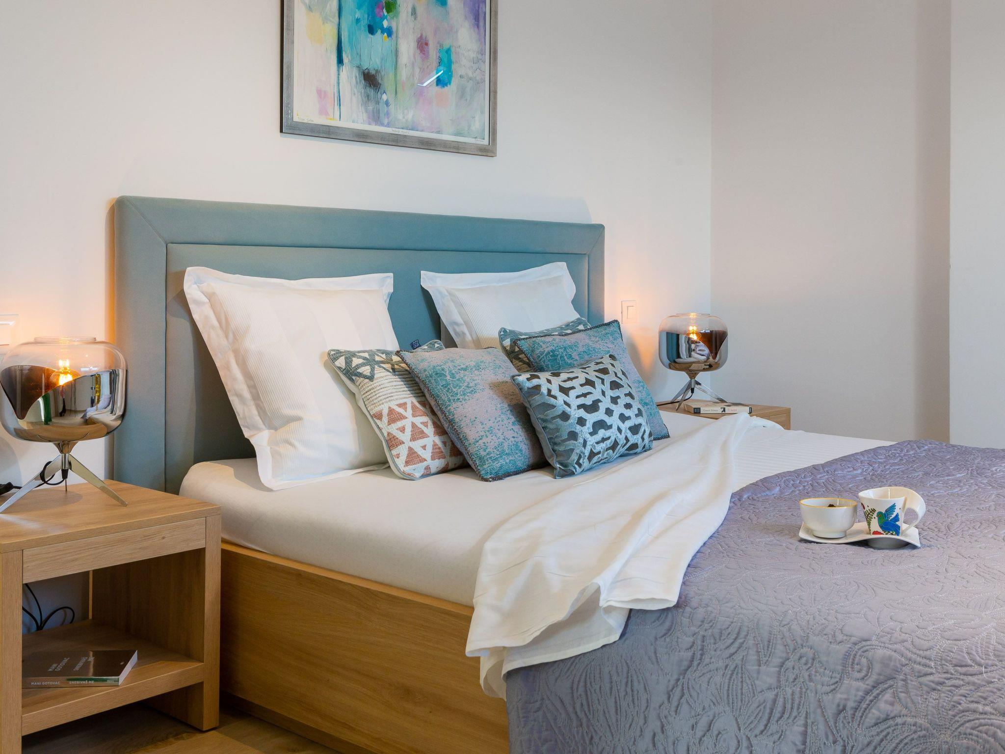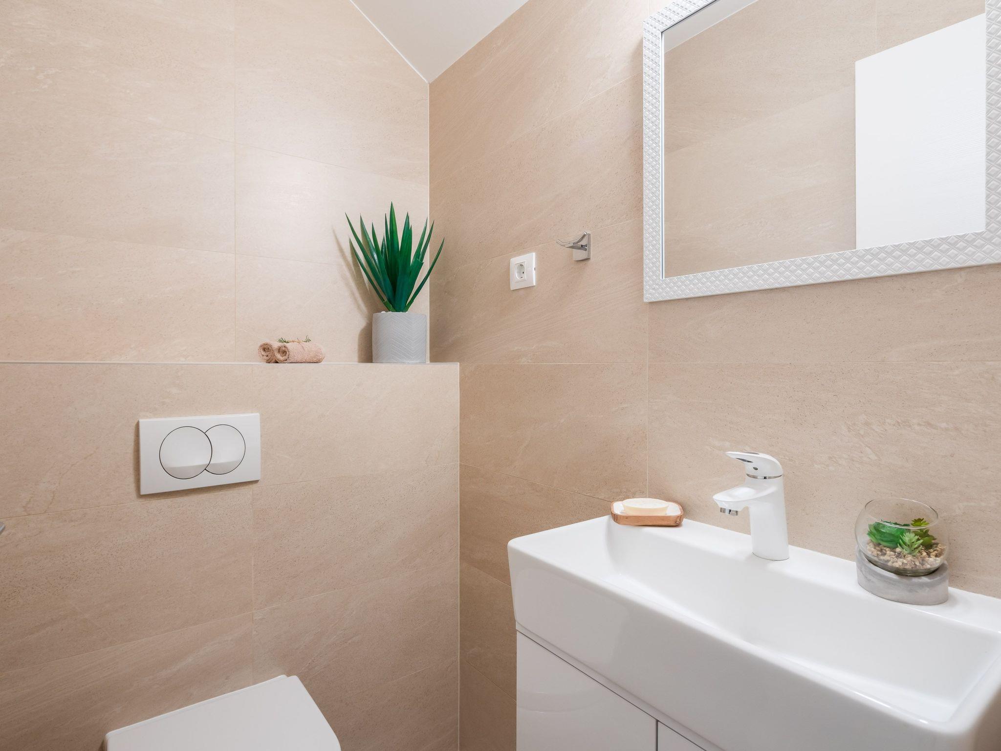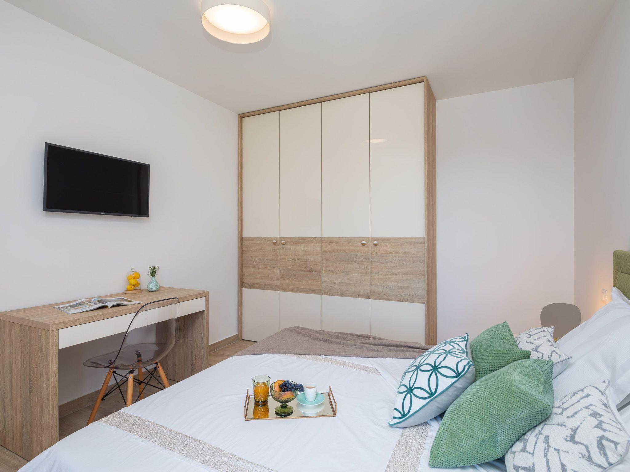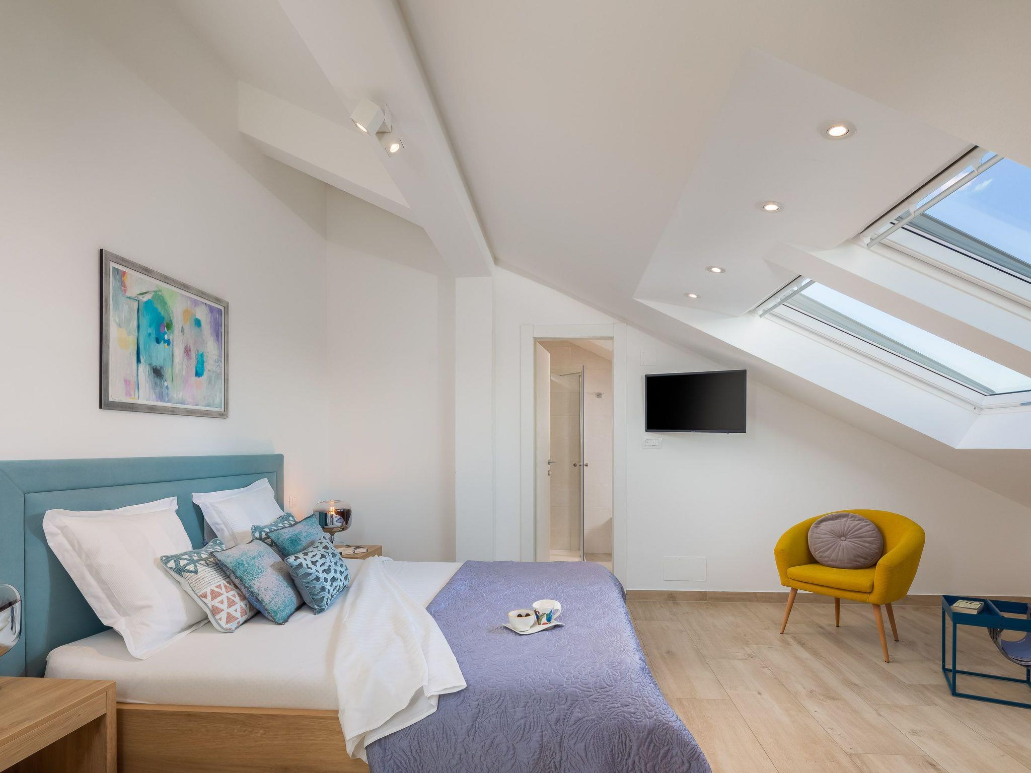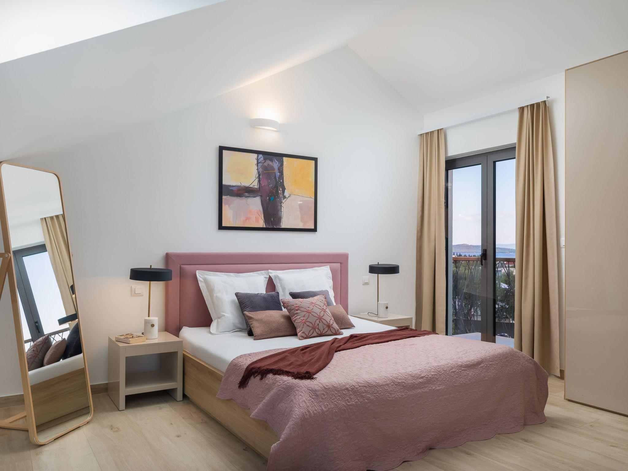 Villa Cvita has ground floor and first floor. There are 4 en suite bedrooms in the house, two are on the ground floor and two upstairs. All rooms have double beds 1.80m wide and 2m long. All rooms have bathrooms with shower, and one room on the ground floor has a bathtub. All rooms have exits either to the garden or balcony. All rooms have WiFi and Smart TVs with satellite and Netflix connection. Kitchen is located on the ground floor with dining table, right next to large glass door which can be completely opened, giving you the al fresco dining feeling. All modern appliances and dishes, as well as electric appliances used for preparing food can be found in kitchen cabinets.The living room has one big L shape leather sofa and an armchair. All rooms in the house have AirCon and are fully furnished.