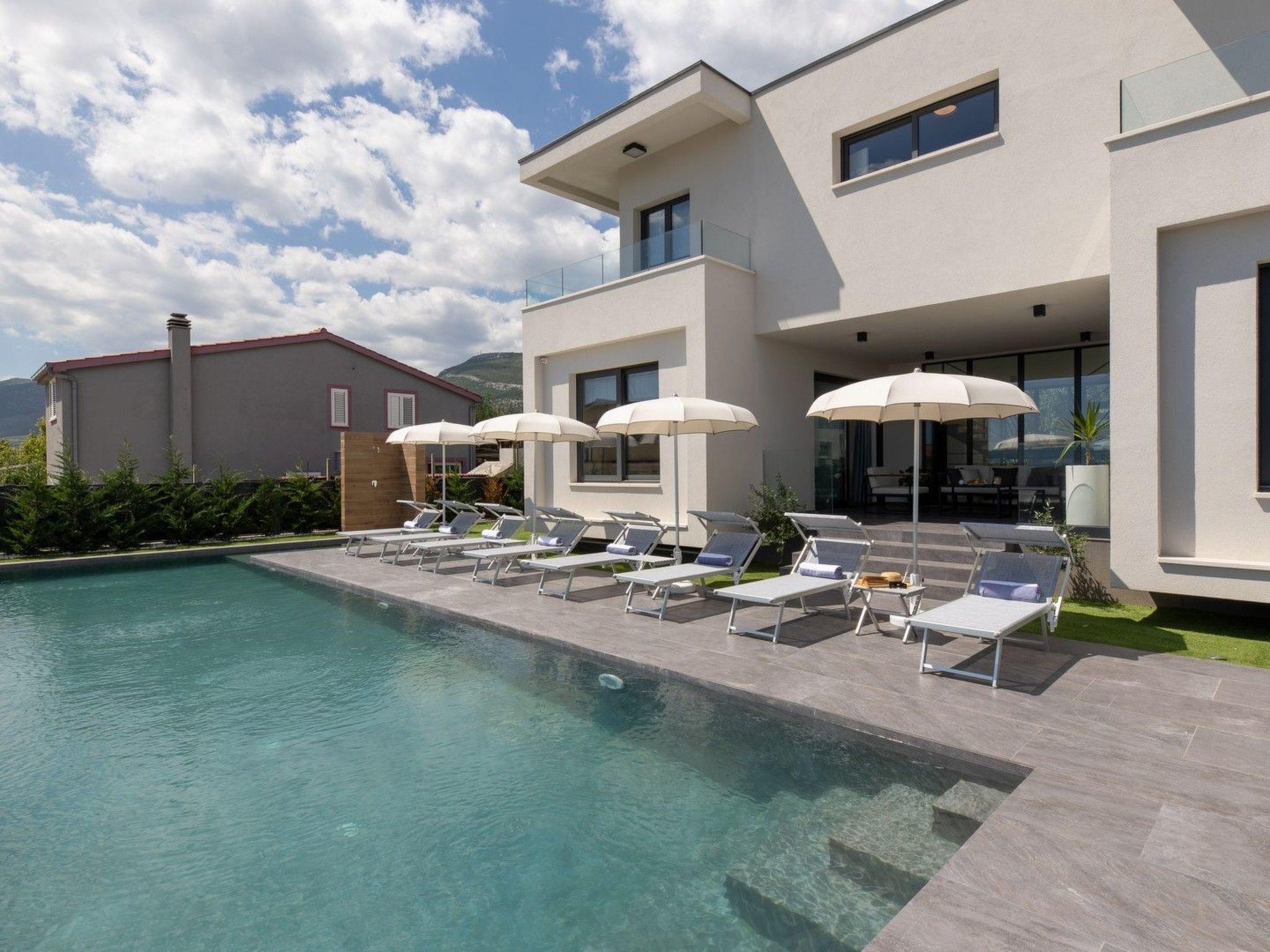 This luxury villa is situated in a peaceful area just 1.8 kilometers from the sea.