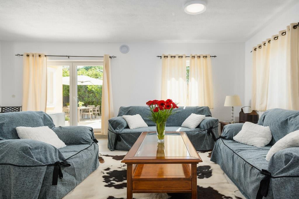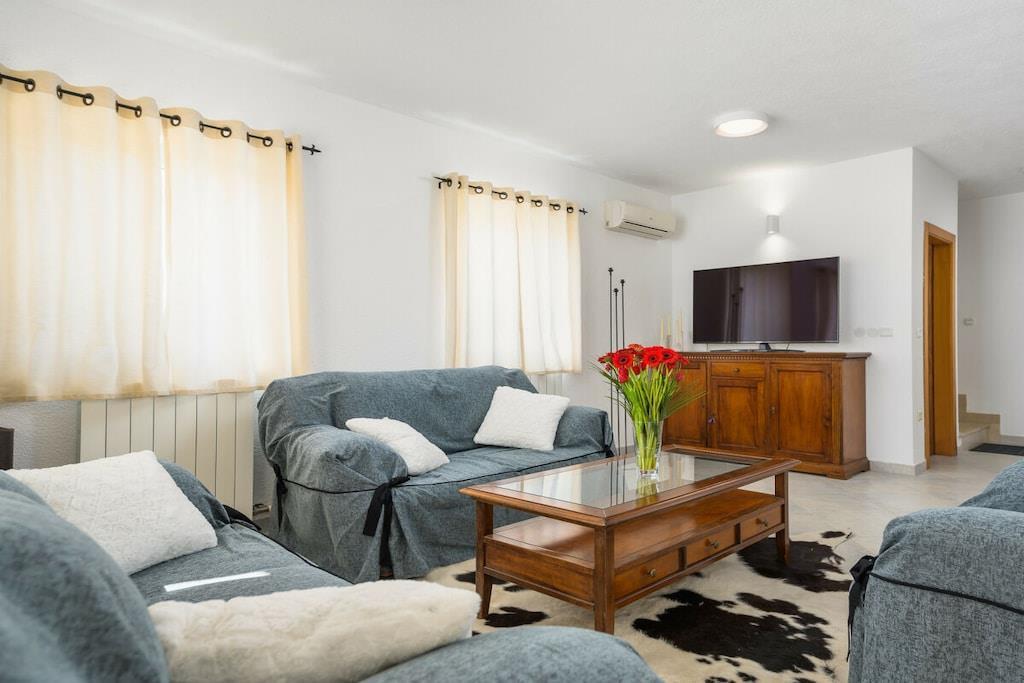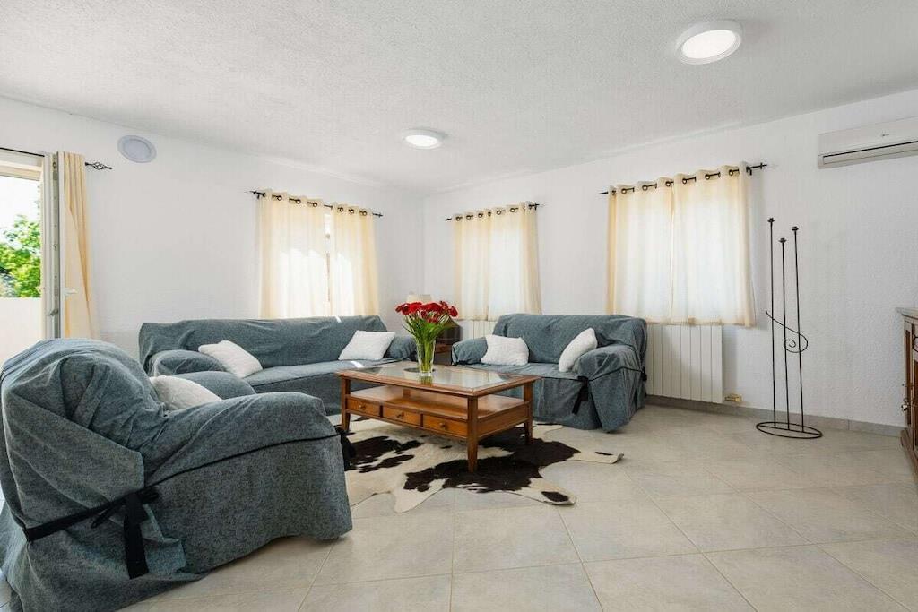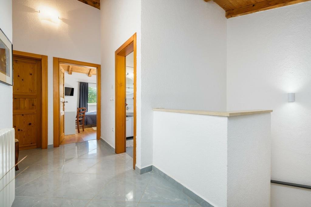 Villa Zaza er en sjarmerende villa med to soverom, basseng og havutsikt. Den har plass til 4+2 personer; det er en sovesofa i stuen. Villaen har en åpen stue og kjøkken med tilgang til terrassen, ideelt for frokost eller utendørs servering. En trapp fører til loungeområdet ved bassengkanten. Det er også en utendørs dusj. Villaen har to soverom i første etasje: ett med dobbeltseng og ett med to enkeltsenger, med en stor balkong med salongbord og sofa. De to soverommene deler bad med dusj. Det er et toalett i første etasje. Parkering for to biler er tilgjengelig ved villaens inngang.