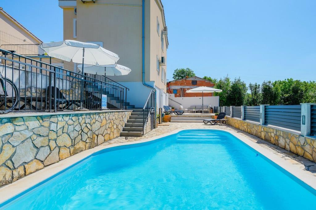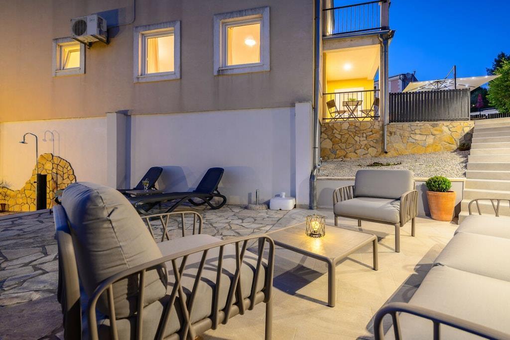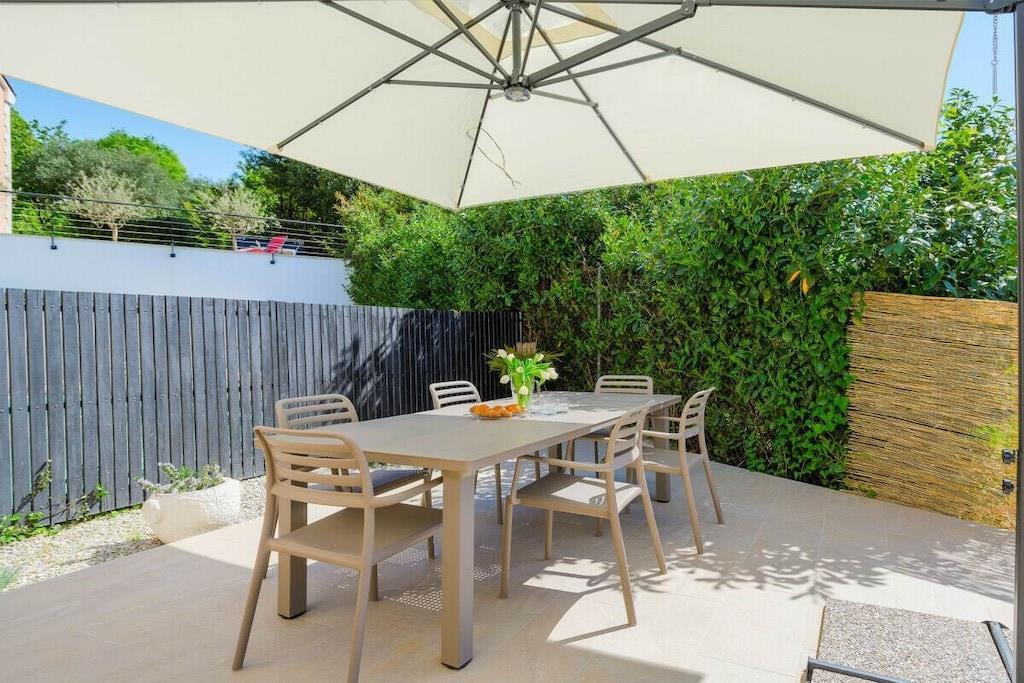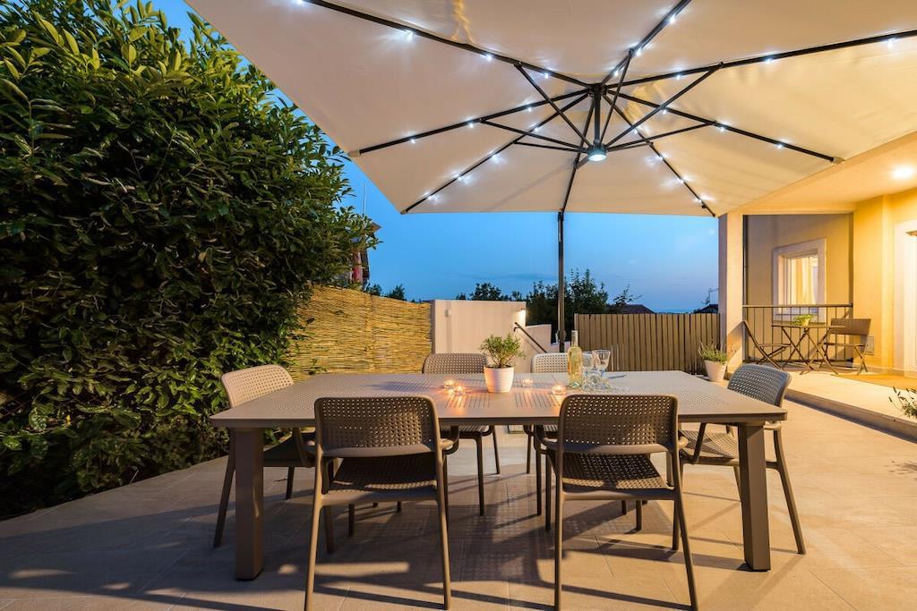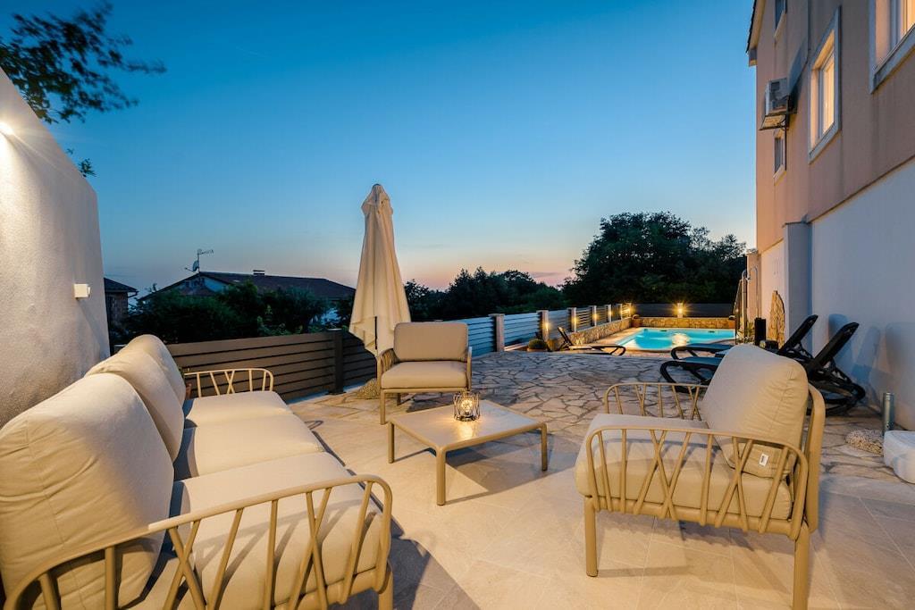 Villa Zaza er en sjarmerende villa med to soverom, basseng og havutsikt. Den har plass til 4+2 personer; det er en sovesofa i stuen. Villaen har en åpen stue og kjøkken med tilgang til terrassen, ideelt for frokost eller utendørs servering. En trapp fører til loungeområdet ved bassengkanten. Det er også en utendørs dusj. Villaen har to soverom i første etasje: ett med dobbeltseng og ett med to enkeltsenger, med en stor balkong med salongbord og sofa. De to soverommene deler bad med dusj. Det er et toalett i første etasje. Parkering for to biler er tilgjengelig ved villaens inngang.