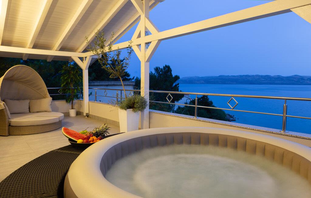 Dette vakre feriehuset er designet for en uforglemmelig ferie med familie eller venner. I første etasje er det et rom og en romslig stue som fører ut til en overbygd terrasse. Ovenpå er det tre soverom, hvorav to har utgang til den høyeste terrassen. Her er det et boblebad hvor du kan tilbringe avslappende stunder og nyte den vakre panoramautsikten over havet og naboøyene, i likhet med de andre terrassene.