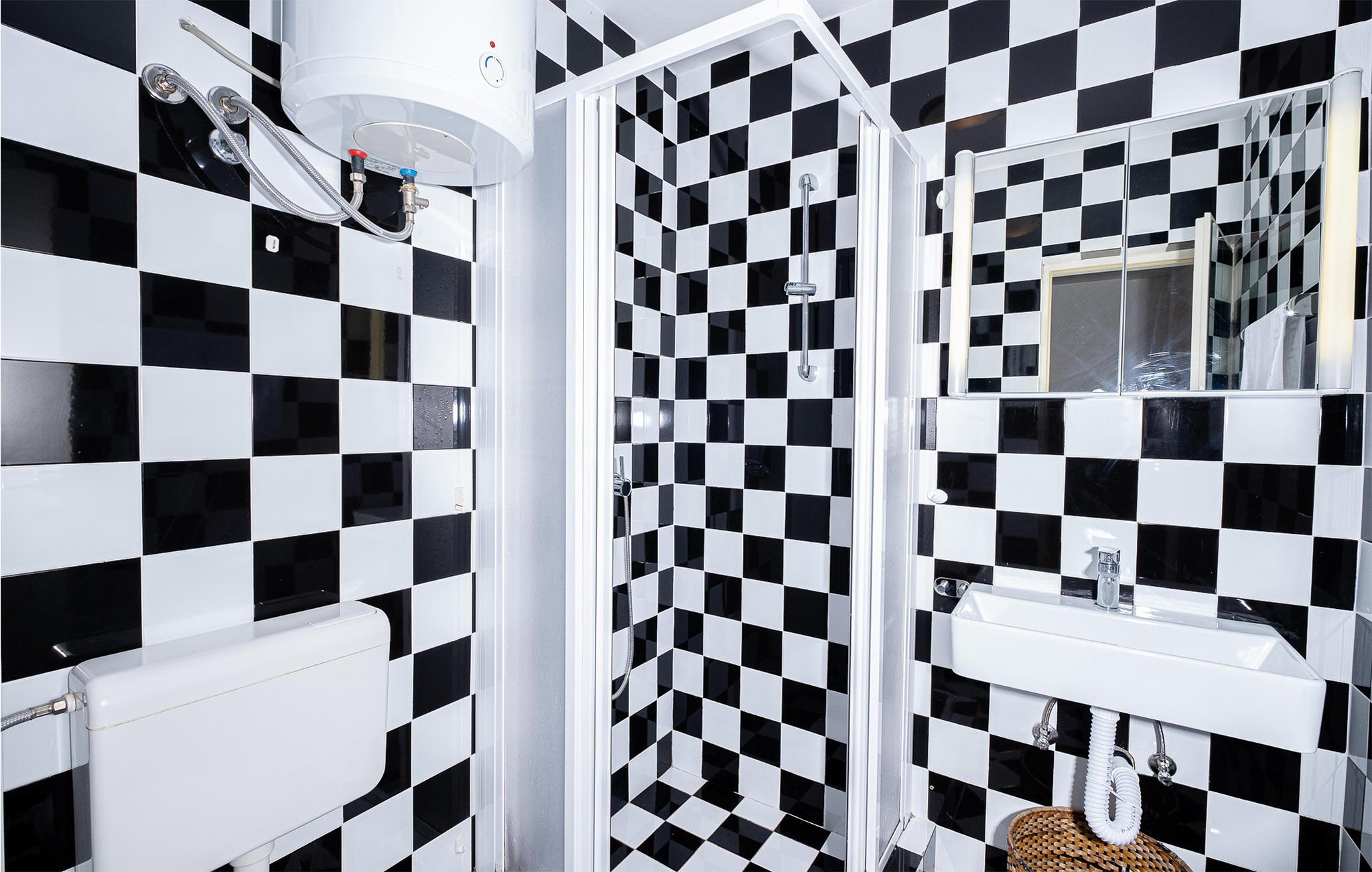 Baderom 6m2 (nr. 1) - WC: Varmt og kaldt vann. Dusj