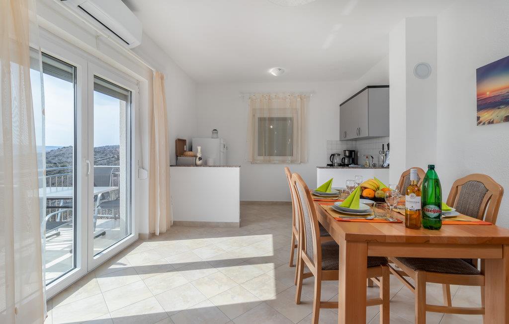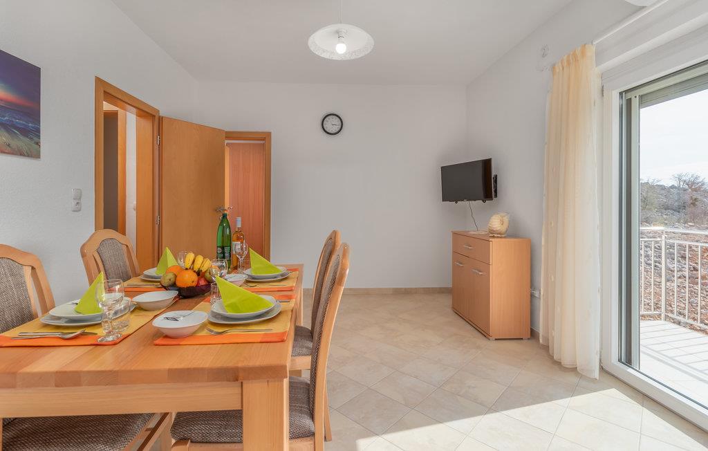 Gjør deg komfortabel med dine kjære i denne lyse leiligheten, som ønsker deg velkommen i en rolig beliggenhet i Kvarnerbukten. Tilbered en deilig frokost i kjøkkenkroken og styrk deg selv for en begivenhetsrik dag. Gå ut av stuen og ut i friluft, la havbrisen blåse rundt nesen din og nyt de første solstrålene på terrassen med en kopp kaffe.