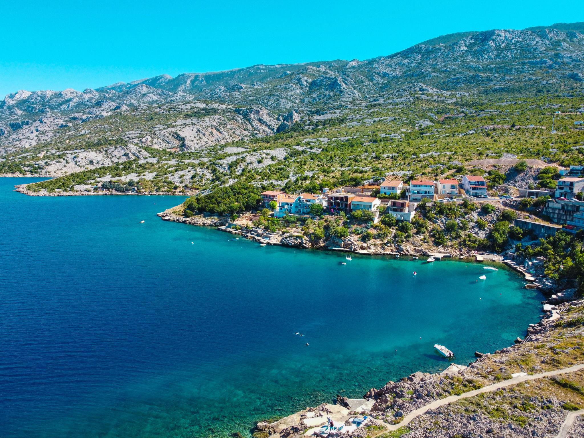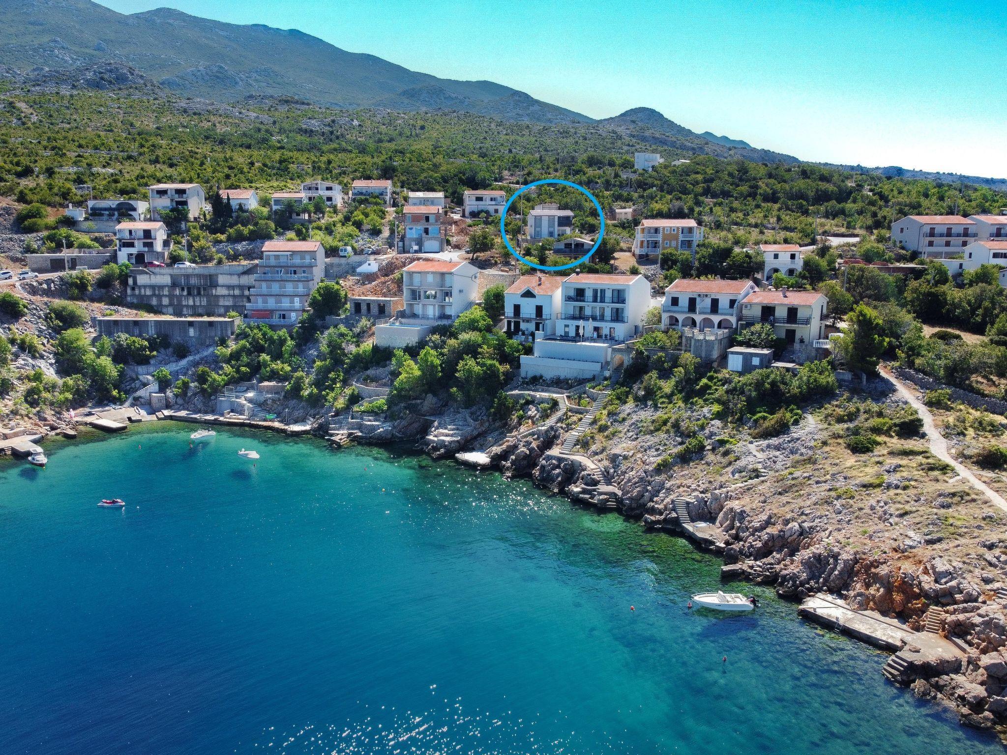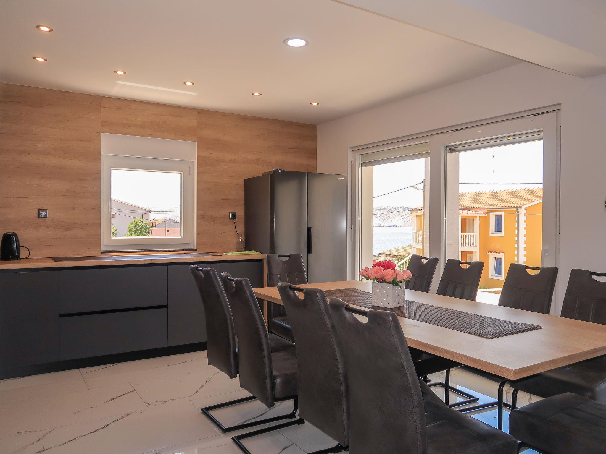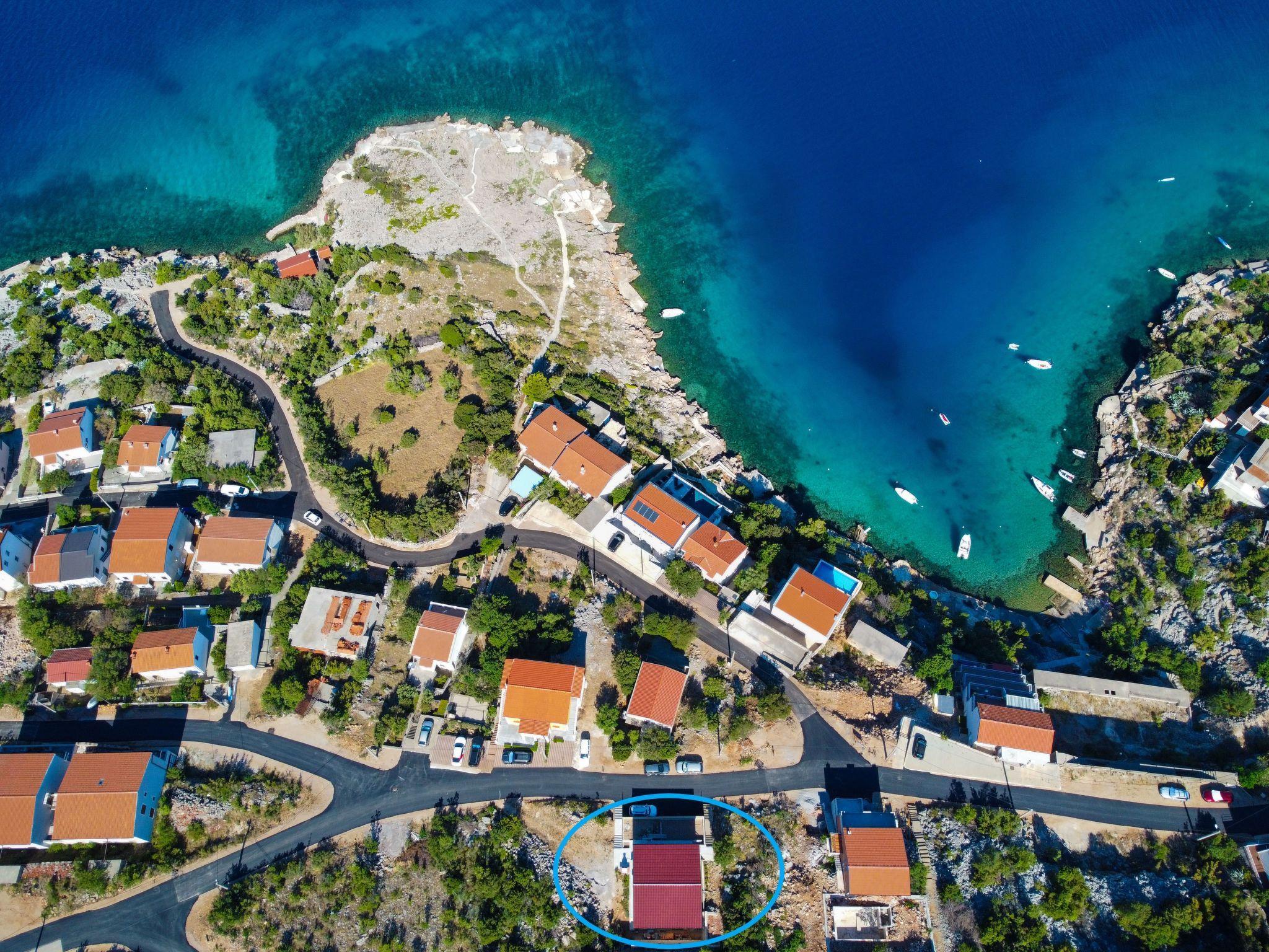 Prizna 17 km from Karlobag: Modern single-family house "Emili & Elias", 2 storeys, built in 2022. In a sunny, elevated position, 100 m from the sea, 100 m from the beach. Private: property 300 m2, swimming pool (3 x 7 m, seasonal availability: 15.Mar. - 15.Nov.). Outdoor shower, barbecue. In the house: internet access, washing machine, tumble dryer. Parking (for 2 cars) on the premises. Shop 12 km, restaurant 11 km, bus stop 550 m, ferry 500 m, rocky beach 100 m. Video surveillance of the driveway and parking.