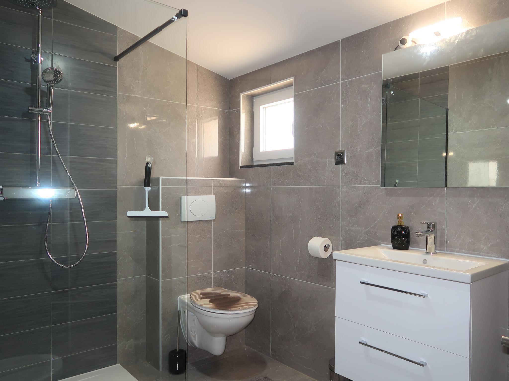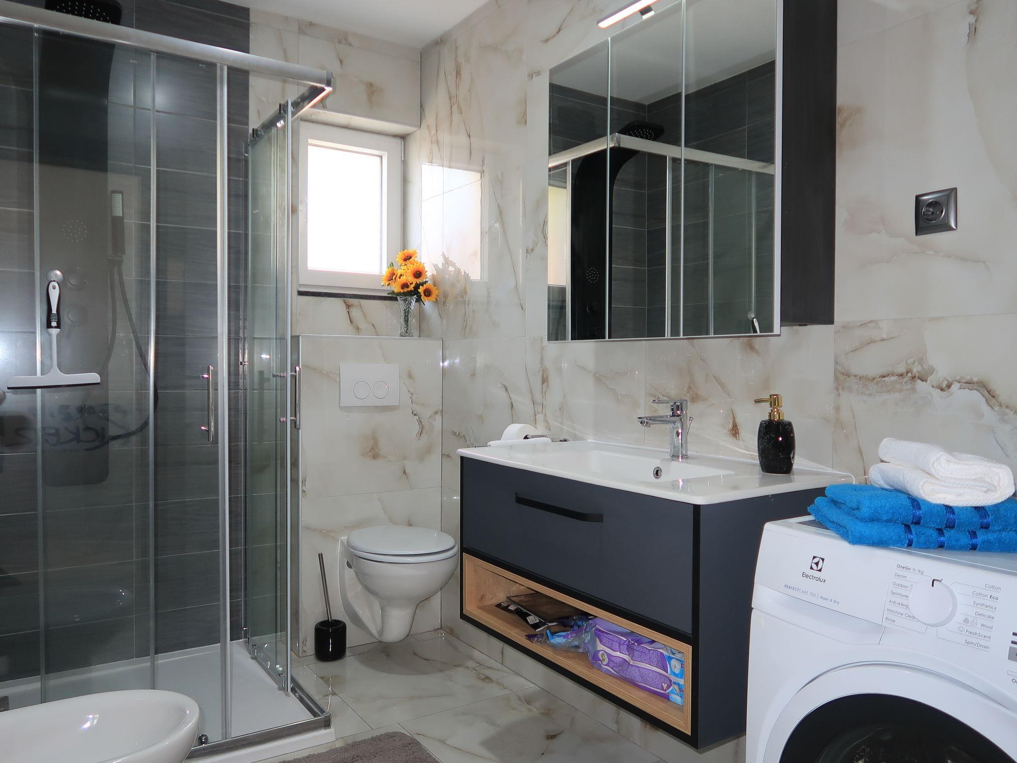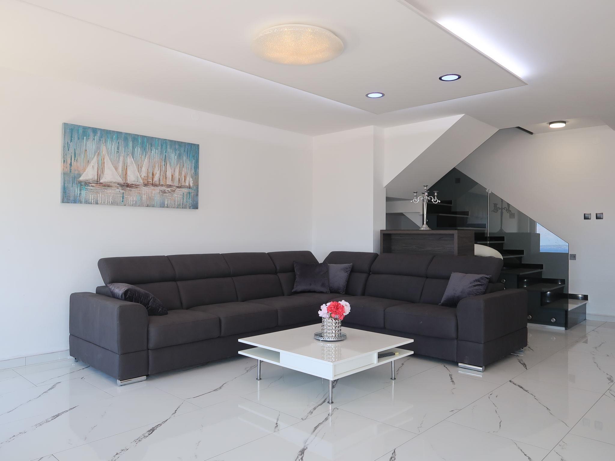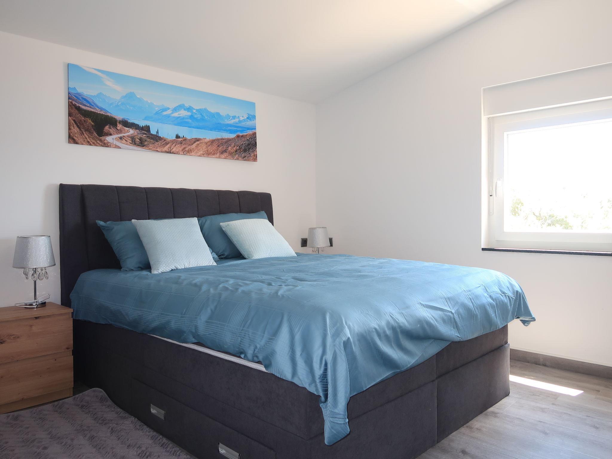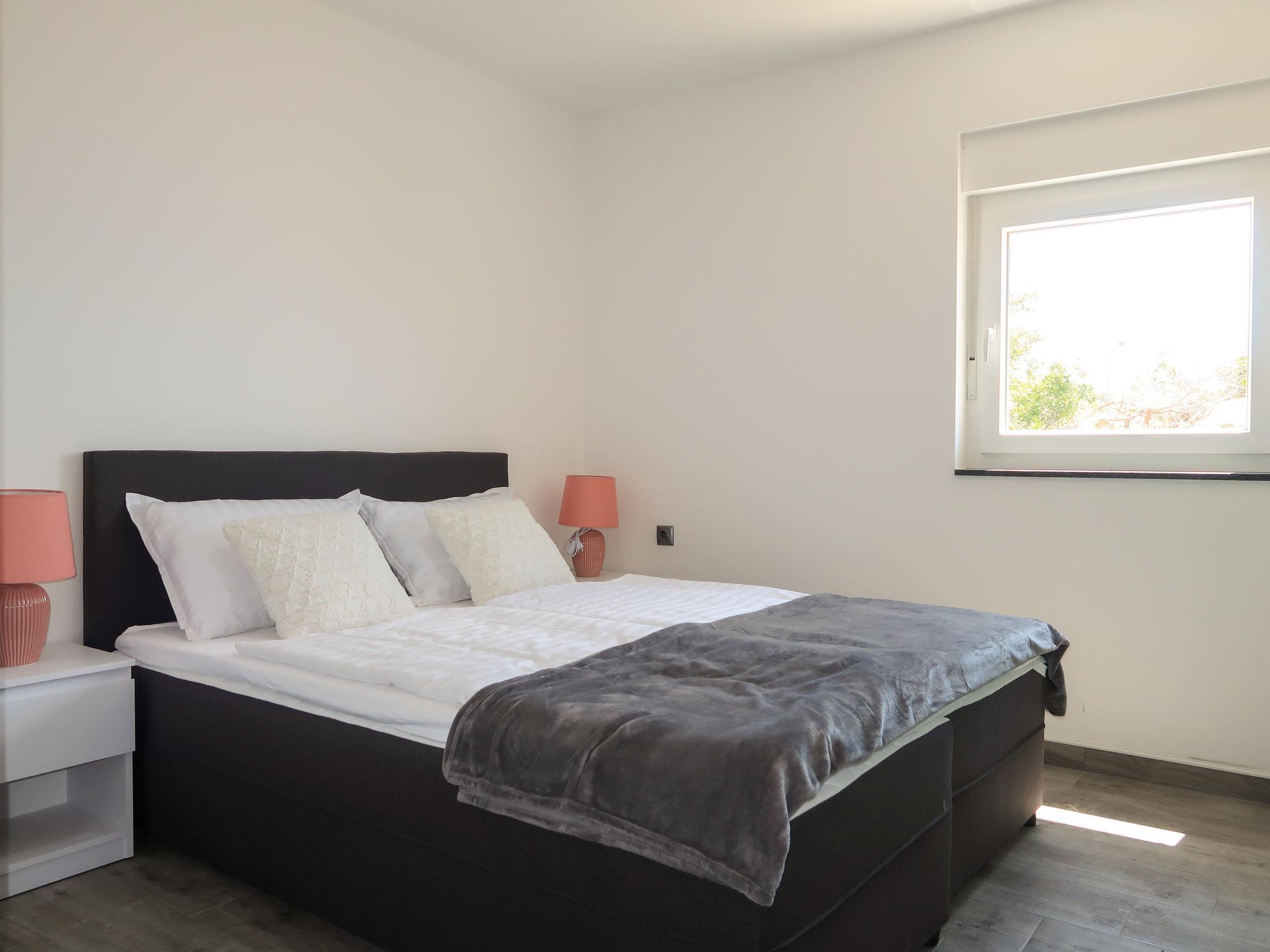 Prizna 17 km from Karlobag: Modern single-family house "Emili & Elias", 2 storeys, built in 2022. In a sunny, elevated position, 100 m from the sea, 100 m from the beach. Private: property 300 m2, swimming pool (3 x 7 m, seasonal availability: 15.Mar. - 15.Nov.). Outdoor shower, barbecue. In the house: internet access, washing machine, tumble dryer. Parking (for 2 cars) on the premises. Shop 12 km, restaurant 11 km, bus stop 550 m, ferry 500 m, rocky beach 100 m. Video surveillance of the driveway and parking.