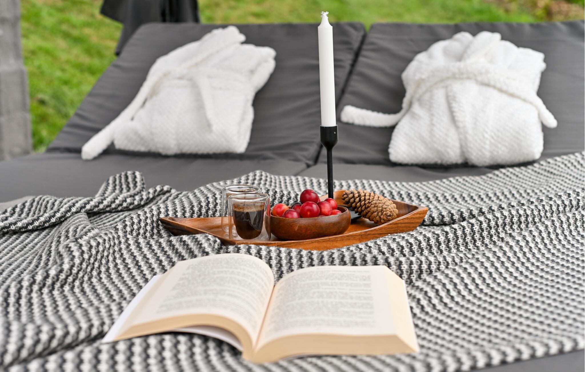 Du kan også slappe av utendørs. Nyt måltidene på terrassen, forfrisk deg i bassenget og avslutt dagen i boblebadet under åpen himmel.