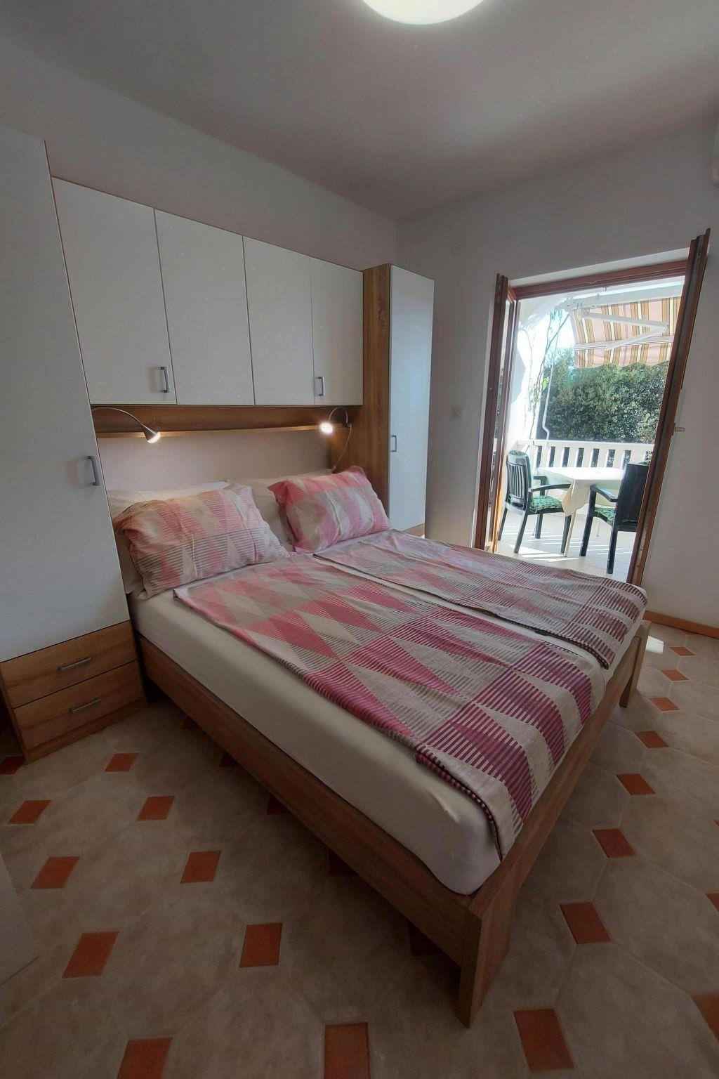 In front of the apartment there is a terrace with a table, chairs and an awning, as well as a sea view.
