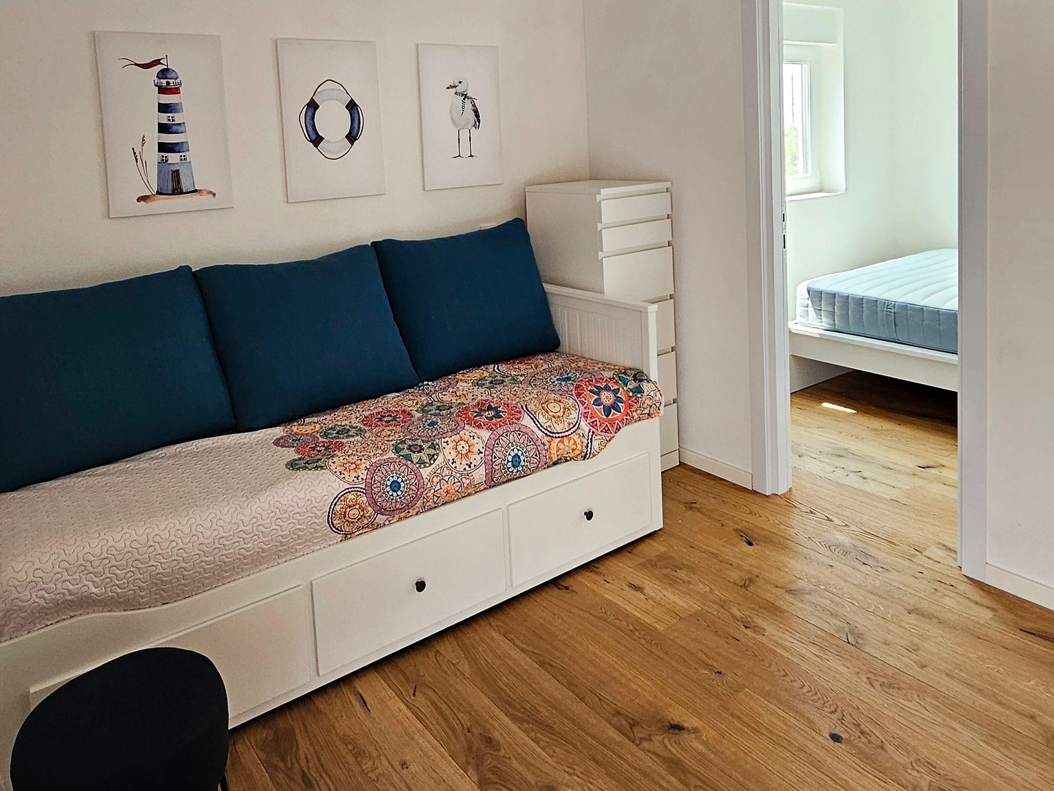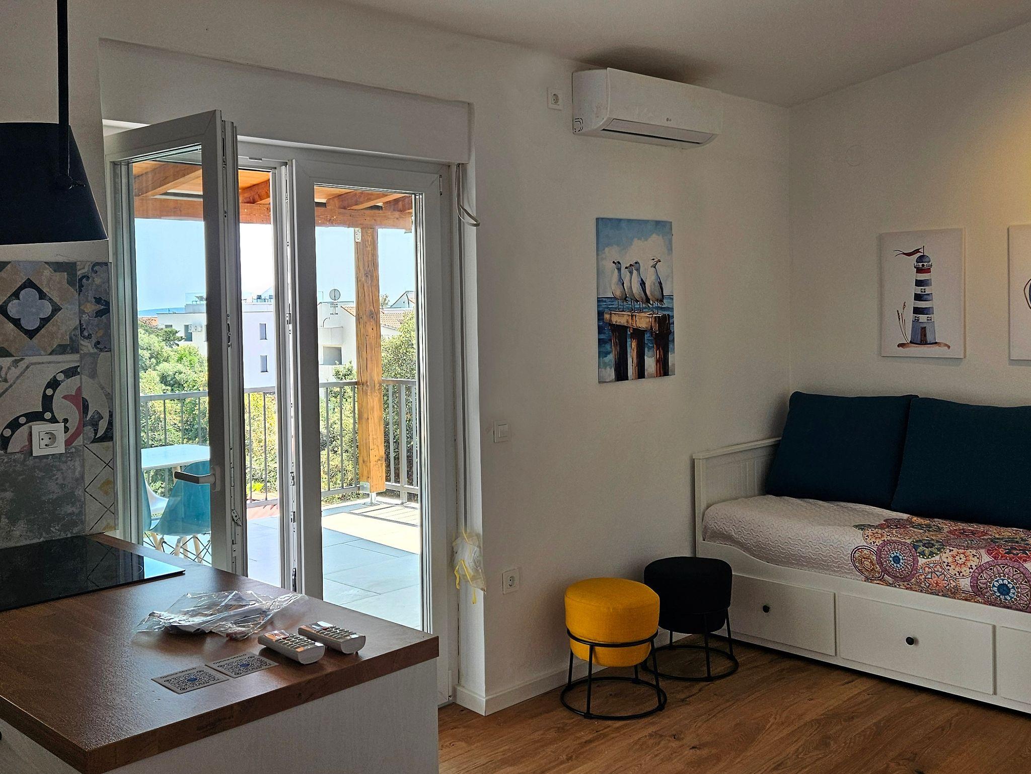 Ferienwohnung bietet Platz für 4 Gäste. Die Betten sind in Schlafzimmern, die es 1 gibt, und in Wohnzimmer, innerhalb einer Gesamtfläche von 26m2, angeordnet. Die Gäste haben eine eigene Terrasse zur Verfügung, auf der sie in warmen Sommernächten genießen können. Das Apartment bietet Meerblick. Es ist erlaubt, Speisen auf dem Gemeinschafts-Grill vorzubereiten. In der Unterkunftseinheit besteht die Möglichkeit des Mitbringens von Haustieren gegen Aufpreis. IM PREIS INBEGRIFFEN: Kurtaxe, Endreinigung, Klimatisierung, Parkplatz, Internet. VERBINDLICHE ZUSÄTZLICHE KOSTEN: Aufzahlung für Kurzaufenthalte (prozentualer Zuschlag pro Nächtigungsanzahl: 30% - 1, 20% - 2, 10% - 3). UNVERBINDLICHE ZUSÄTZLICHE KOSTEN: Haustiere (5,00 € pro Nacht). Die Verfügbarkeit zusätzlicher Dienstleistungen in Ihrem reservierten Termin und die Preise derselben (falls nicht aufgeführt) müssen im Voraus überprüft werden. Zusätzliche Dienstleistungen die in der Zahlungsaufforderung nicht aufgeführt sind werden direkt beim Vermieter bezahlt, angenommen der Gast nutzt auch diese.