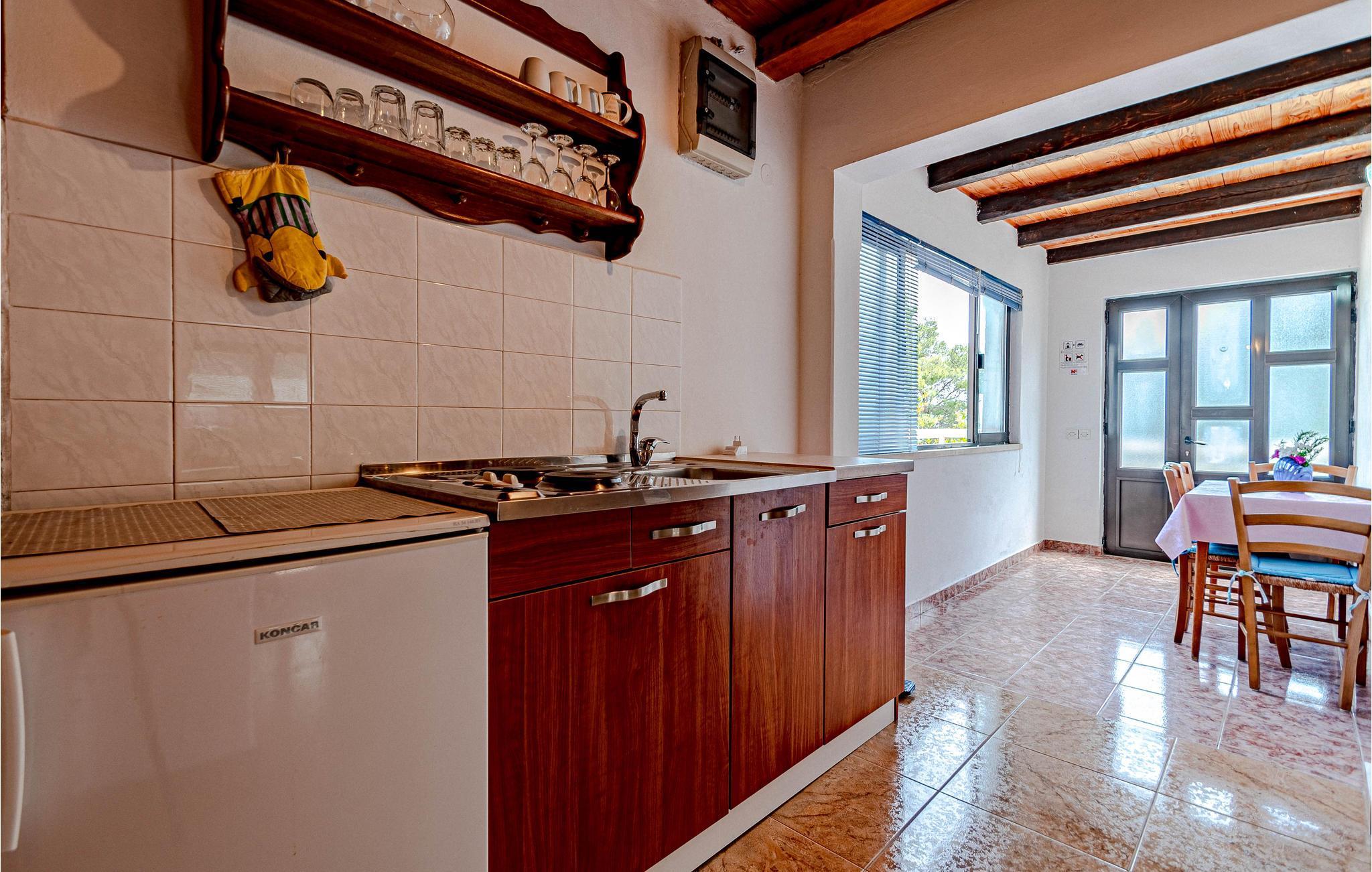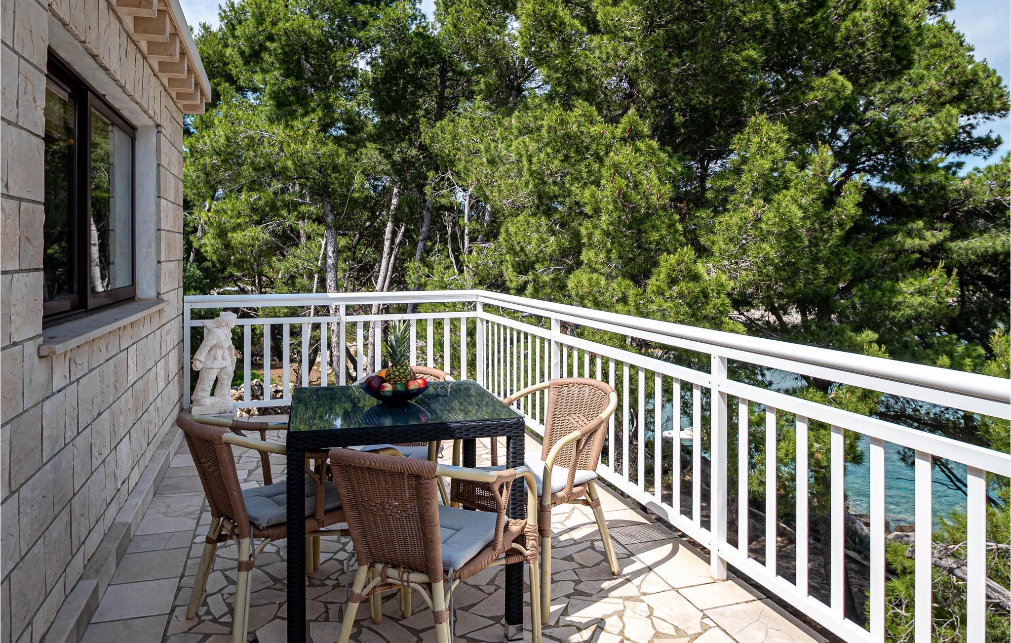 I en bukt, bare noen få minutters gange fra den vakreste sandstranden, ligger dette steinhuset. Det enkelt møblerte feriehuset på Korcula har en ideell beliggenhet i en furulund og består av 4 separate leiligheter (utvendige trapper). Interiøret er delvis renovert og er møblert annerledes. To enheter har en stor stue med kjøkken og tilgang til store terrasser med utsikt over havet og furutrærne. Den ene terrassen har et basseng. Feriehuset ligger i velholdte omgivelser. Det er en utendørs grill i bakgården med hage. Noen få meter fra feriehuset ligger et betongplatå. Bare tre minutters gange unna ligger den vakre og populære sandstranden med restaurant og kafé.