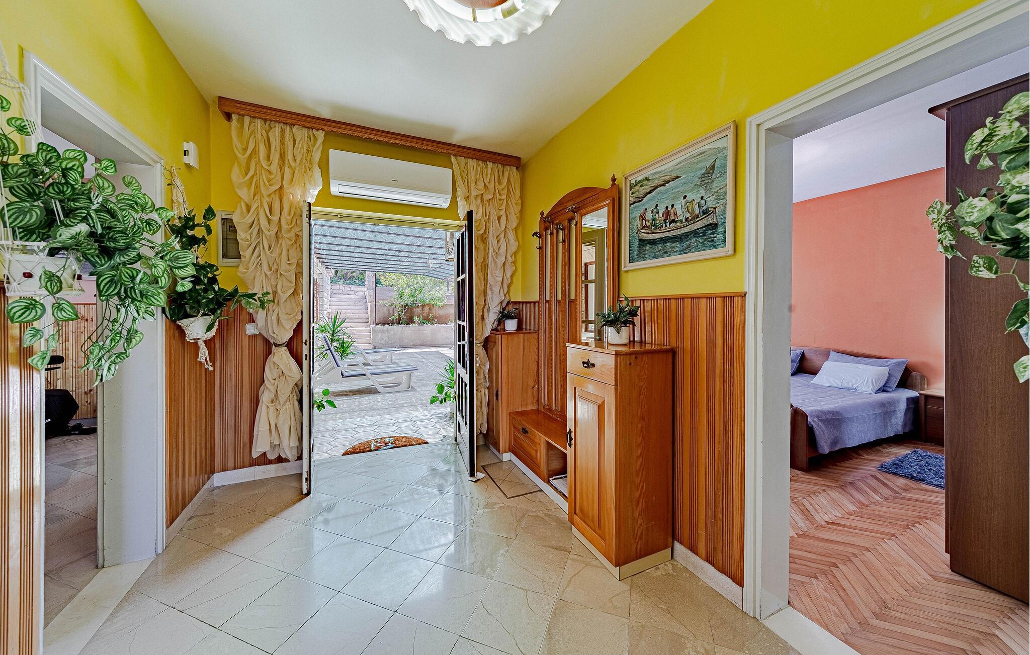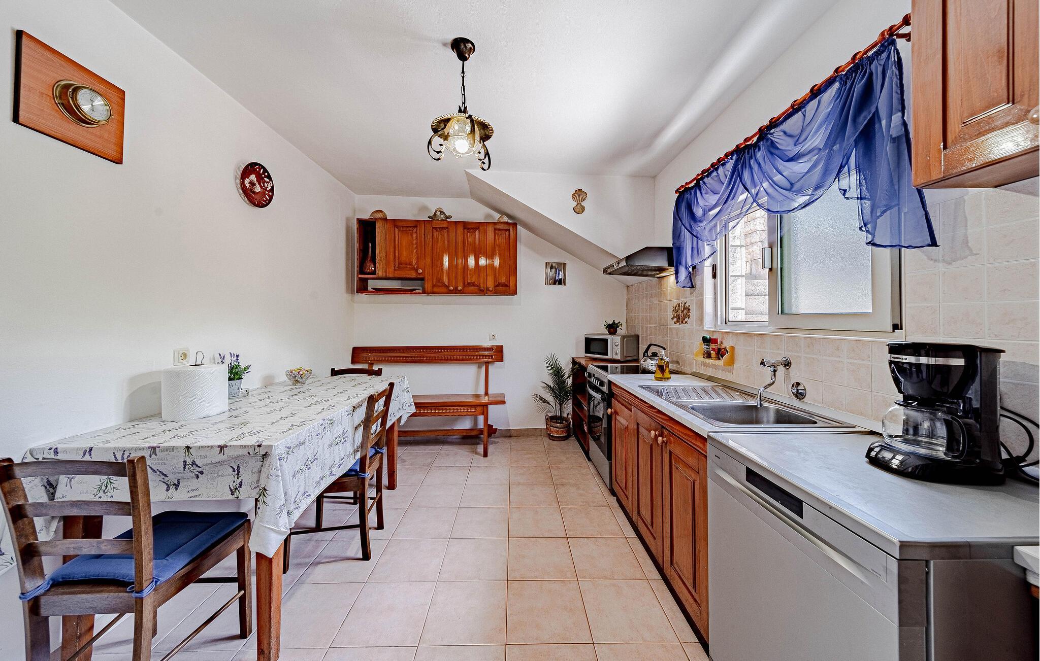 Auf einem sanften Hügel, an der schönen Bucht von Prigradica, erwartet Sie dieses geräumige Ferienhaus. In diesem einfach und funktionell eingerichteten Feriendomizil können Freunde und Familien einen angenehmen Urlaub verbringen. Neben mehreren Terrassen bietet sich von der Terrasse mit Außengrill eine schöne Aussicht auf das Meer. Von der einen Seite der Bucht trennen Sie nur wenige Schritte vom Meer, und zur anderen Buchtseite führt ein Weg zum kleinen Kiesstrand, der auch für Kinder geeignet ist. Im Dorf Prigradica finden Sie zwei Restaurants mit Fischgerichten, zwei Badestrände und einen Sport- und Freizeitbereich.