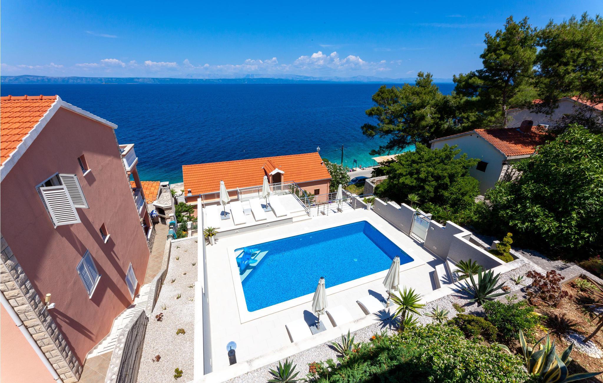 Disse fire flotte ferieleilighetene ligger ikke langt fra sjøen, og innbyr til en avslappende ferie. De har et felles svømmebasseng med en stor overbygd, felles terrasse for sosialt samvær over en cocktail. Leilighetene er vakkert og smakfullt innredet, og har en fantastisk panoramautsikt over sjøen. I første etasje er det et fellesrom med biljardbord og grill. Bare noen få skritt nedenfor huset ligger to fiskerestauranter, en kafé og stranden. Eieren av huset bor i første etasje. La deg fortrylle av naturen og menneskene på Korula.