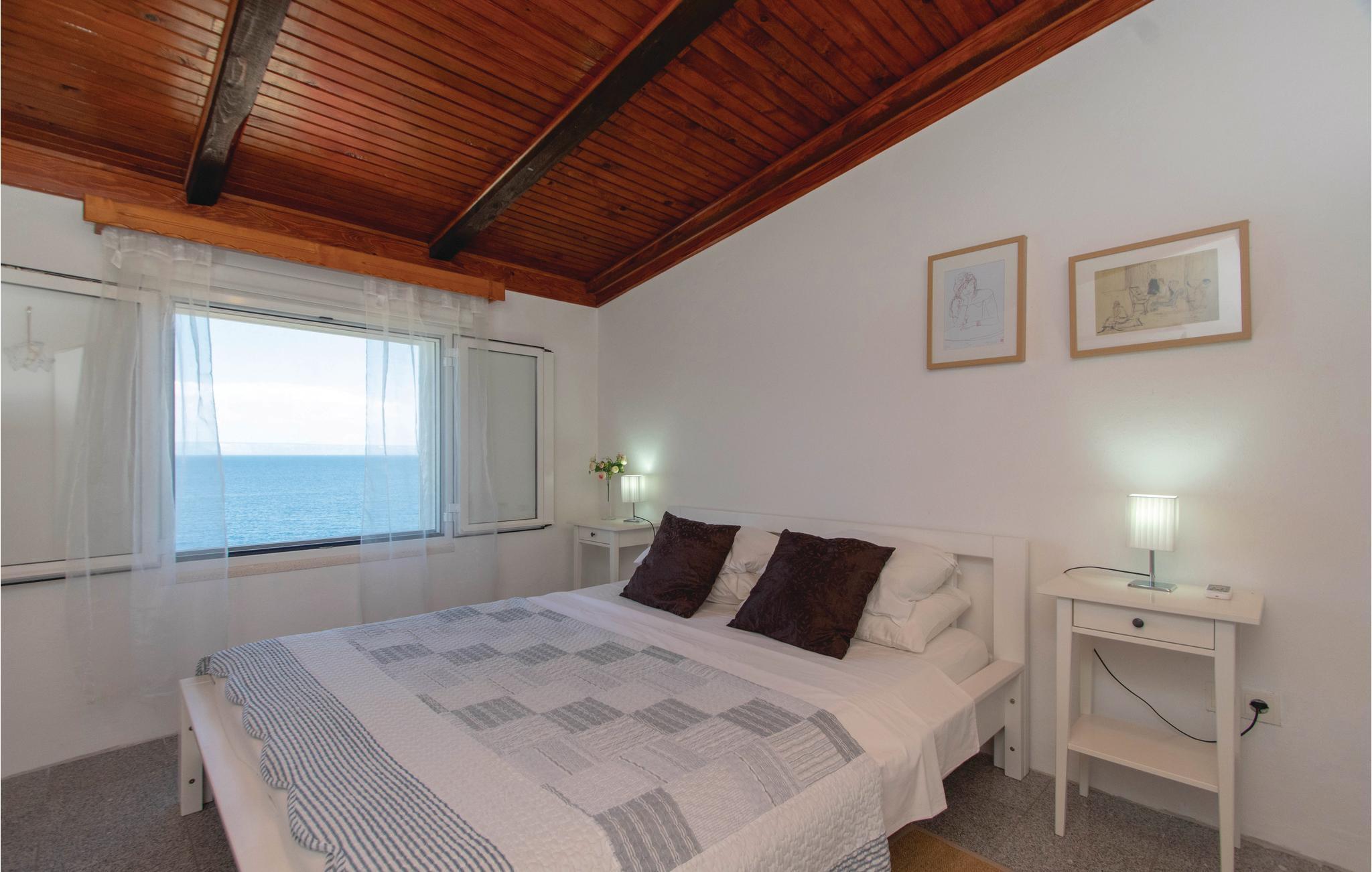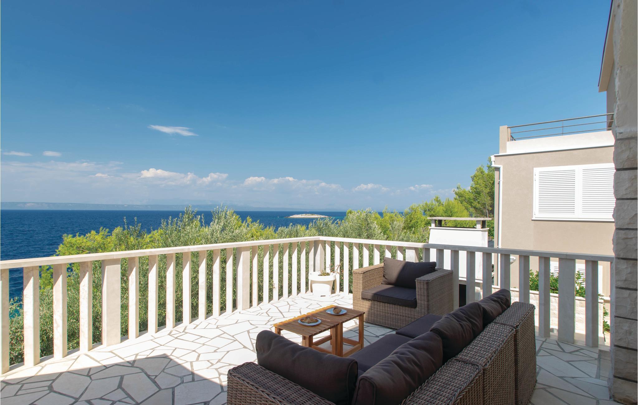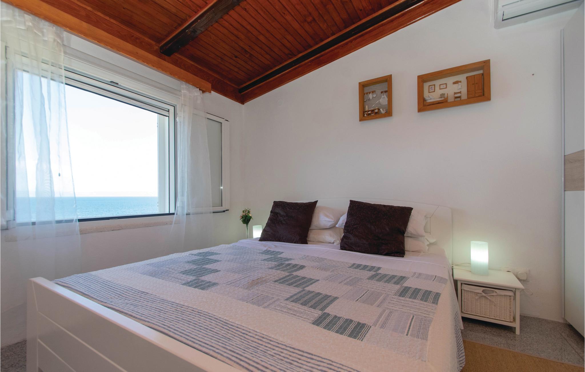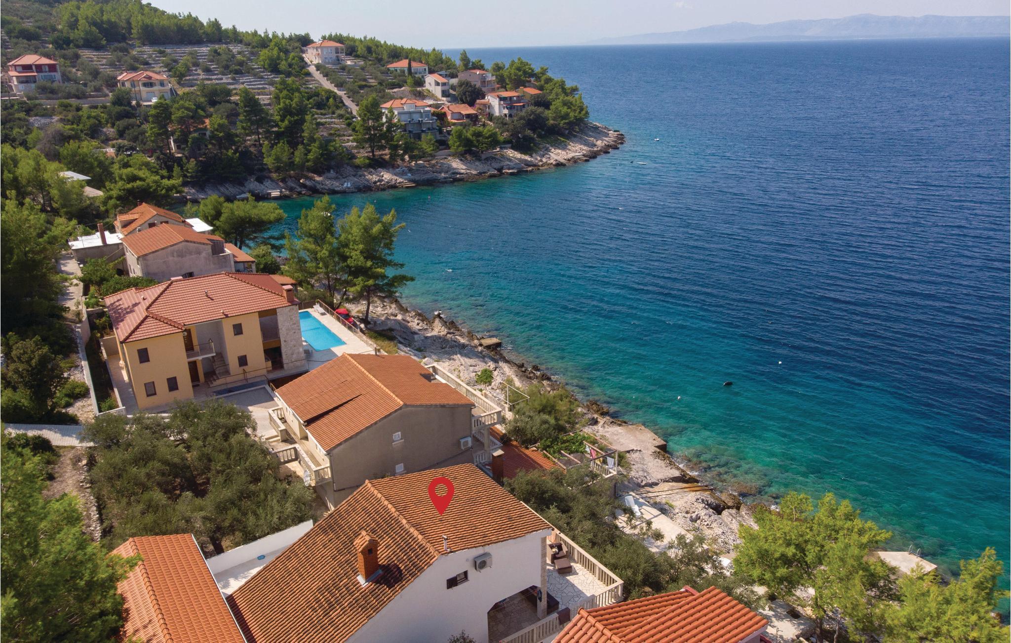 I idylliske omgivelser i Prigradica-bukten ligger dette feriehuset i 2 etasjer og forbundet med interne trapper og tilbyr sine gjester alt de trenger for en avslappende ferie. I første etasje er stuen og på loftet med den laveste takhøyden på 180 cm er soveområdet. I første etasje er det også en overbygd terrasse med panoramautsikt over øya Hvar og det blå havet, hvor du kan tilbringe uforglemmelige timer utendørs. Trapper fører fra huset til betongplatået, hvor du sikkert vil ha en fantastisk tid å slappe av. De siste ca. 50 m til huset er bratte.
