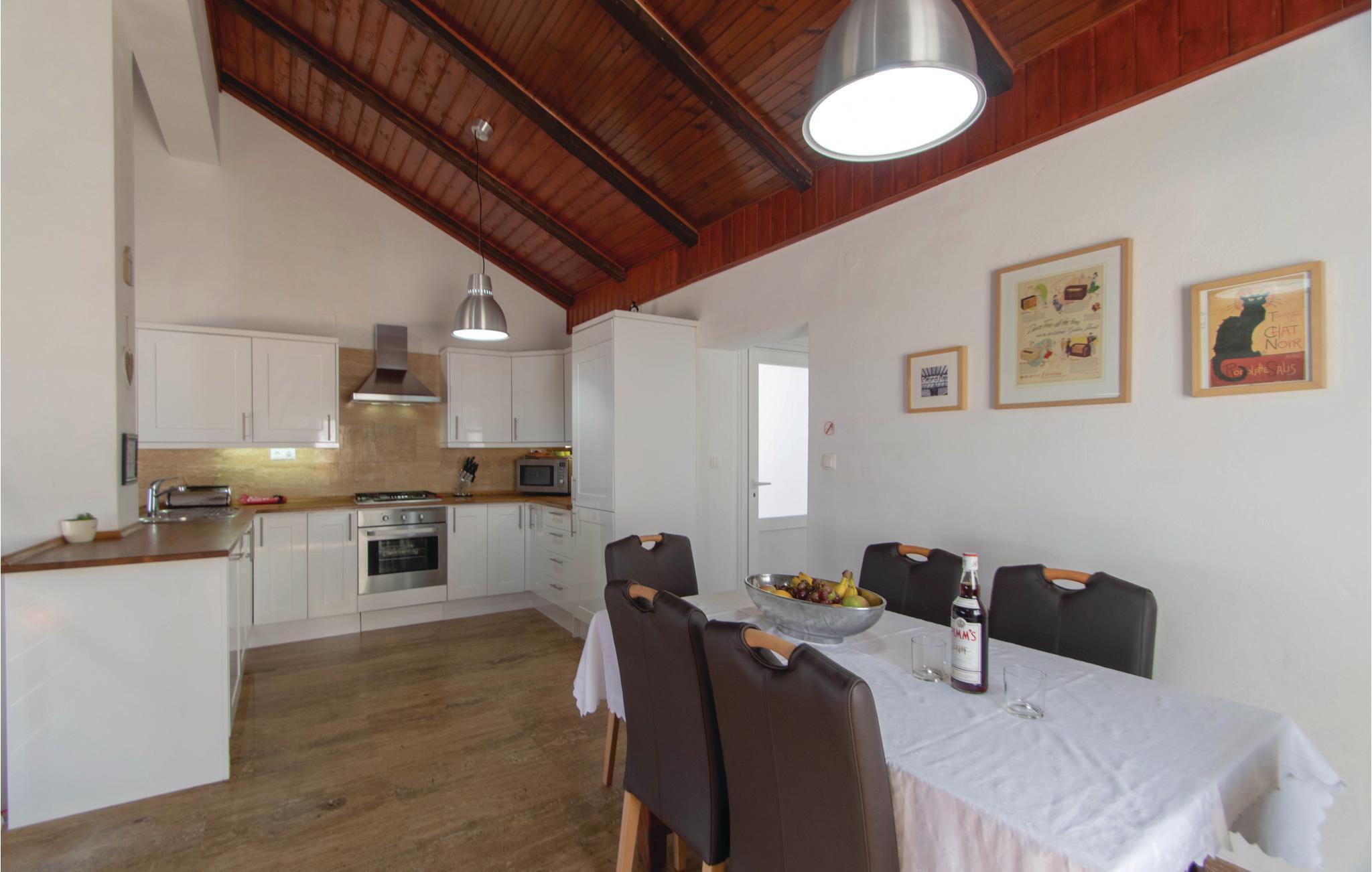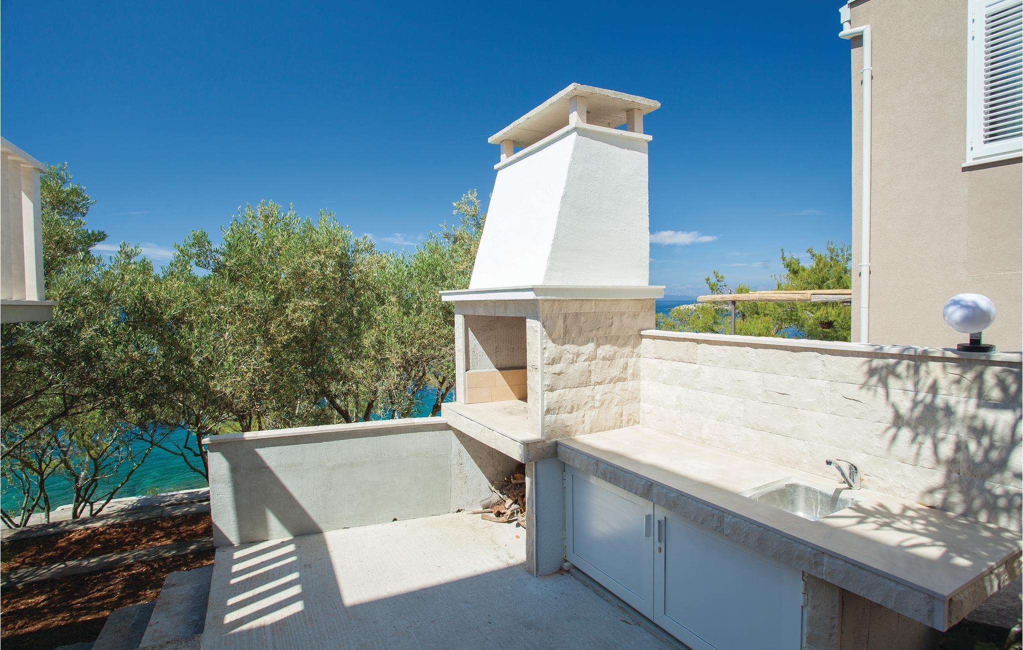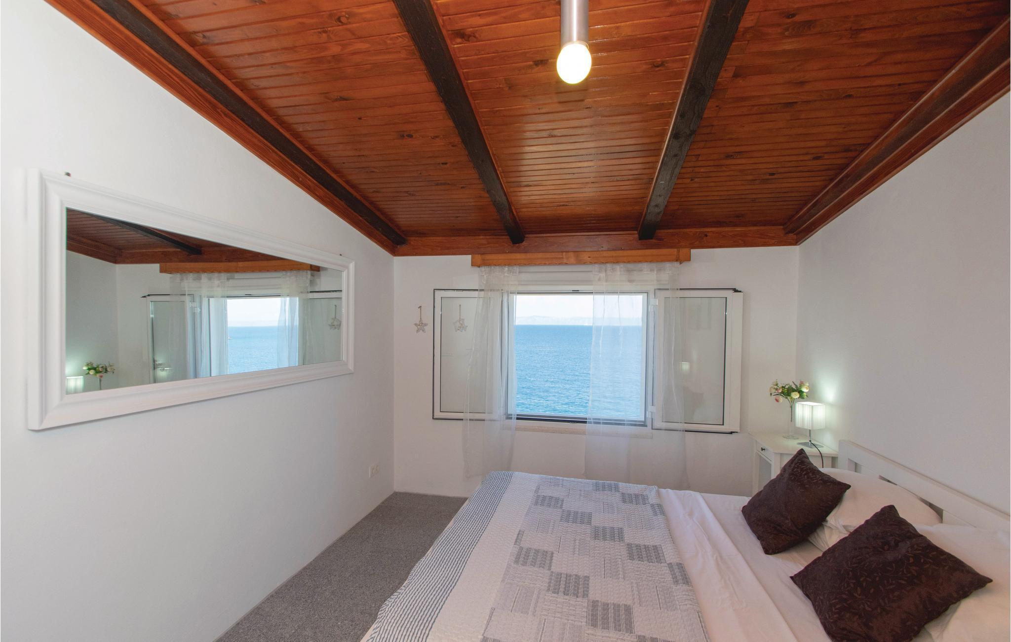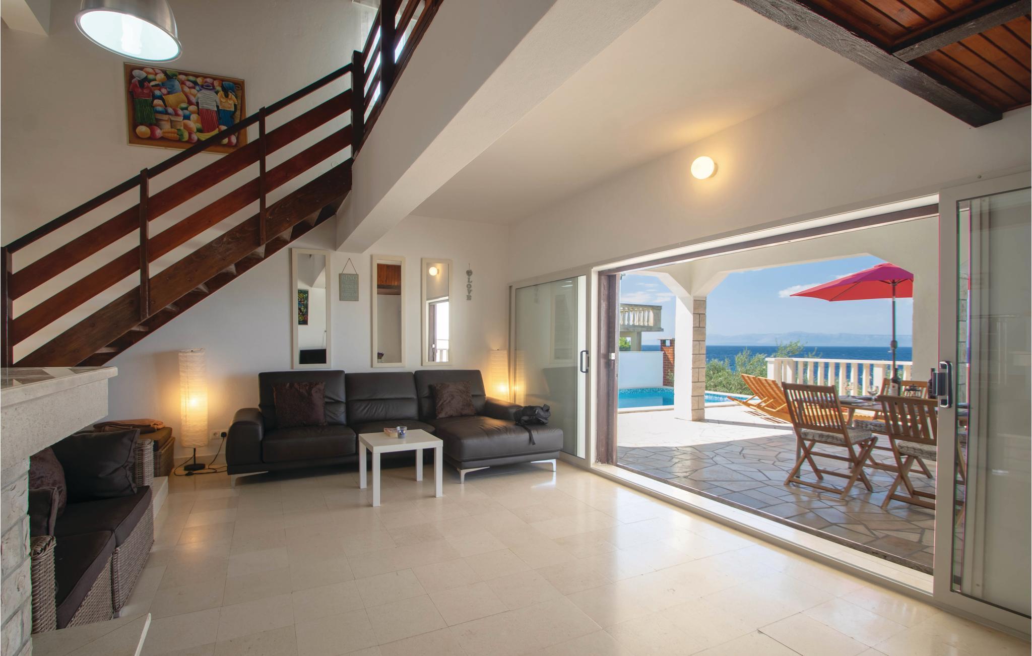 I idylliske omgivelser i Prigradica-bukten ligger dette feriehuset i 2 etasjer og forbundet med interne trapper og tilbyr sine gjester alt de trenger for en avslappende ferie. I første etasje er stuen og på loftet med den laveste takhøyden på 180 cm er soveområdet. I første etasje er det også en overbygd terrasse med panoramautsikt over øya Hvar og det blå havet, hvor du kan tilbringe uforglemmelige timer utendørs. Trapper fører fra huset til betongplatået, hvor du sikkert vil ha en fantastisk tid å slappe av. De siste ca. 50 m til huset er bratte.