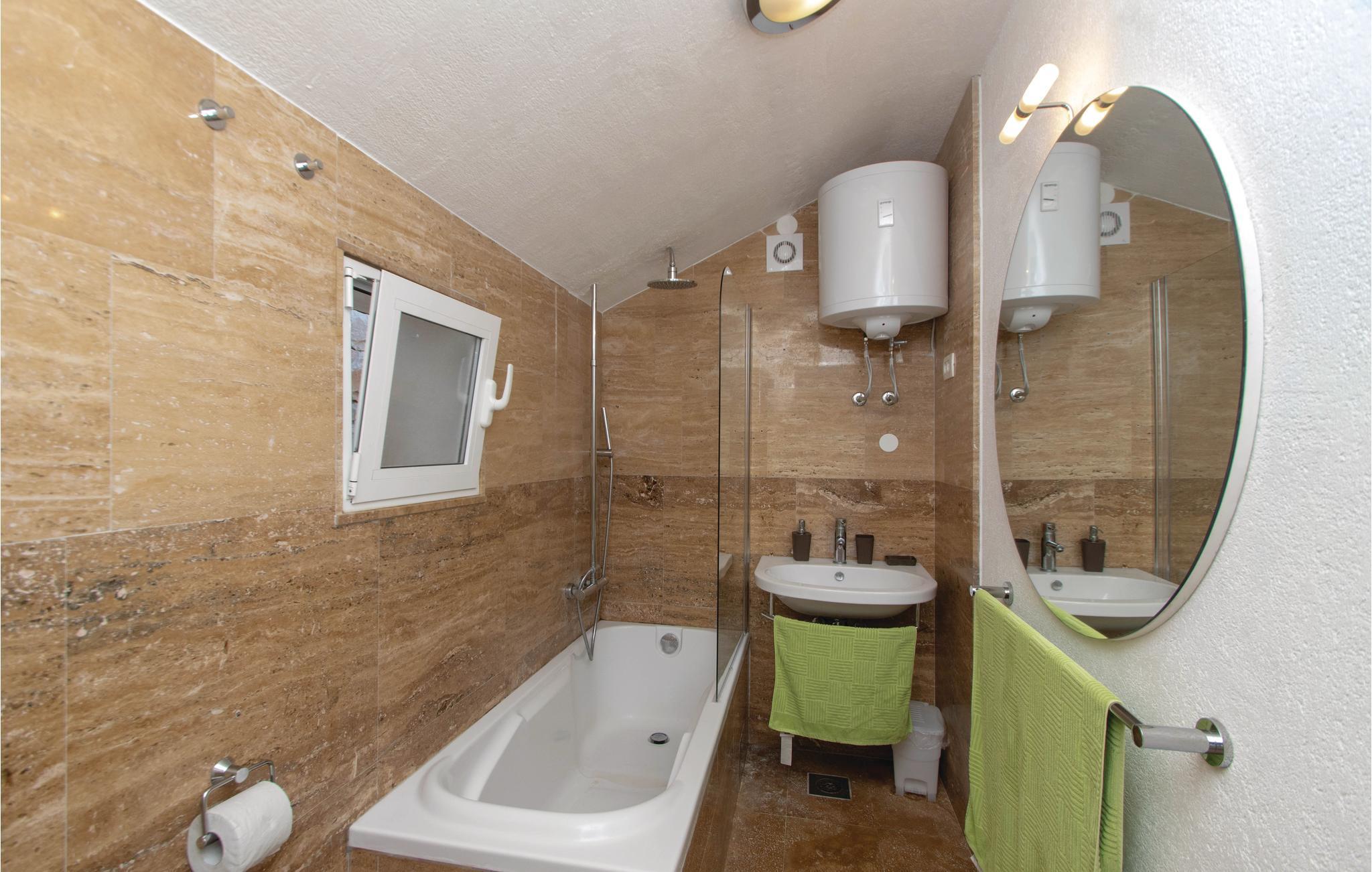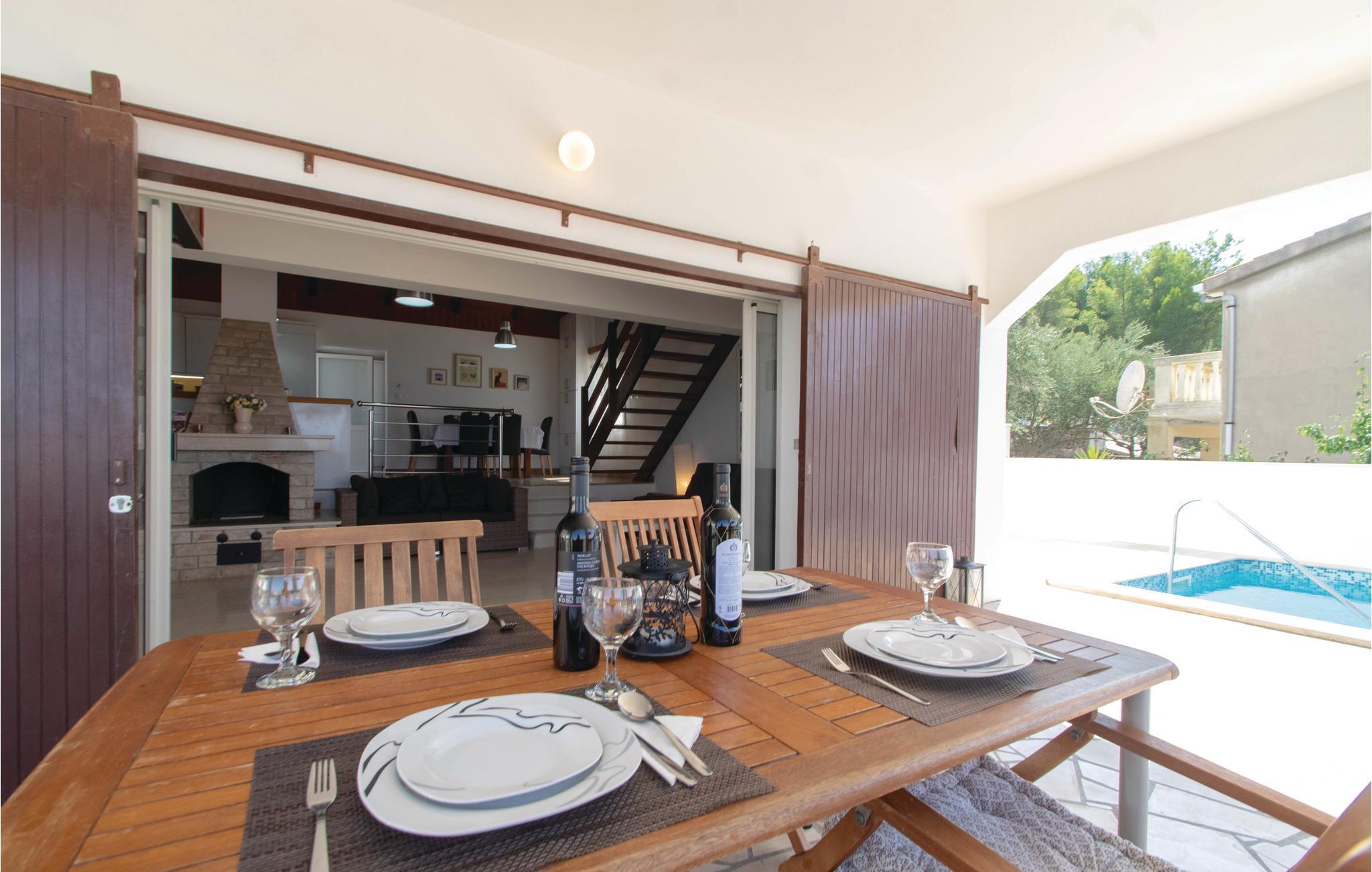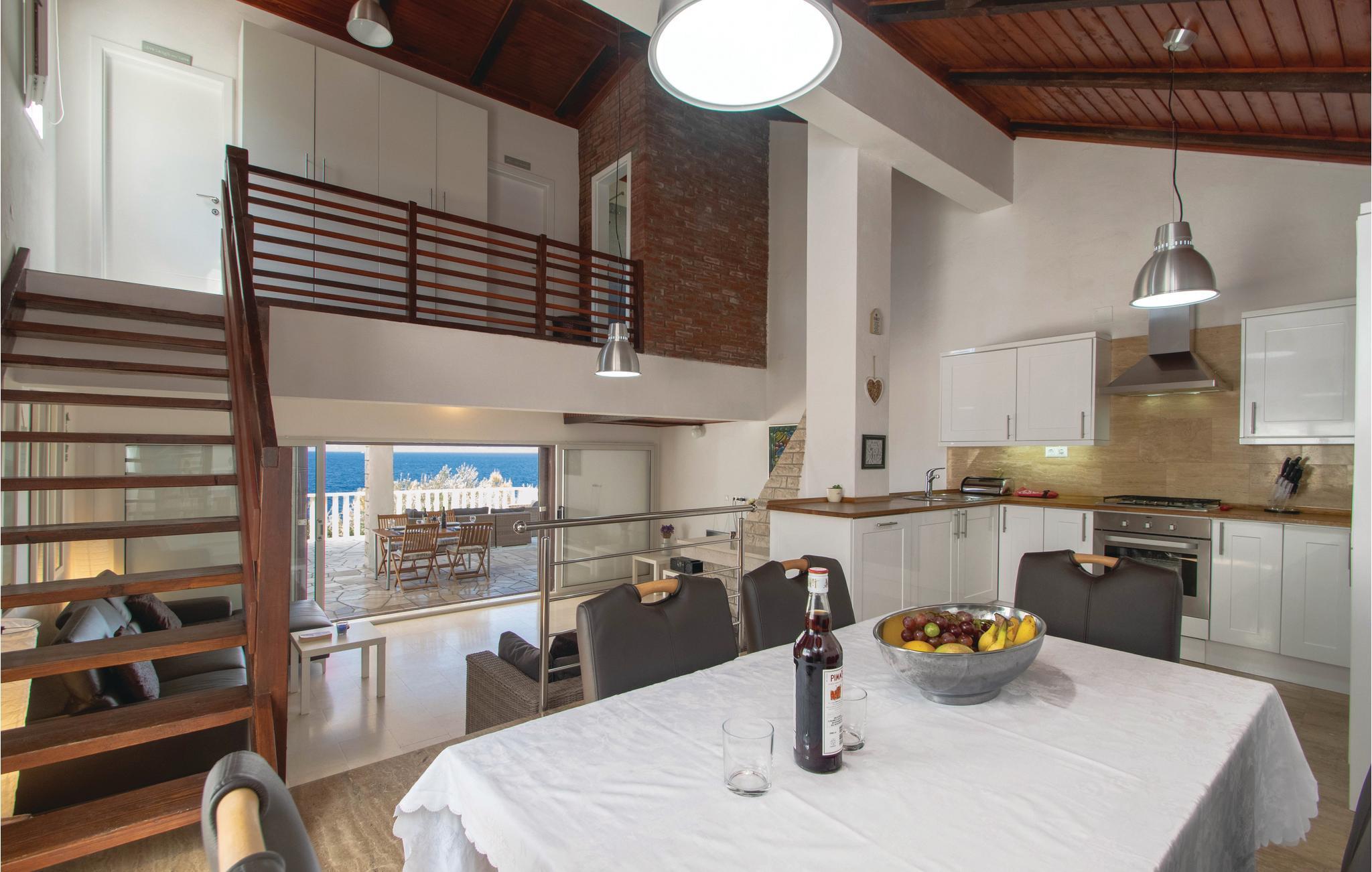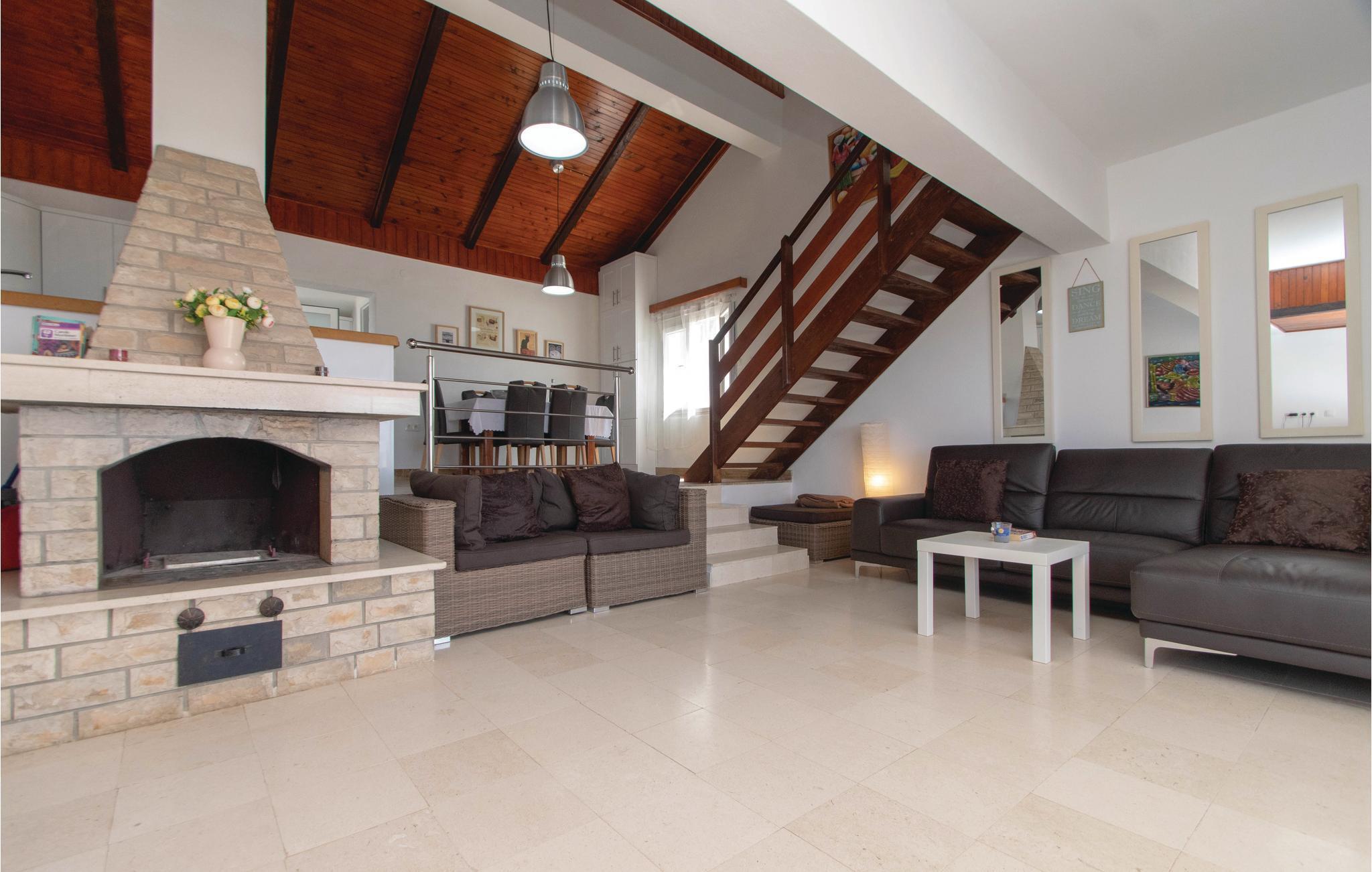 I idylliske omgivelser i Prigradica-bukten ligger dette feriehuset i 2 etasjer og forbundet med interne trapper og tilbyr sine gjester alt de trenger for en avslappende ferie. I første etasje er stuen og på loftet med den laveste takhøyden på 180 cm er soveområdet. I første etasje er det også en overbygd terrasse med panoramautsikt over øya Hvar og det blå havet, hvor du kan tilbringe uforglemmelige timer utendørs. Trapper fører fra huset til betongplatået, hvor du sikkert vil ha en fantastisk tid å slappe av. De siste ca. 50 m til huset er bratte.