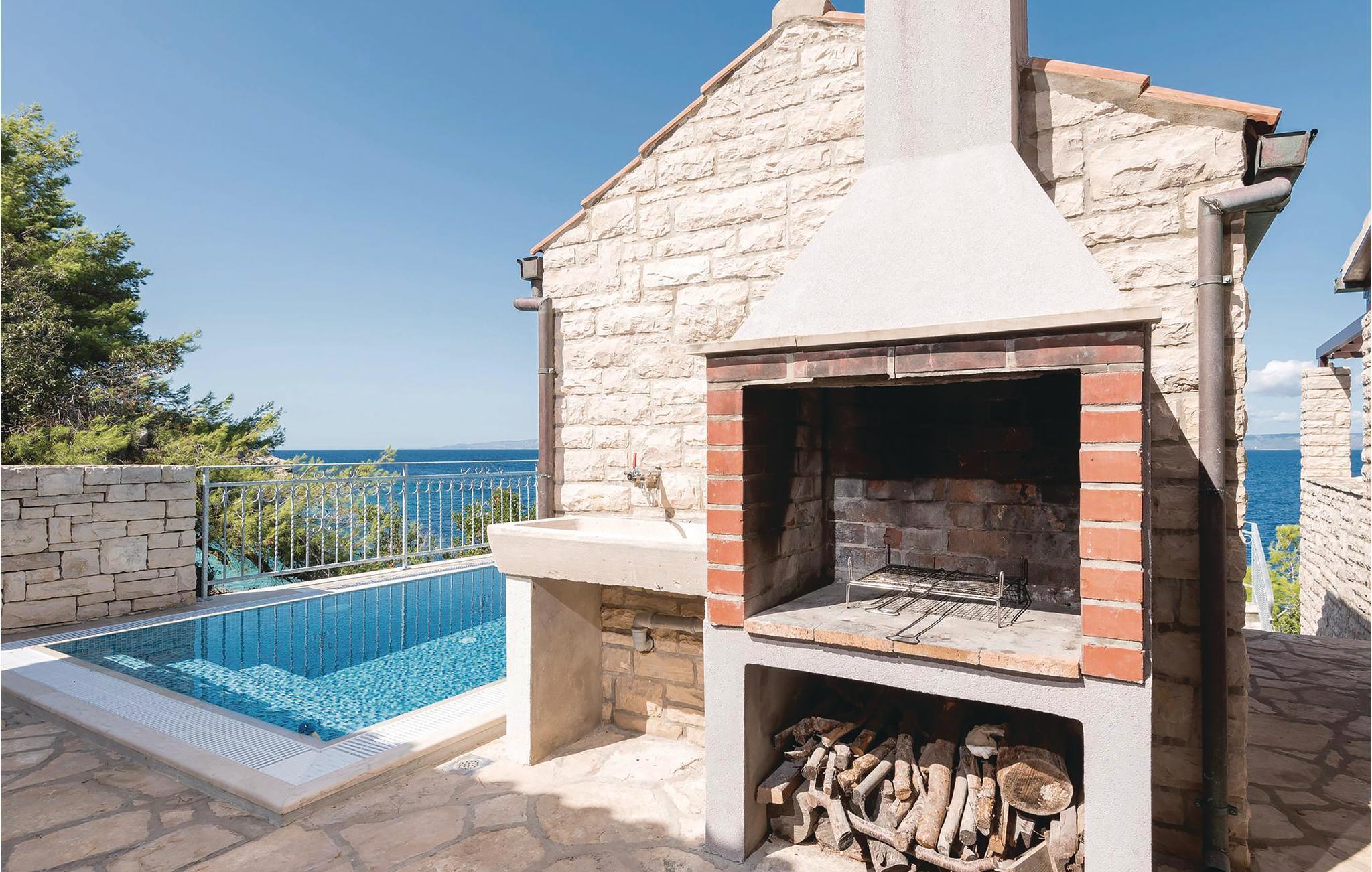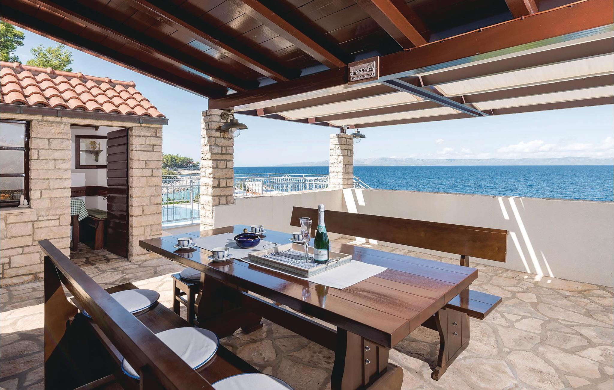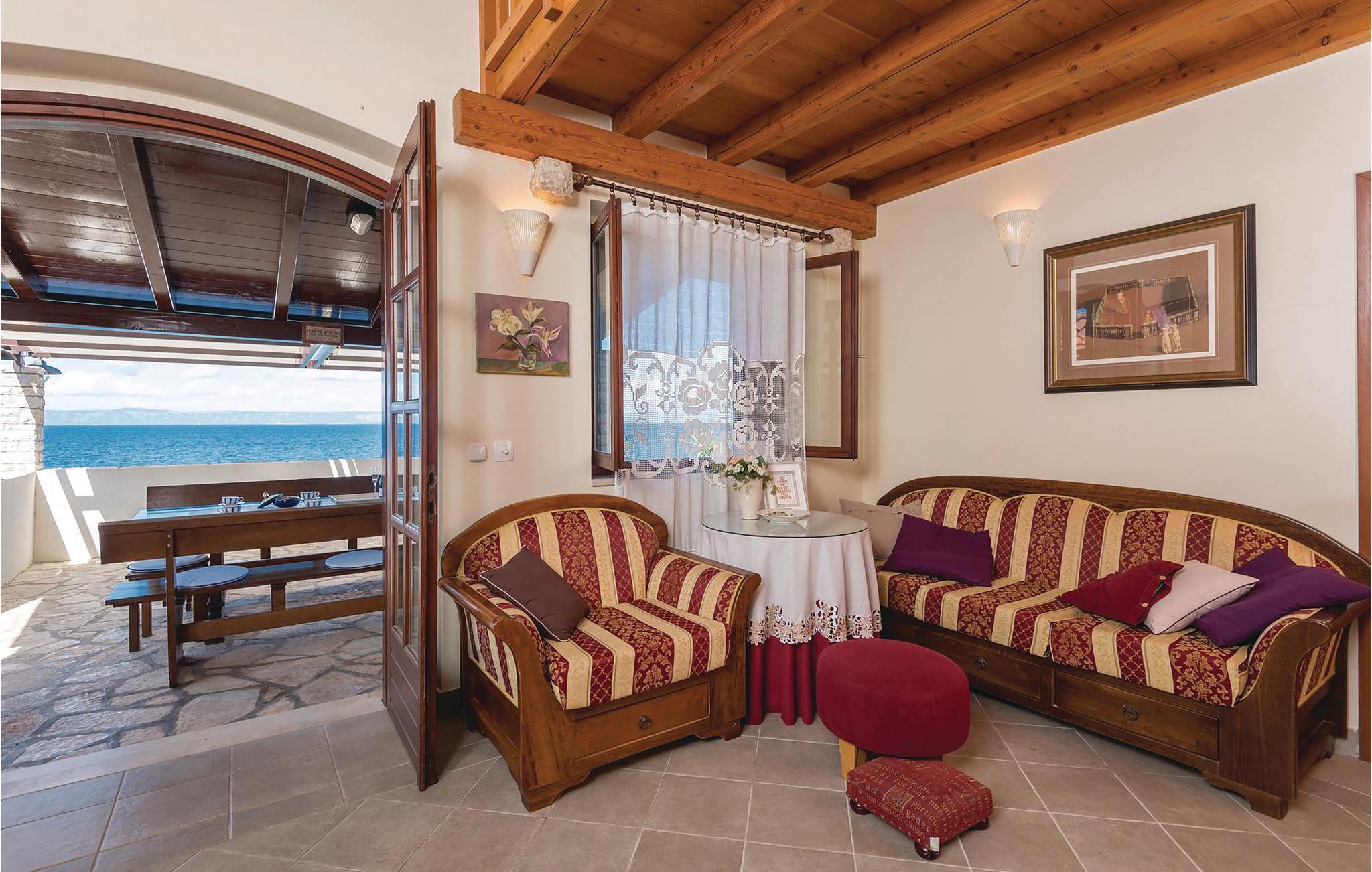 Vakkert steinhus med basseng, direkte ved sjøen og med fantastisk utsikt. Den består av tre boenheter, hvorav to er studioleiligheter i uthus, med egen inngang fra utsiden. I hovedhuset er det et romslig kjøkken, spisestue og stue og to soverom i første etasje. En intern trapp fører deg til galleriet, hvor det er et annet soverom med bad, samt en finsk badstue. Terrassen med basseng vil ta pusten fra deg. Huseieren er en lidenskapelig fisker og eier en ranch og står til din disposisjon om nødvendig.