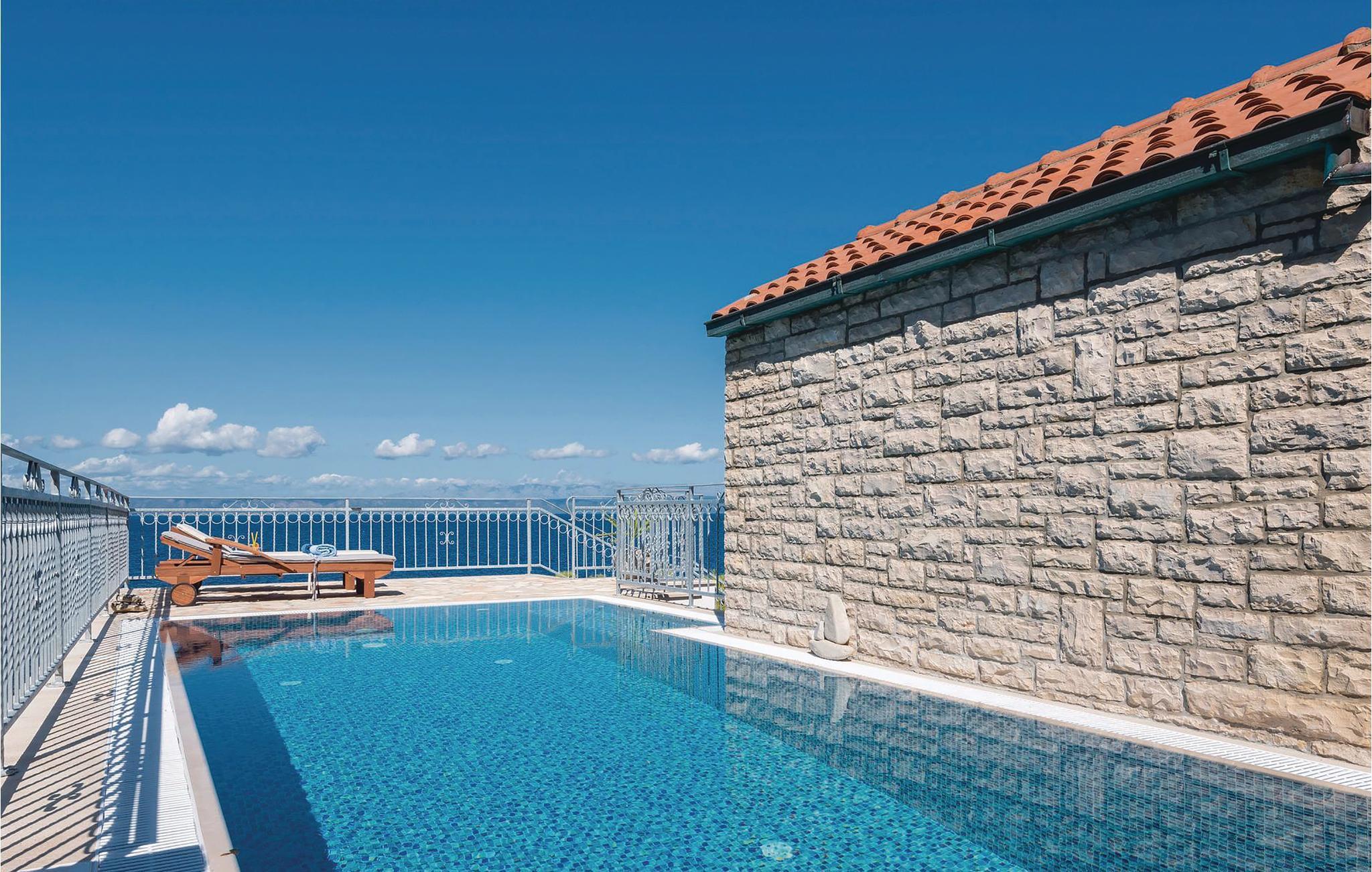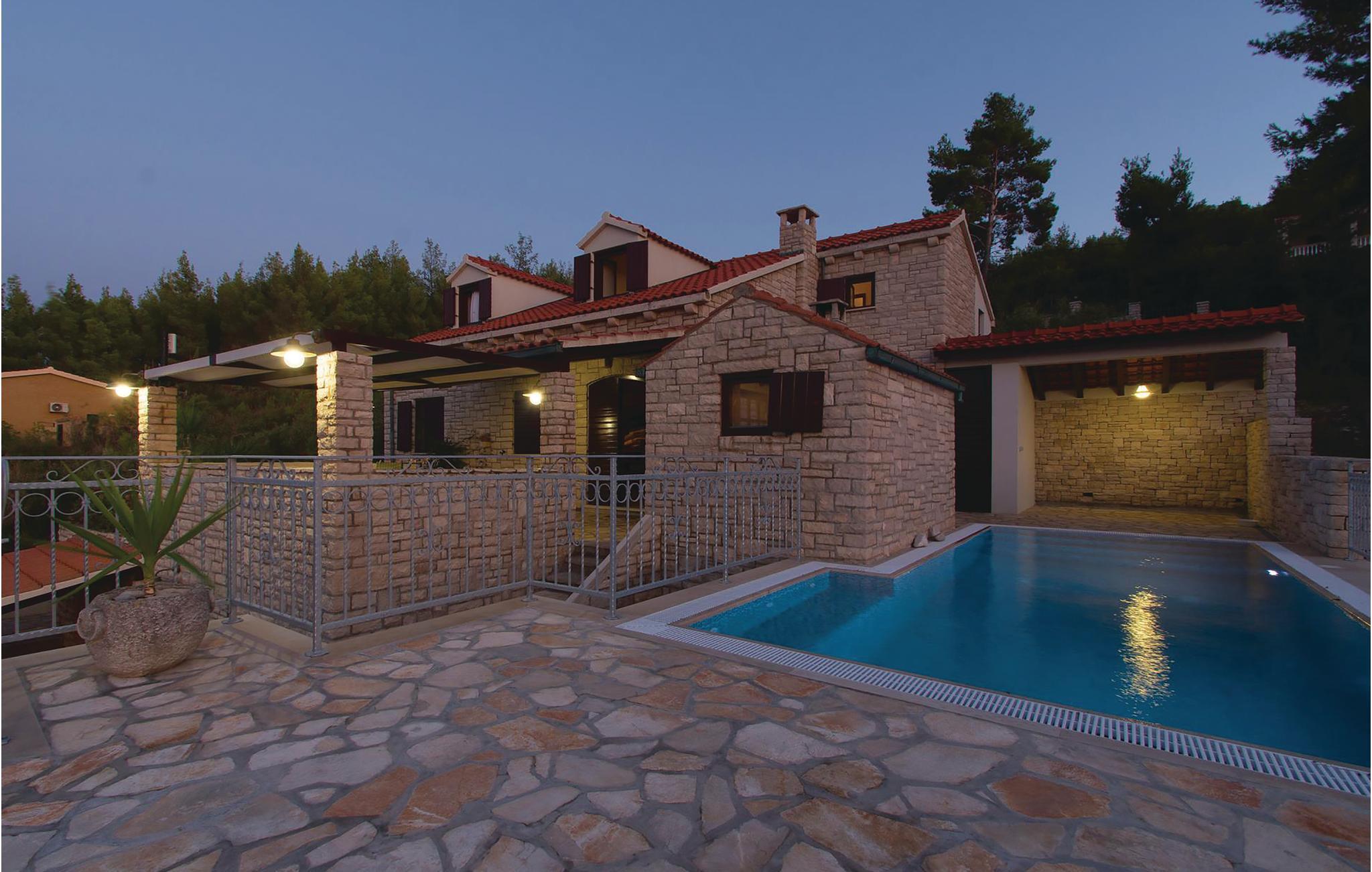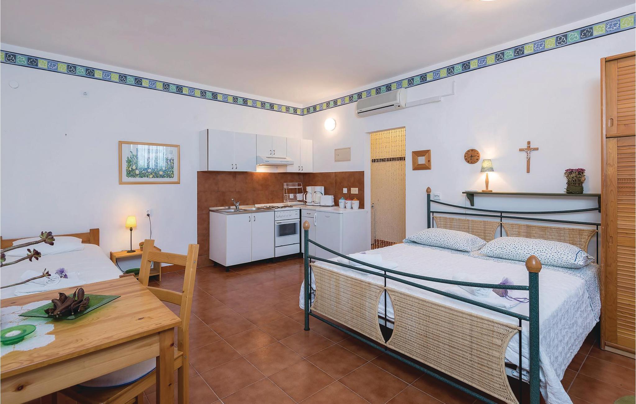 Vakkert steinhus med basseng, direkte ved sjøen og med fantastisk utsikt. Den består av tre boenheter, hvorav to er studioleiligheter i uthus, med egen inngang fra utsiden. I hovedhuset er det et romslig kjøkken, spisestue og stue og to soverom i første etasje. En intern trapp fører deg til galleriet, hvor det er et annet soverom med bad, samt en finsk badstue. Terrassen med basseng vil ta pusten fra deg. Huseieren er en lidenskapelig fisker og eier en ranch og står til din disposisjon om nødvendig.