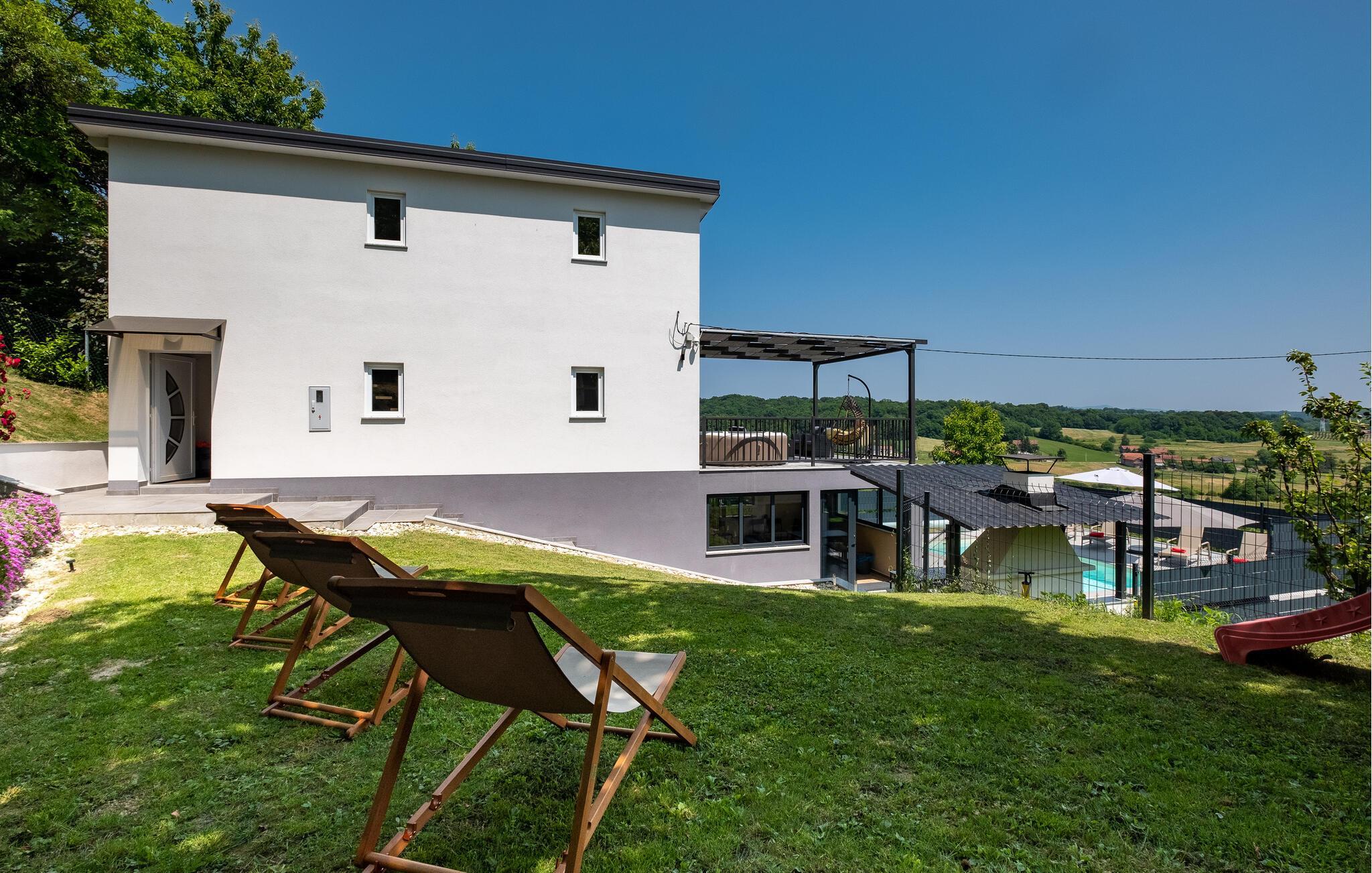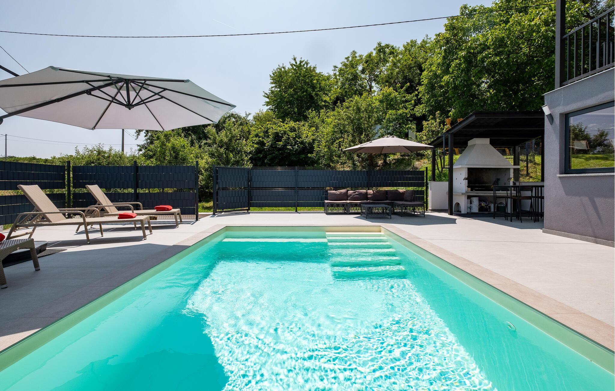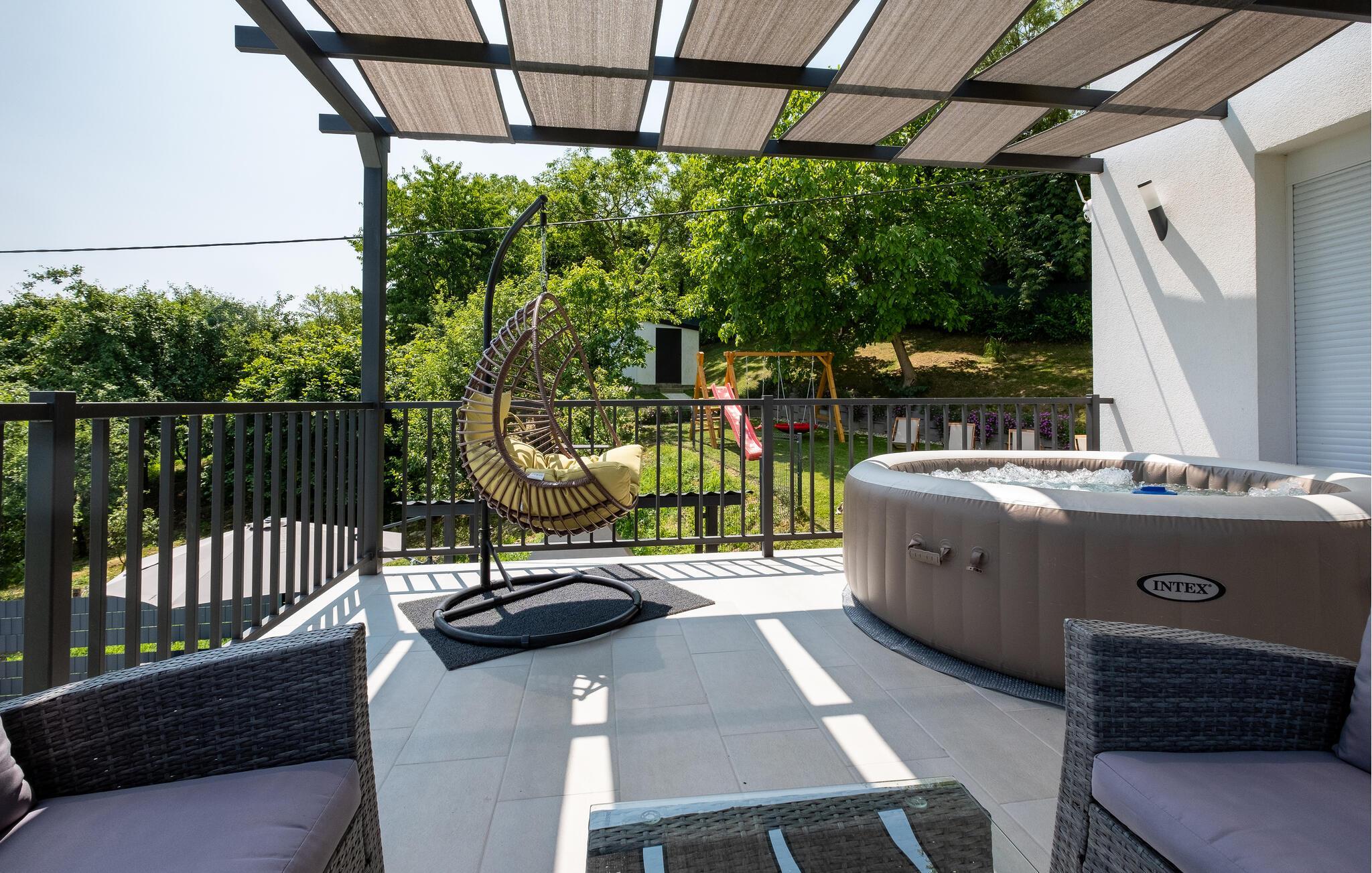 Det romslige uteområdet lover lange timer under den kroatiske solen. Start dagen med frokost på terrassen, forfrisk deg i bassenget eller slapp av på solsengene i den velstelte hagen. Unn deg en aperitiff i den innbydende salongen på balkongen, la blikket vandre over de idylliske omgivelsene og organiser stemningsfulle grillkvelder.