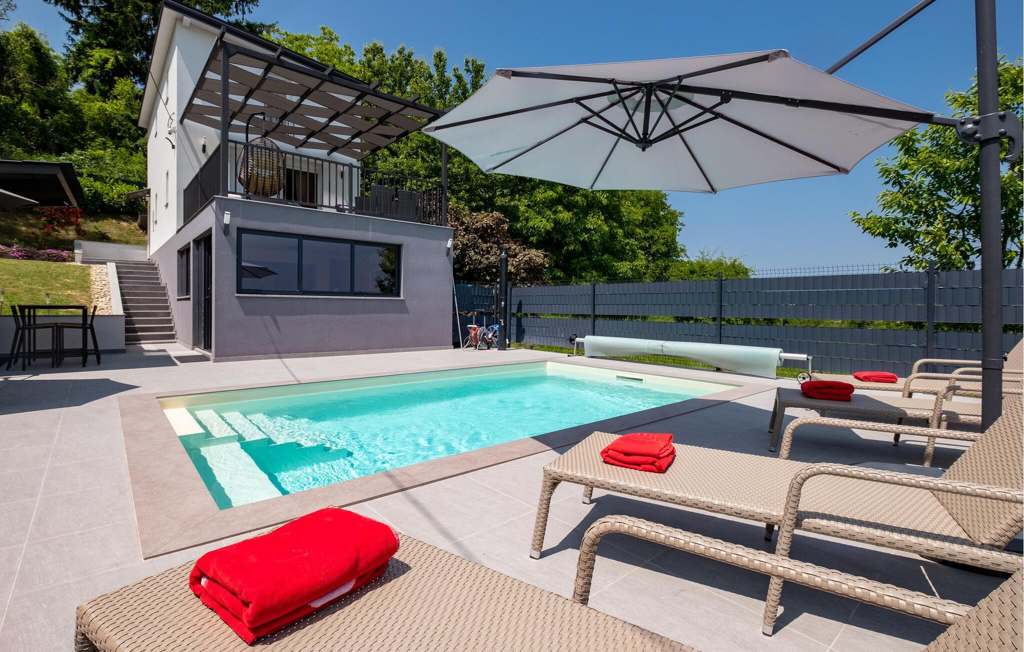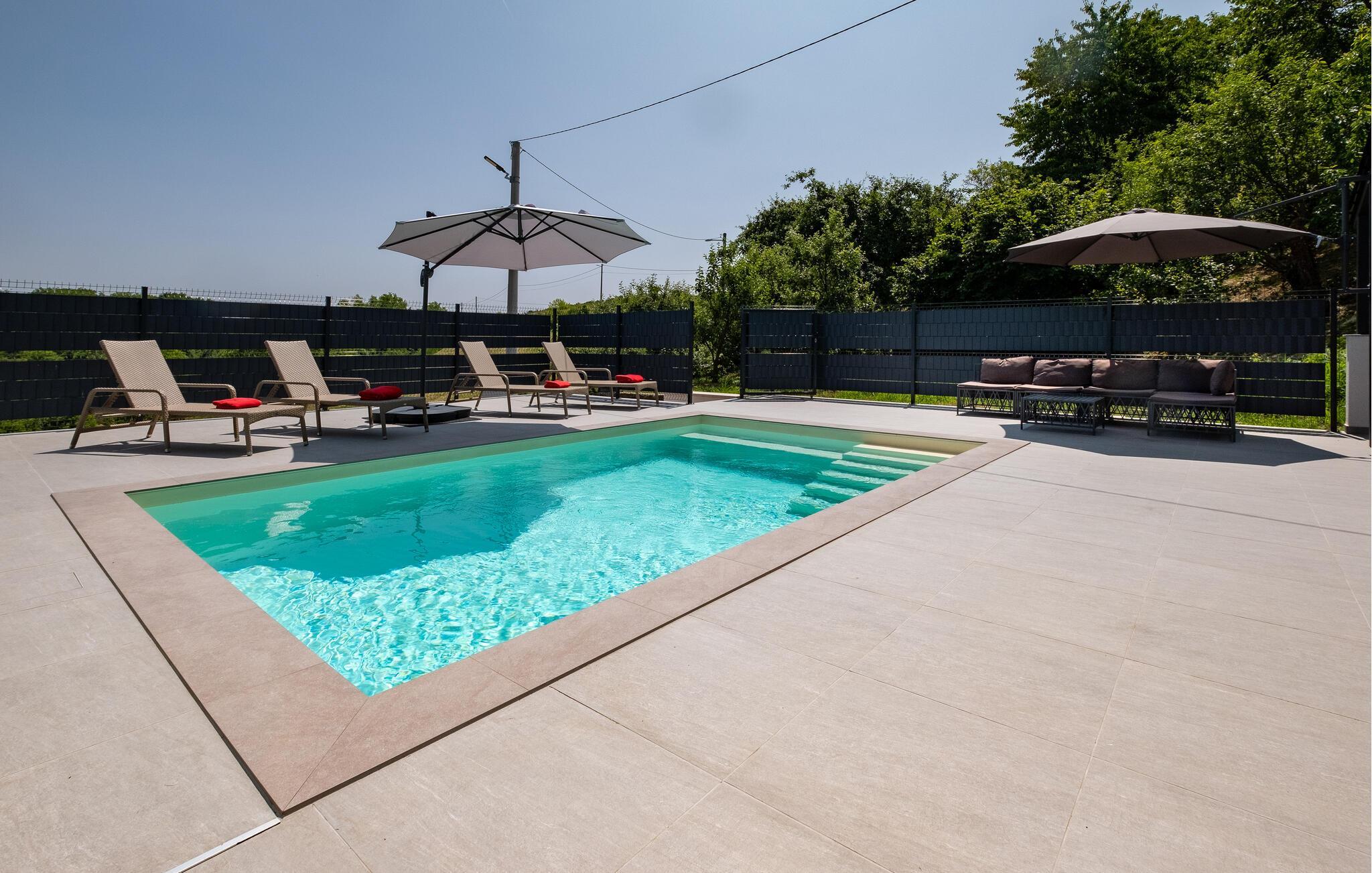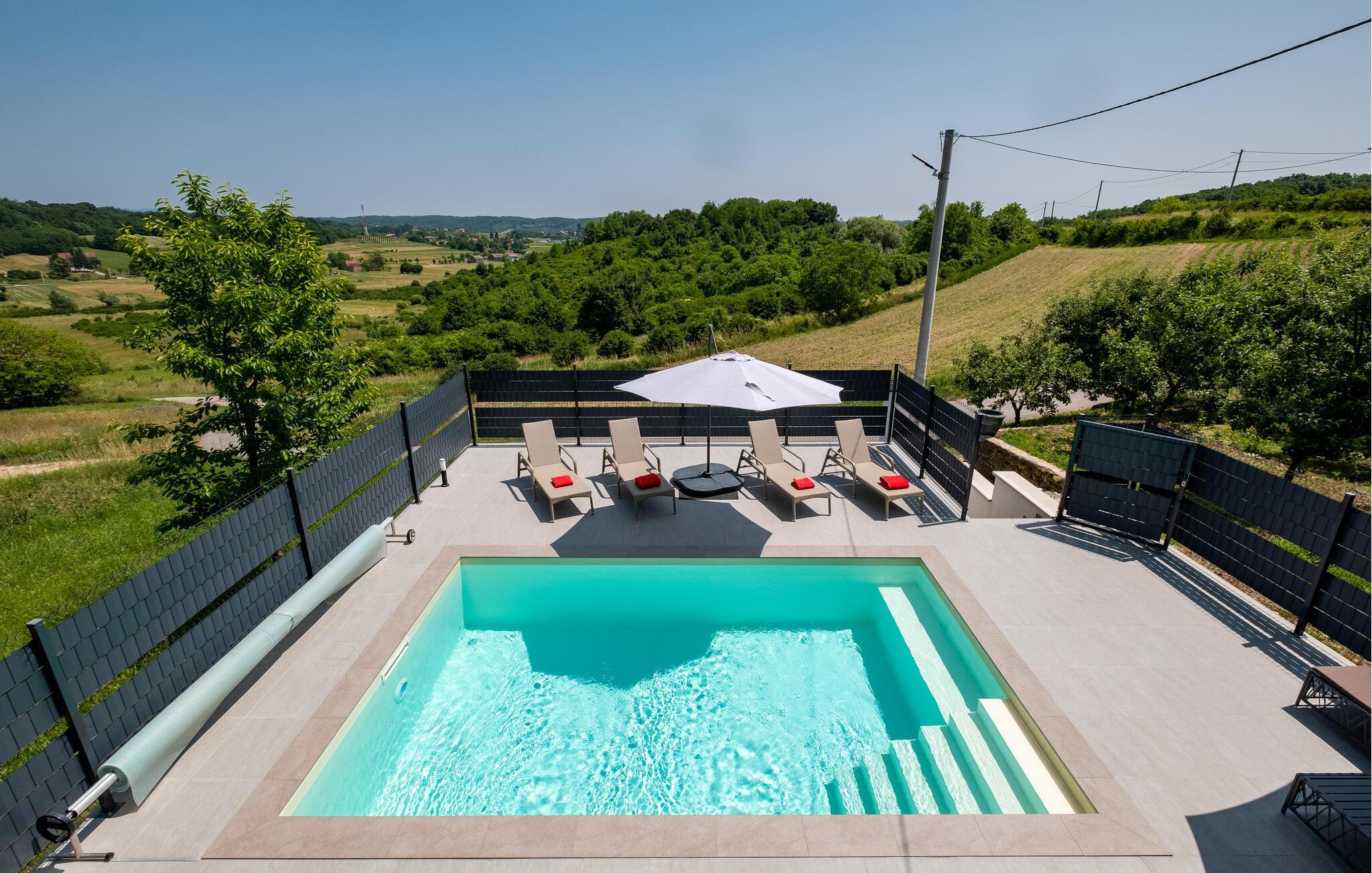 Det romslige uteområdet lover lange timer under den kroatiske solen. Start dagen med frokost på terrassen, forfrisk deg i bassenget eller slapp av på solsengene i den velstelte hagen. Unn deg en aperitiff i den innbydende salongen på balkongen, la blikket vandre over de idylliske omgivelsene og organiser stemningsfulle grillkvelder.