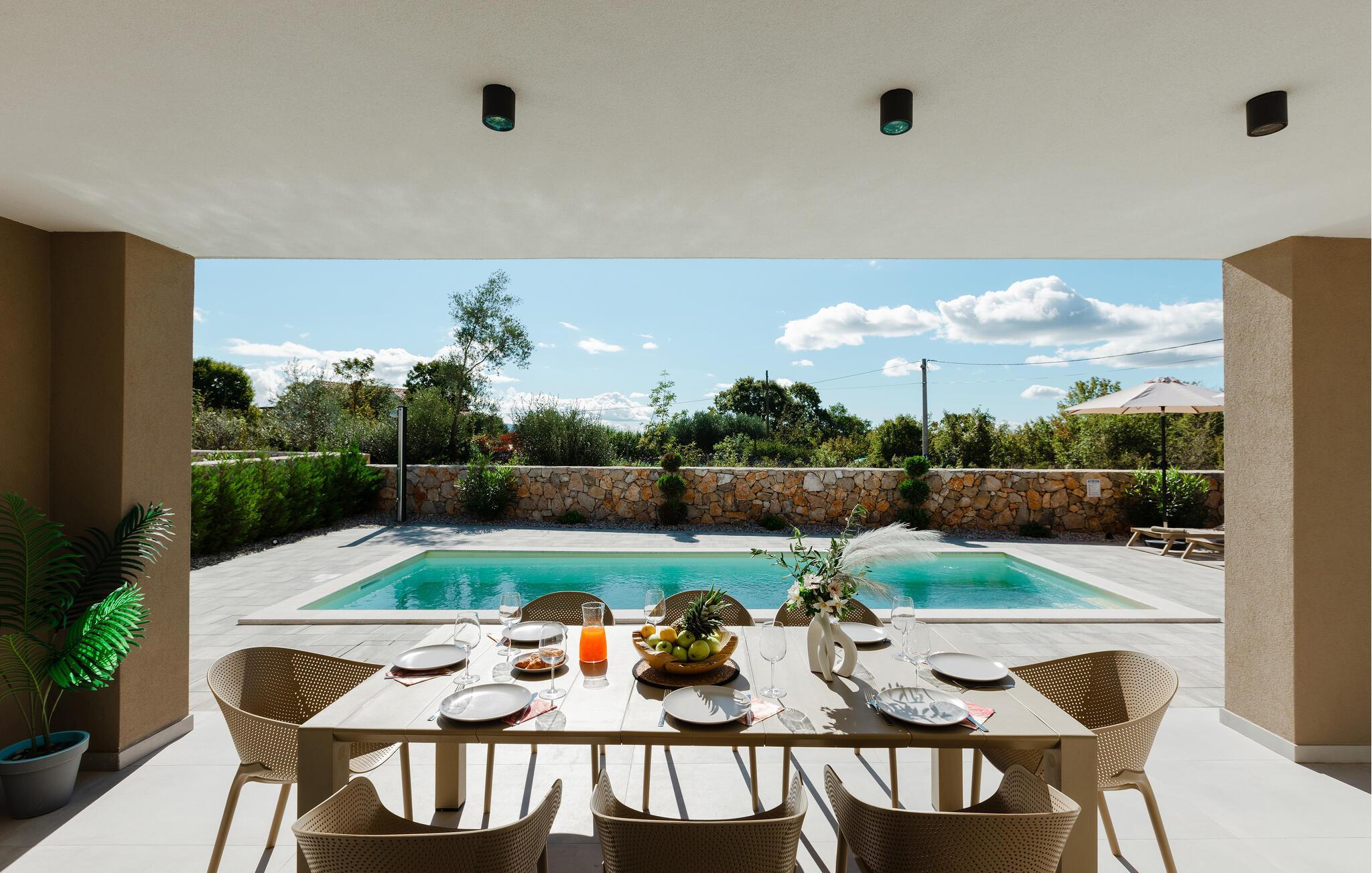 Nyt en fantastisk panoramautsikt i dette attraktive feriehuset med basseng.