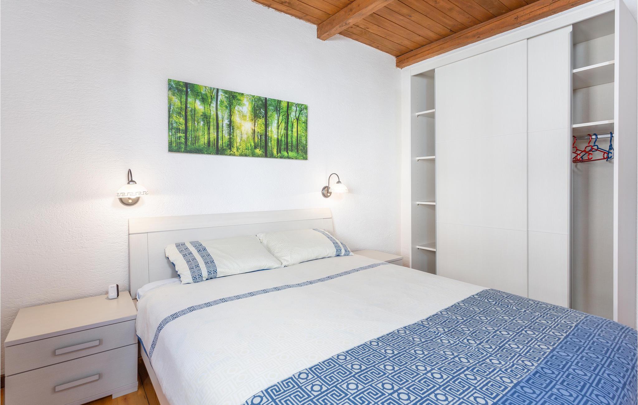 I et hus med to ferieleiligheter ønsker denne komfortable leiligheten i 1. etasje deg velkommen. Kom hit og nyt en avslappende ferie med familien din. Stuen er komfortabelt innredet og inviterer deg til å tilbringe underholdende timer med å spille spill og se på film. Den vakre balkongen, som grenser til stuen og gir deg en vakker utsikt over havet, gir deg den rette innstillingen for å ta måltidene dine i frisk luft og planlegge aktivitetene dine. I tillegg er det et svømmebasseng i den felles hagen for din badeglede, hvor du kan forfriske deg som familie og sosialisere med de andre gjestene.