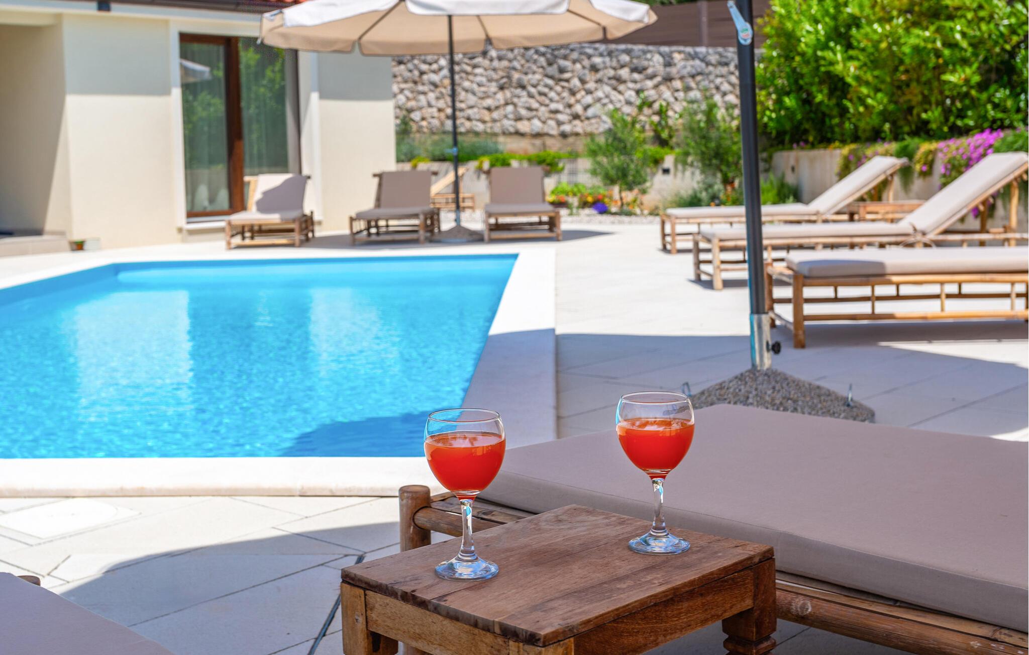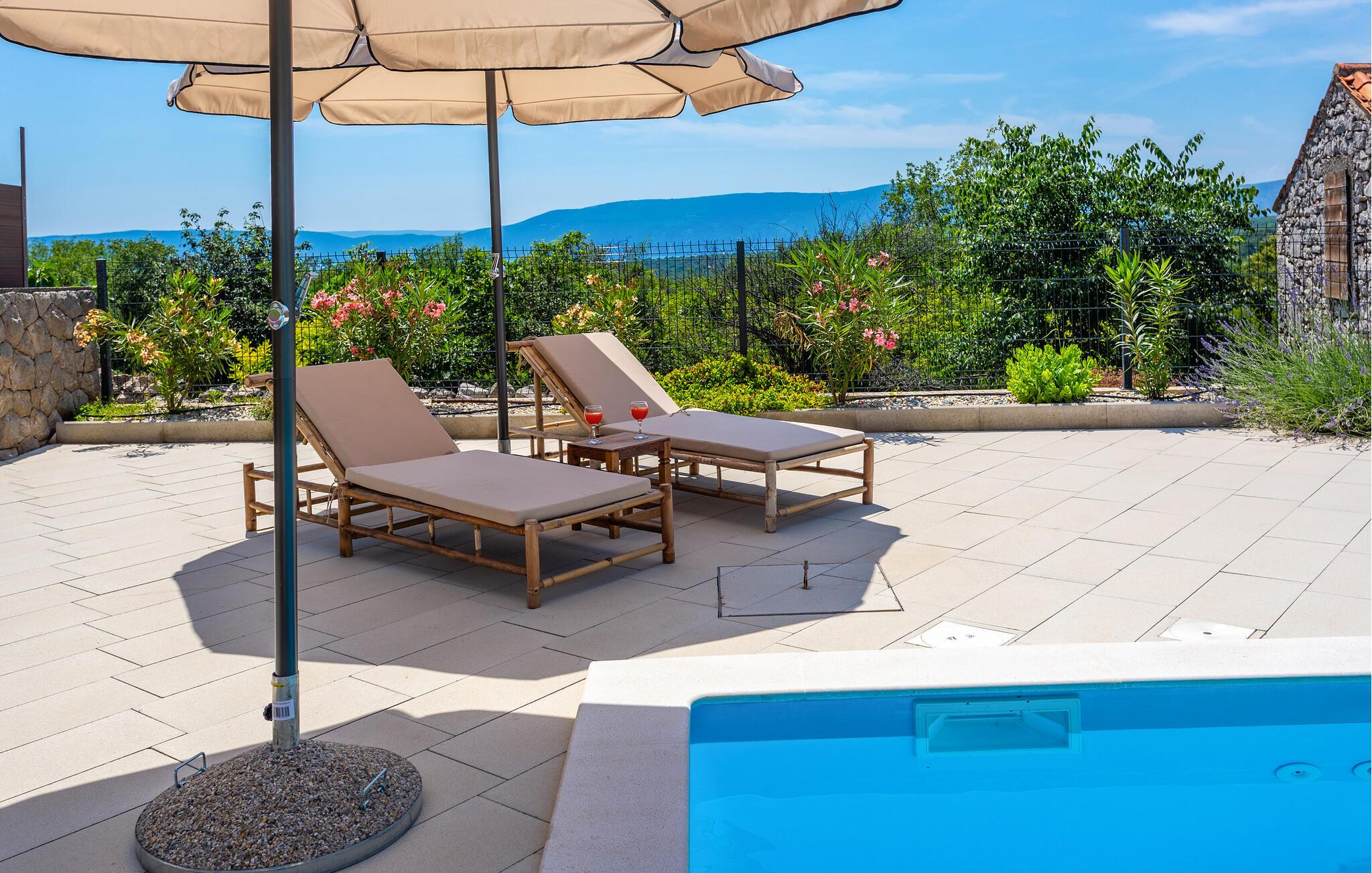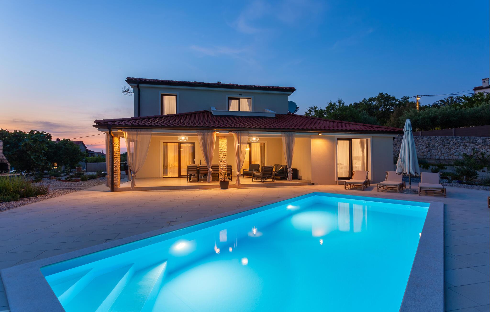 Dette vakre og moderne feriehuset ligger omgitt av natur, og ønsker deg velkommen med en stor terrasse og basseng.