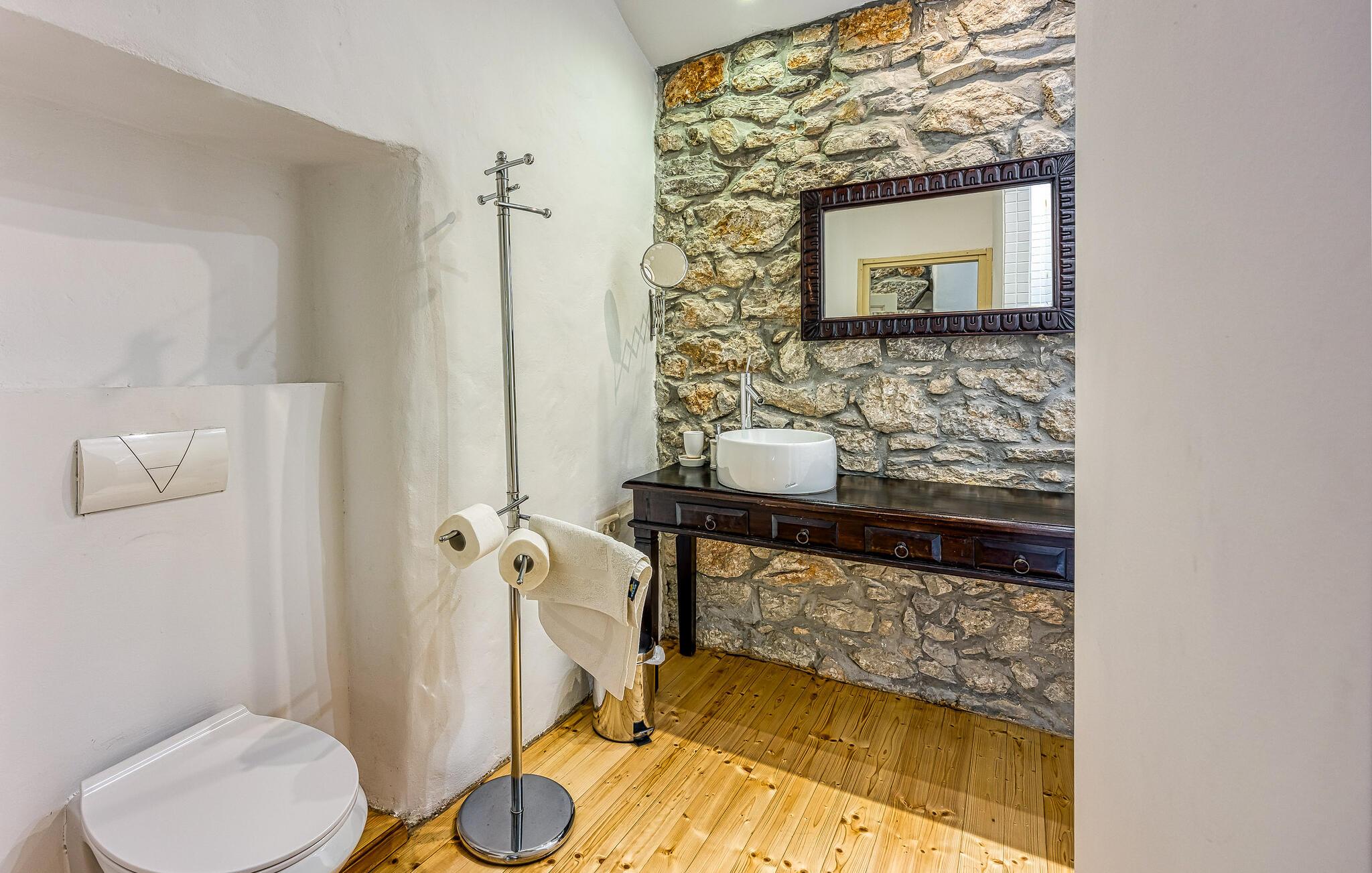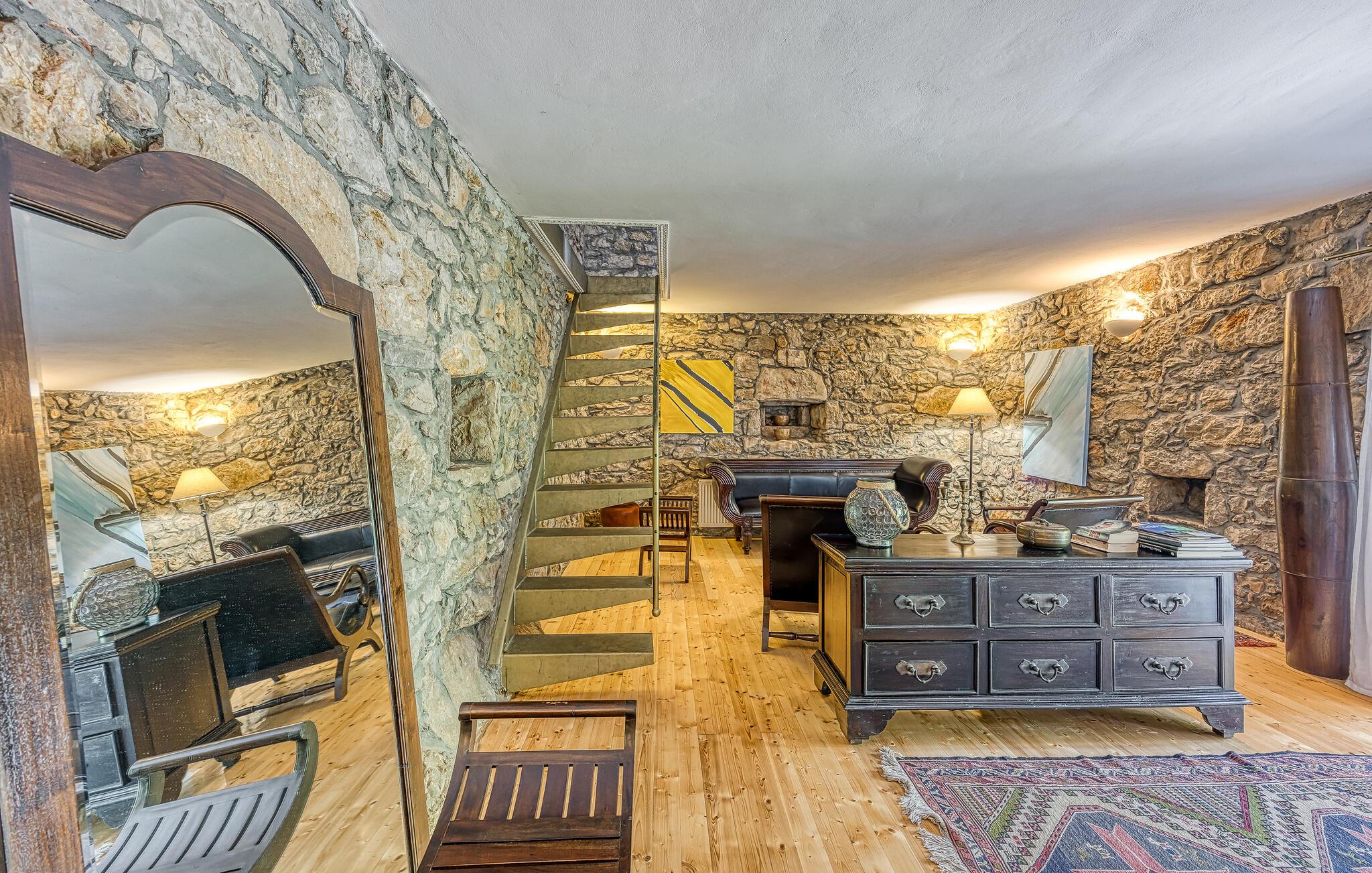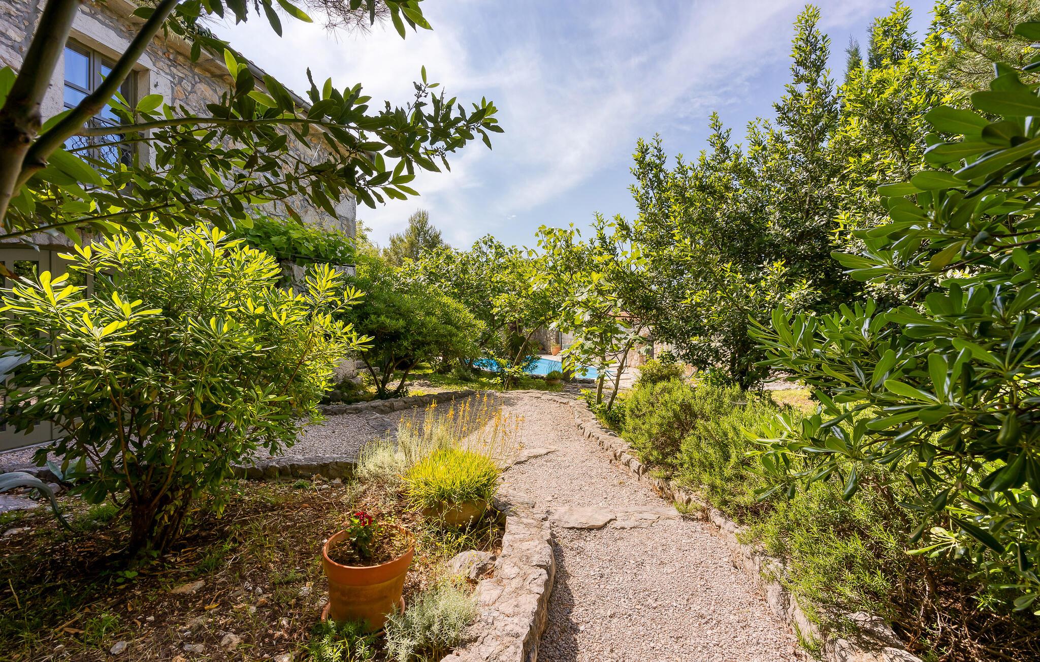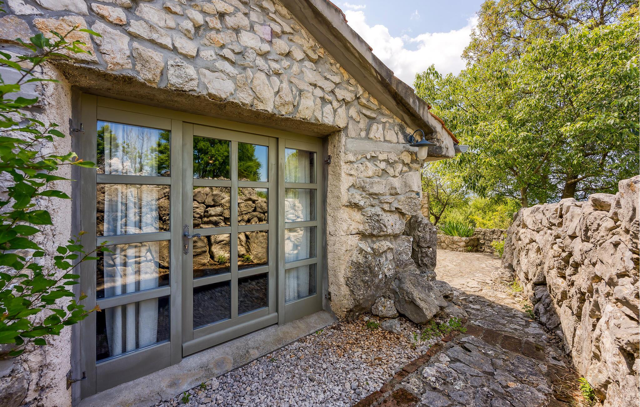 Rustikk atmosfære i et rolig område. Omgitt av den vakre, grønne middelhavsfloraen på øya Krk, finner du dette smakfullt og tradisjonelt innredede feriehuset. Bajcici er et rolig sted i Kvarnerbukten. I første etasje av feriehuset ligger det romslige kjøkkenet og stuen, mens i andre etasje er det to soverom. Det lille, koselige annekset venter på gjestene med ett soverom og et bad. Videre venter et vakkert svømmebasseng og terrassen på den inngjerdede naturlige eiendommen, hvor du kan nyte utsikten over bassenget og de varierte omgivelsene mens du nipper til en kopp kaffe. Besøk byen Krk, i sommermånedene er mange kunstnere og ensembler gjester her. De andre pittoreske byene Vrbnik, Baska, Malinska og Punat ligger også på øya, de vil gjerne invitere deg til å besøke dem. Øyene Rab, Cres og Losinj kan nås daglig med utfluktsbåter. Den lille øya Kosljun er veldig sjarmerende og ligger i bukten Puntarska Draga. Her finner du, blant andre kulturhistorisk verdifulle steder, et kloster som huser et arkeologisk museum og et bibliotek med imponerende historiske bøker. Folkedrakter fra øya Krk og fra de andre regionene i Kvarnerbukta oppbevares også her. Den lille øya er et svært attraktivt utfluktsmål på grunn av sin viktige kulturarv og besøkes av mange turister. Under sommerfestivalen på Krk arrangeres det også konserter i klosteret.