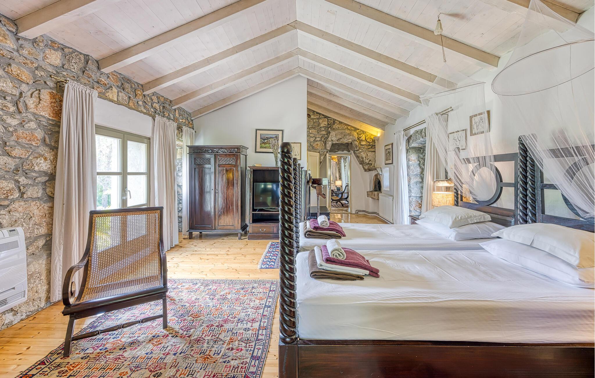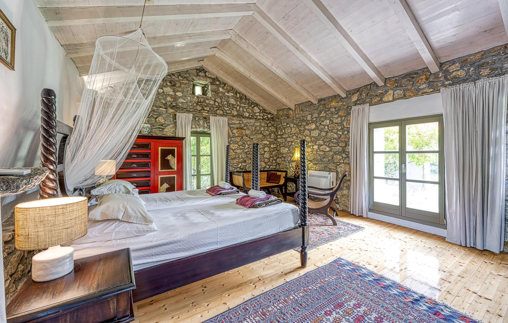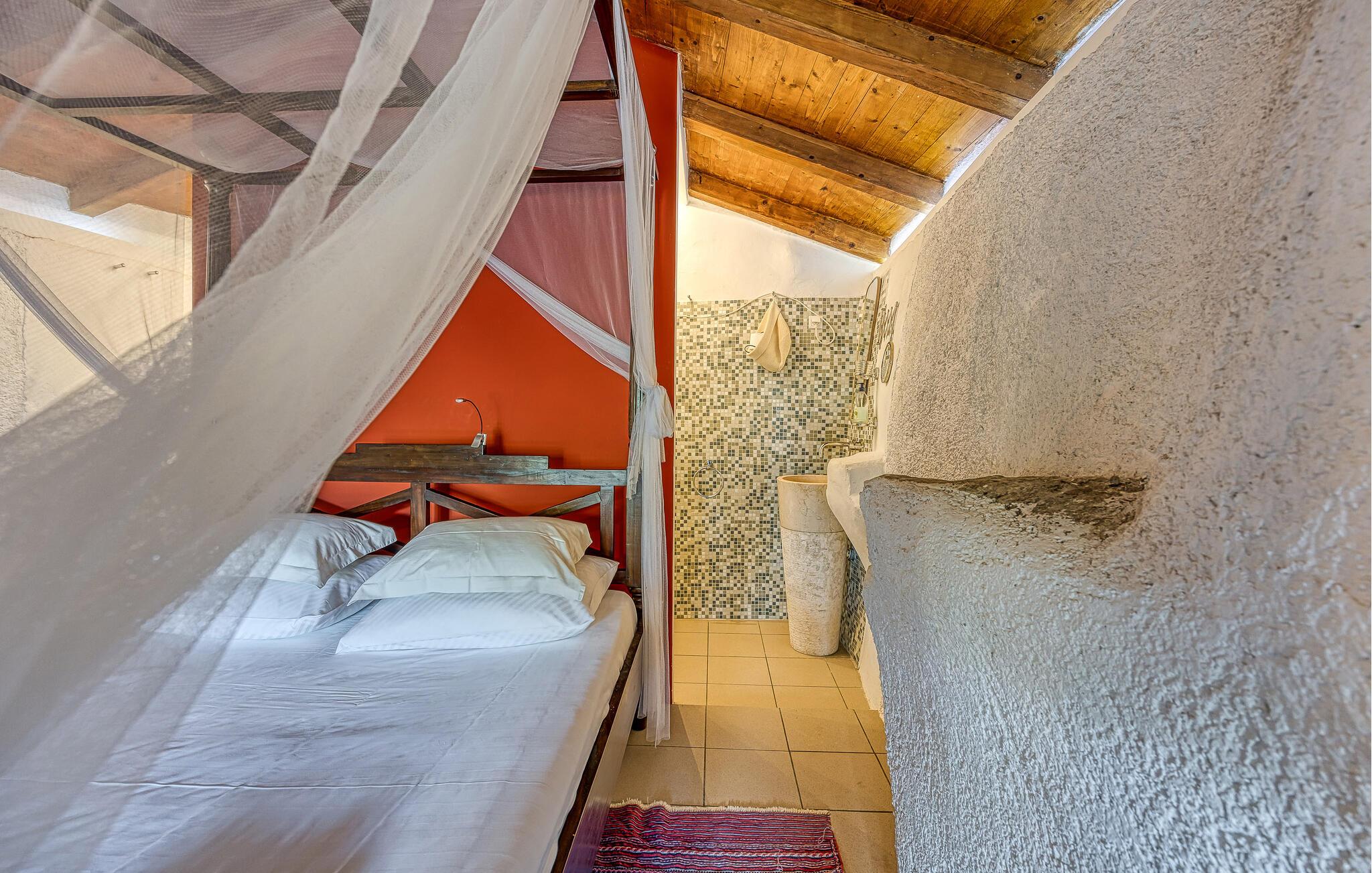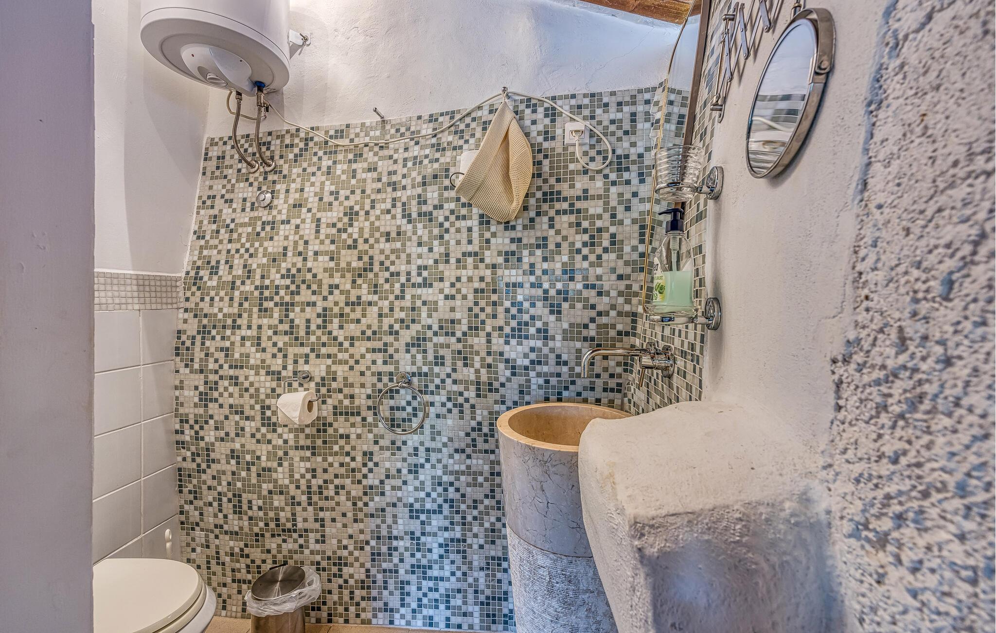 Rustikk atmosfære i et rolig område. Omgitt av den vakre, grønne middelhavsfloraen på øya Krk, finner du dette smakfullt og tradisjonelt innredede feriehuset. Bajcici er et rolig sted i Kvarnerbukten. I første etasje av feriehuset ligger det romslige kjøkkenet og stuen, mens i andre etasje er det to soverom. Det lille, koselige annekset venter på gjestene med ett soverom og et bad. Videre venter et vakkert svømmebasseng og terrassen på den inngjerdede naturlige eiendommen, hvor du kan nyte utsikten over bassenget og de varierte omgivelsene mens du nipper til en kopp kaffe. Besøk byen Krk, i sommermånedene er mange kunstnere og ensembler gjester her. De andre pittoreske byene Vrbnik, Baska, Malinska og Punat ligger også på øya, de vil gjerne invitere deg til å besøke dem. Øyene Rab, Cres og Losinj kan nås daglig med utfluktsbåter. Den lille øya Kosljun er veldig sjarmerende og ligger i bukten Puntarska Draga. Her finner du, blant andre kulturhistorisk verdifulle steder, et kloster som huser et arkeologisk museum og et bibliotek med imponerende historiske bøker. Folkedrakter fra øya Krk og fra de andre regionene i Kvarnerbukta oppbevares også her. Den lille øya er et svært attraktivt utfluktsmål på grunn av sin viktige kulturarv og besøkes av mange turister. Under sommerfestivalen på Krk arrangeres det også konserter i klosteret.