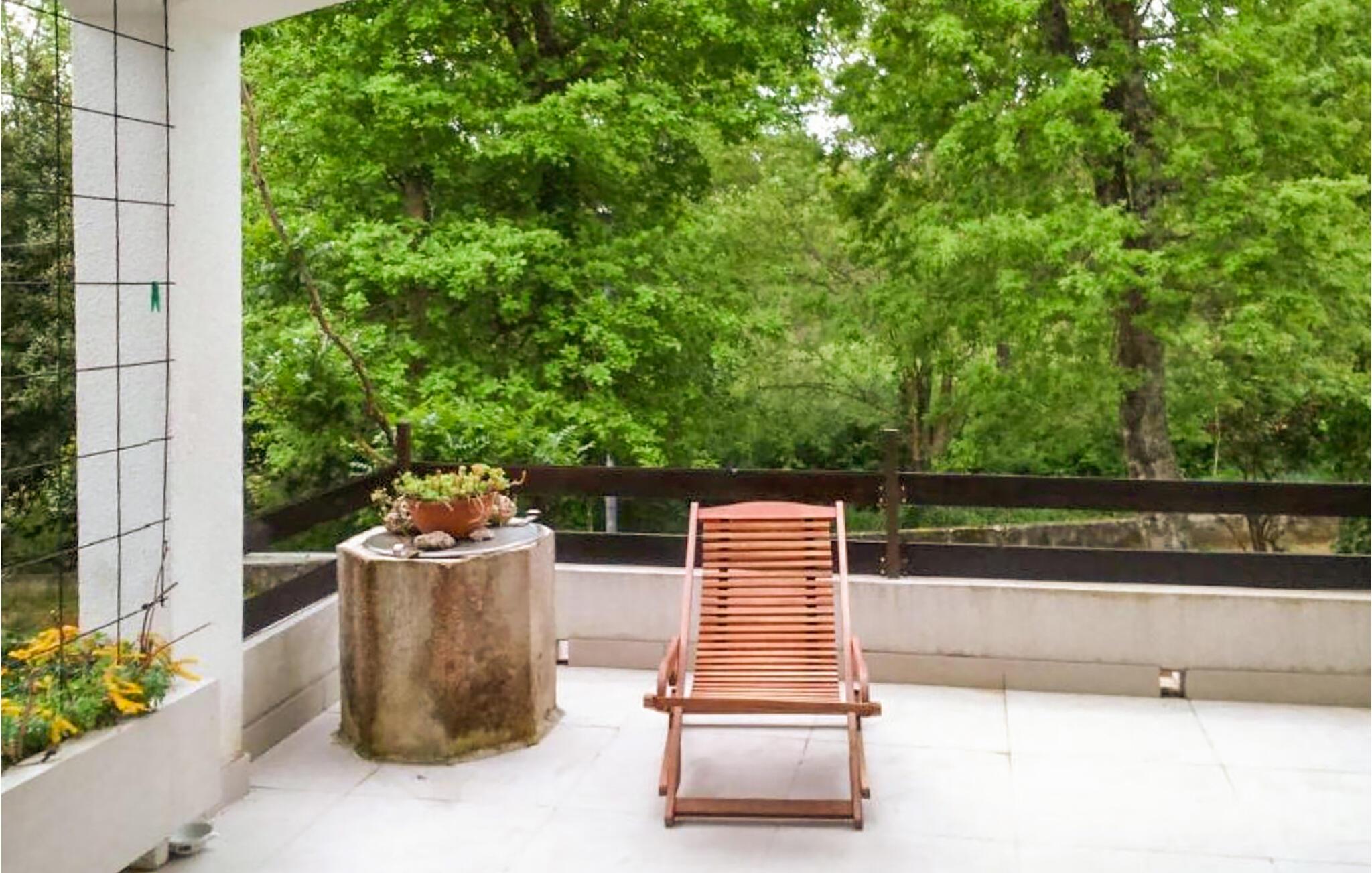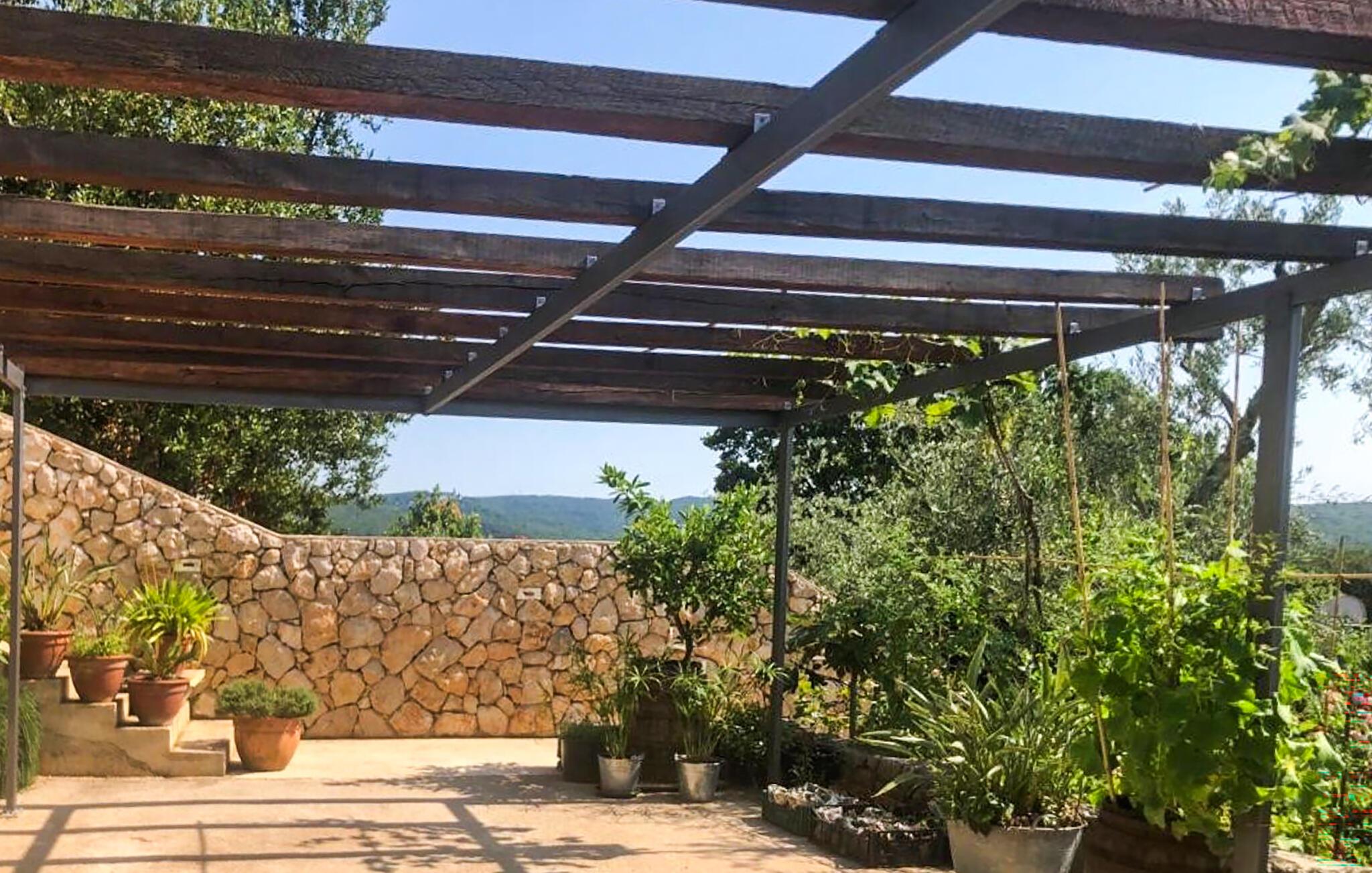 Du kan nyte en solid frokost på terrassen med utsikt over de grønne omgivelsene. Her kan du fordype deg i ferielesning og forfriske deg i det kjølige bassenget når du blir i godt humør.
