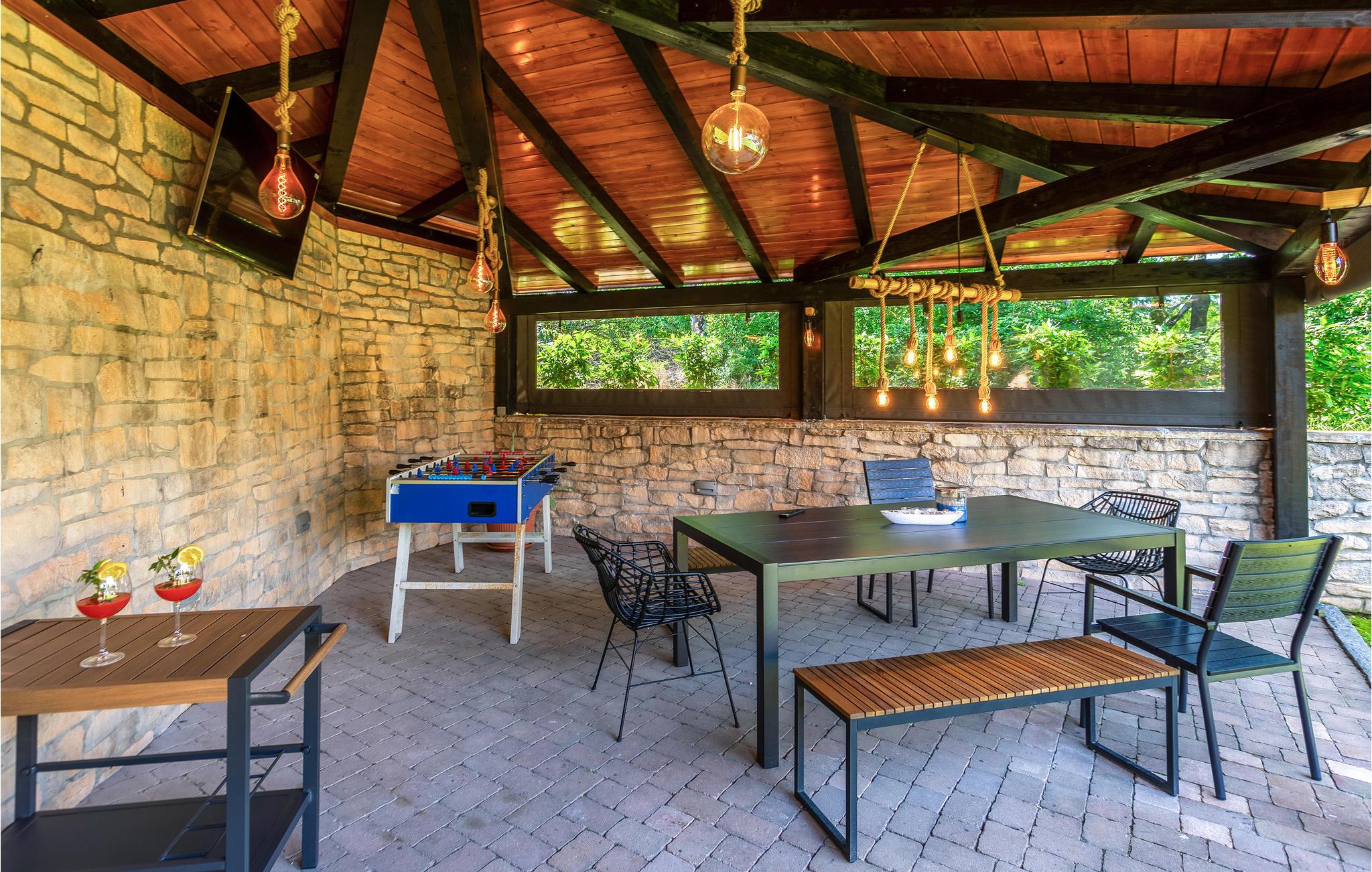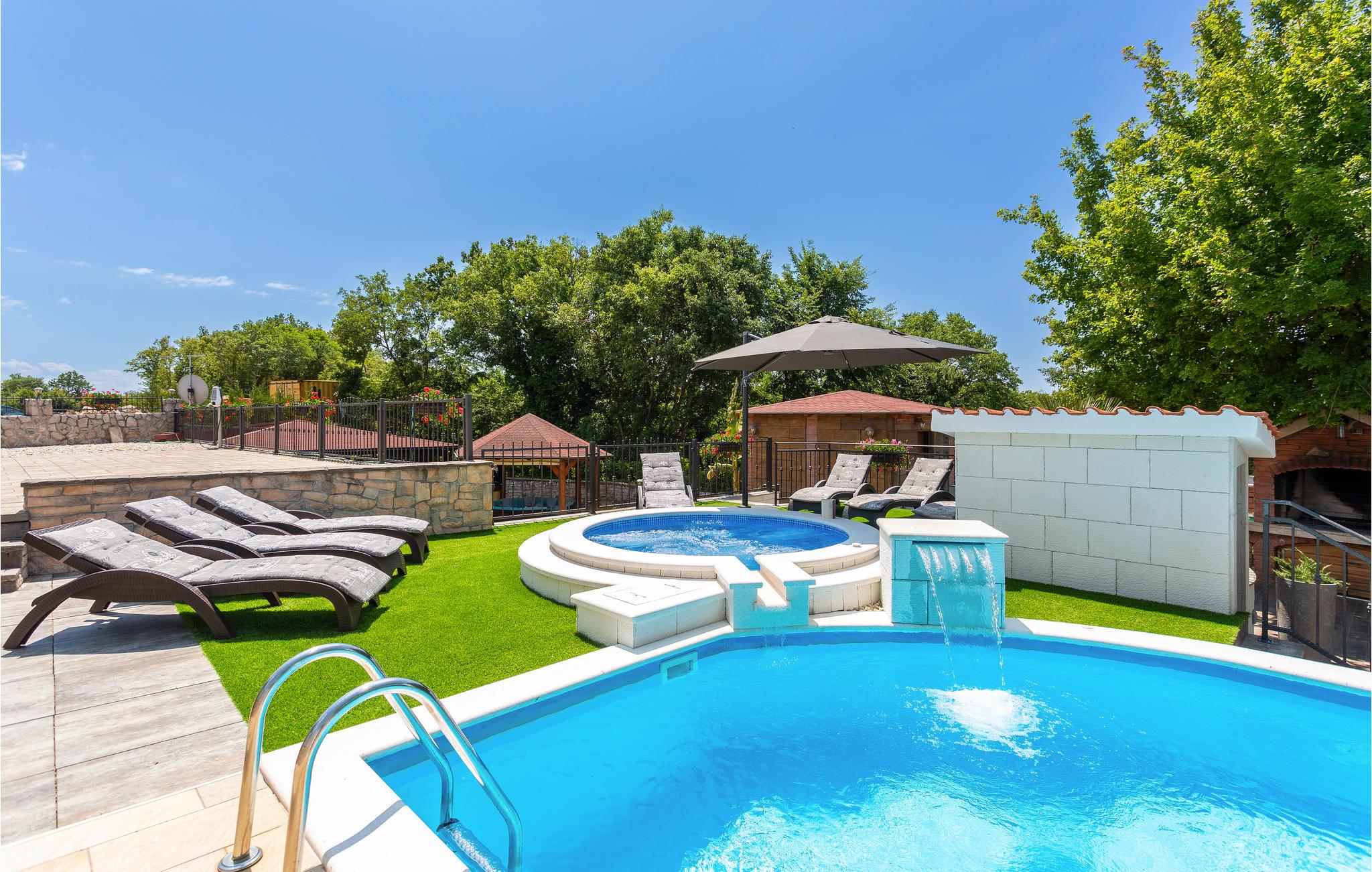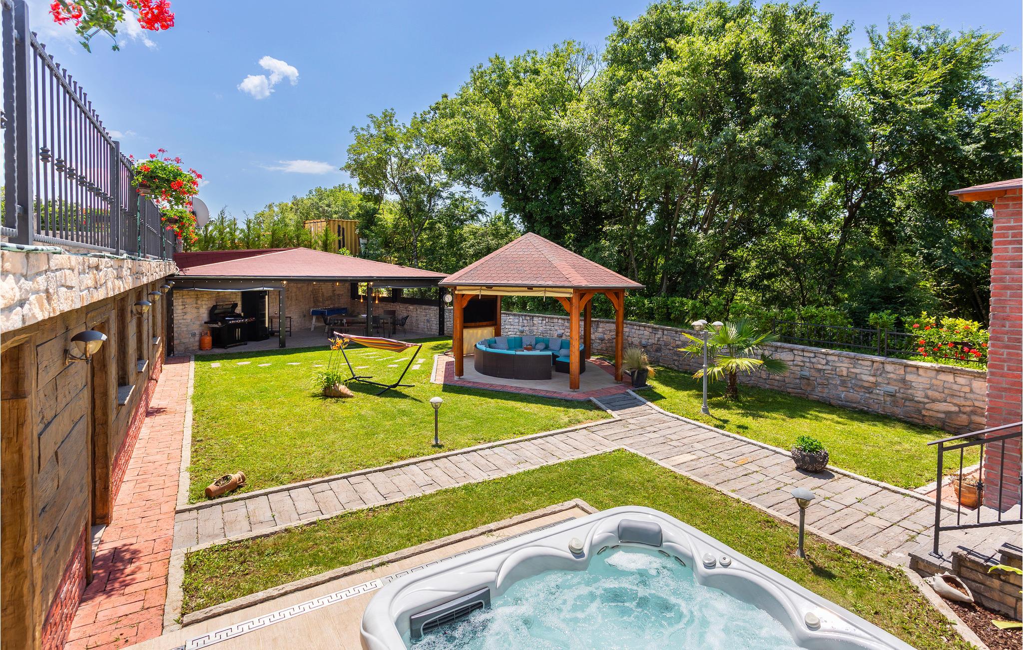 Det velholdte bassenget gir forfriskninger på varme dager, og den inngjerdede tomten sørger for nødvendig avstand. Slapp av i skyggen av lysthuset eller i badstuen og boblebadet, som ligger i hagen i en separat bygning.
