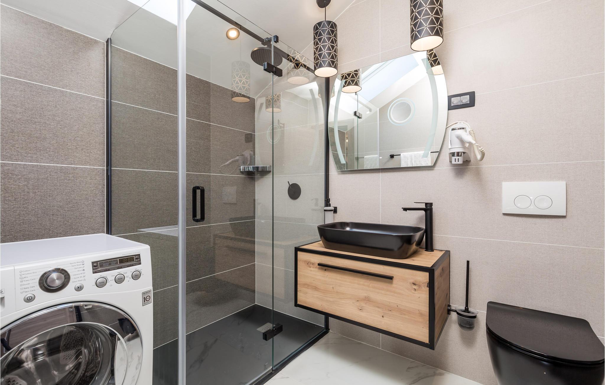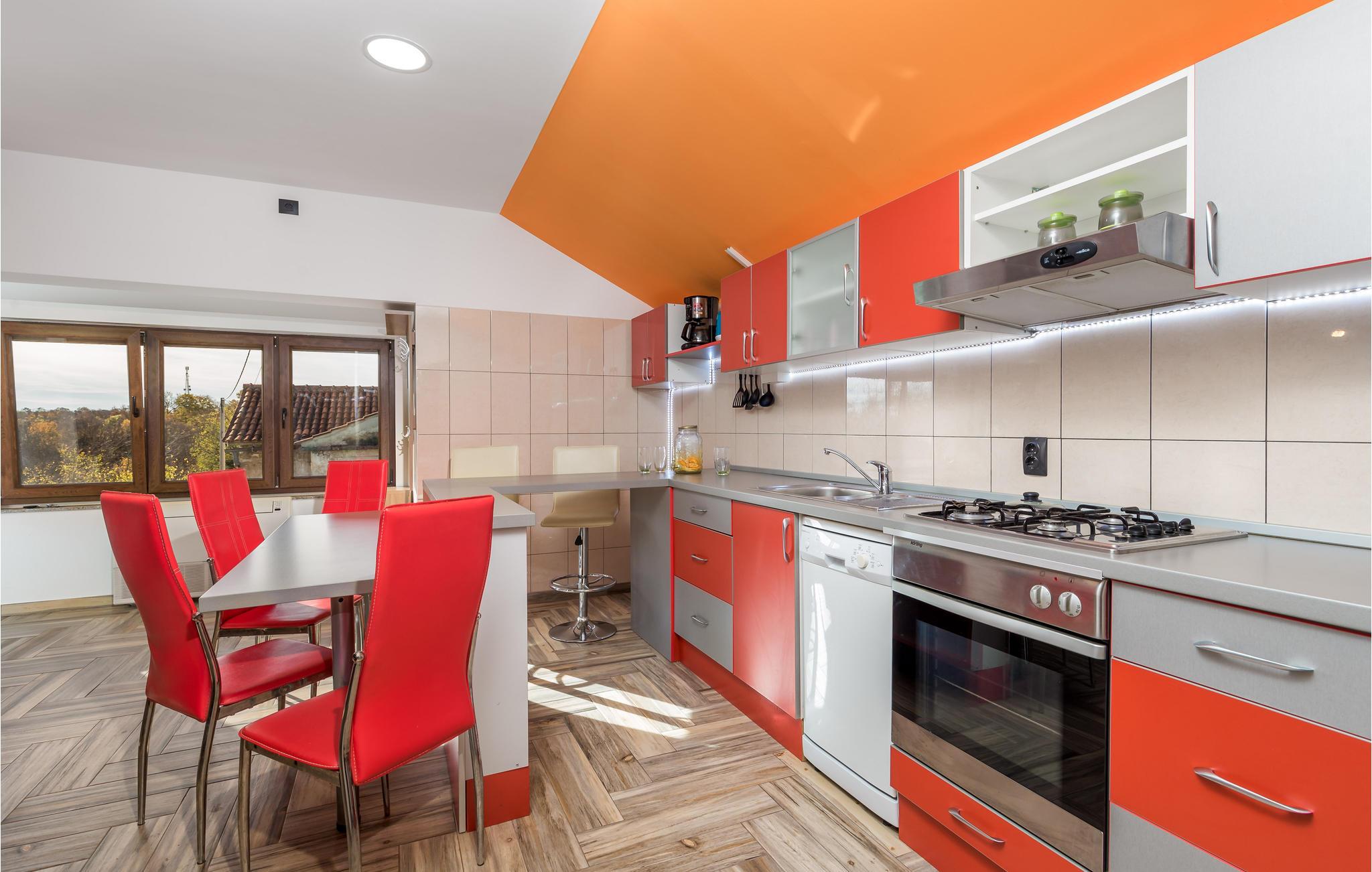 Vakkert og omsorgsfullt innredet feriehus på øya Krk, bestående av to enheter som er forbundet med en utvendig trapp. Den lyse, luftige innredningen og de varme fargene skaper en behagelig atmosfære som garanterer et avslappende og koselig opphold. Minste takhøyde er 200 cm.