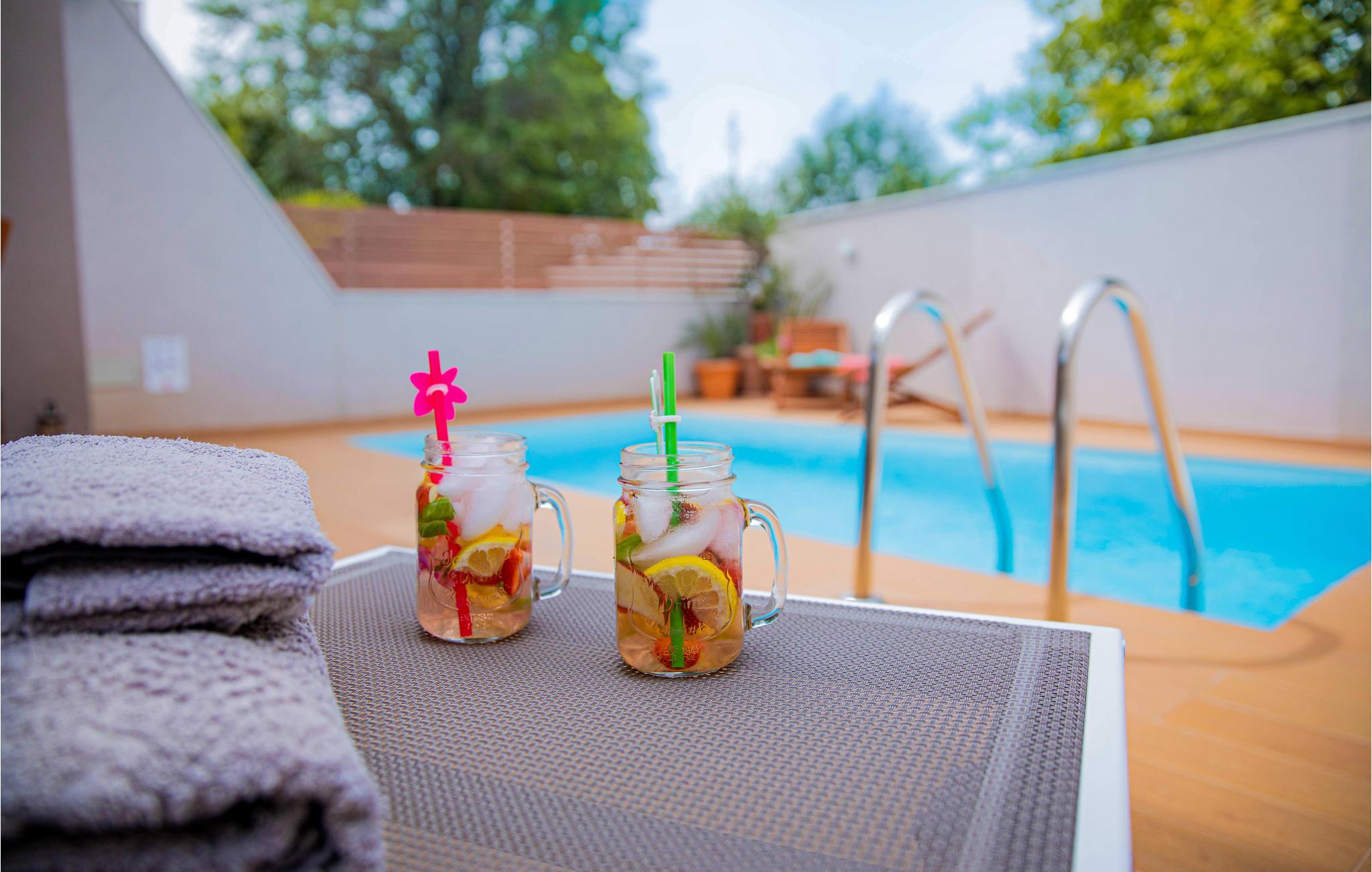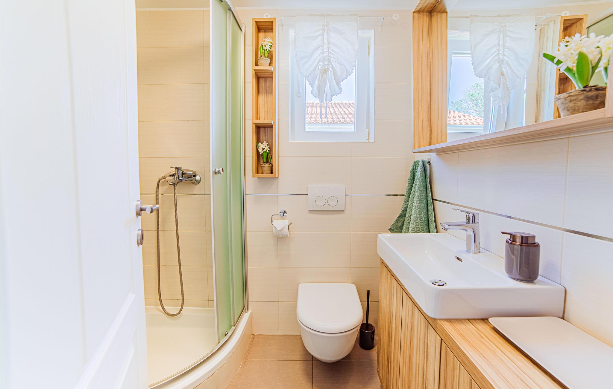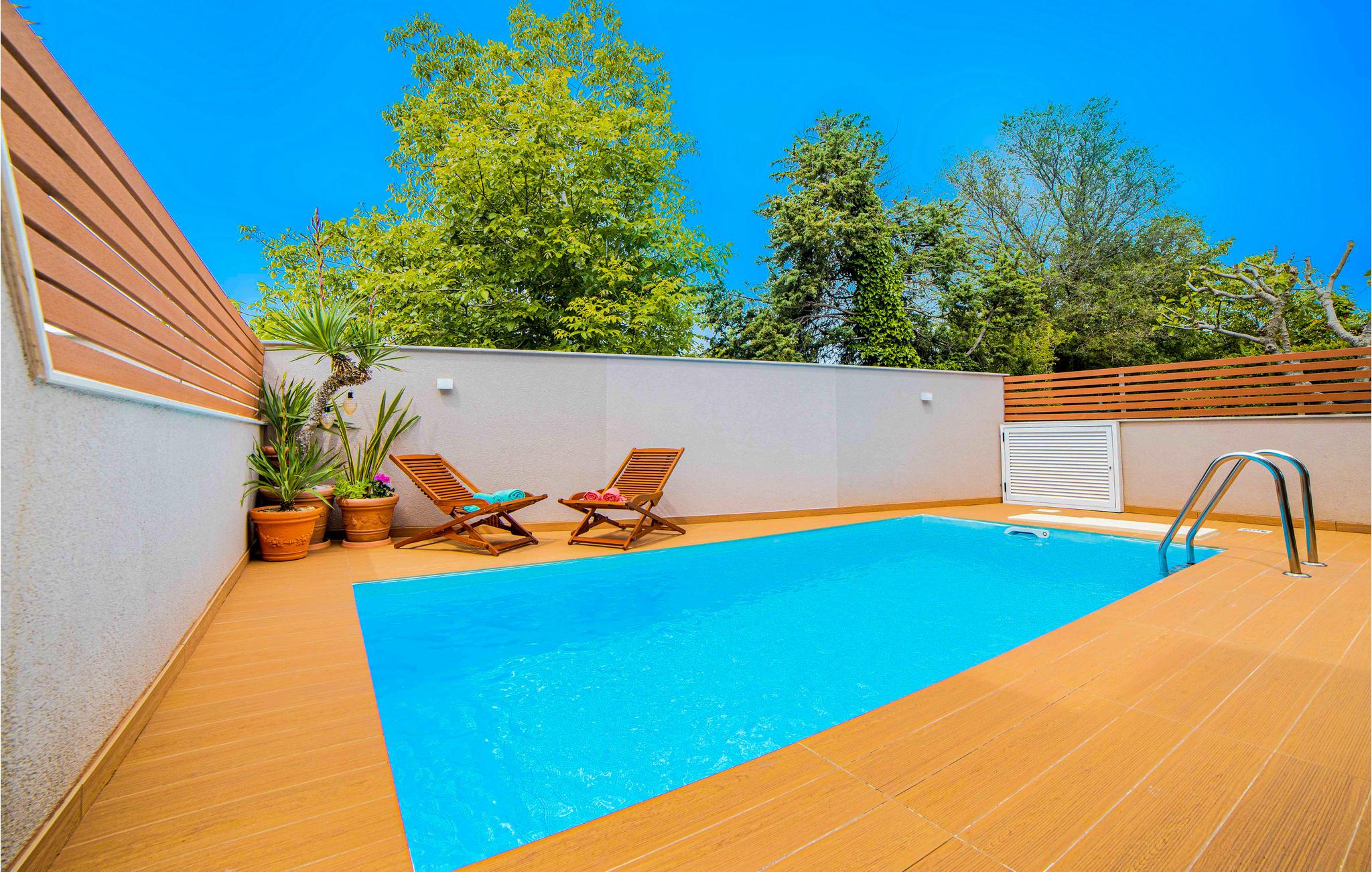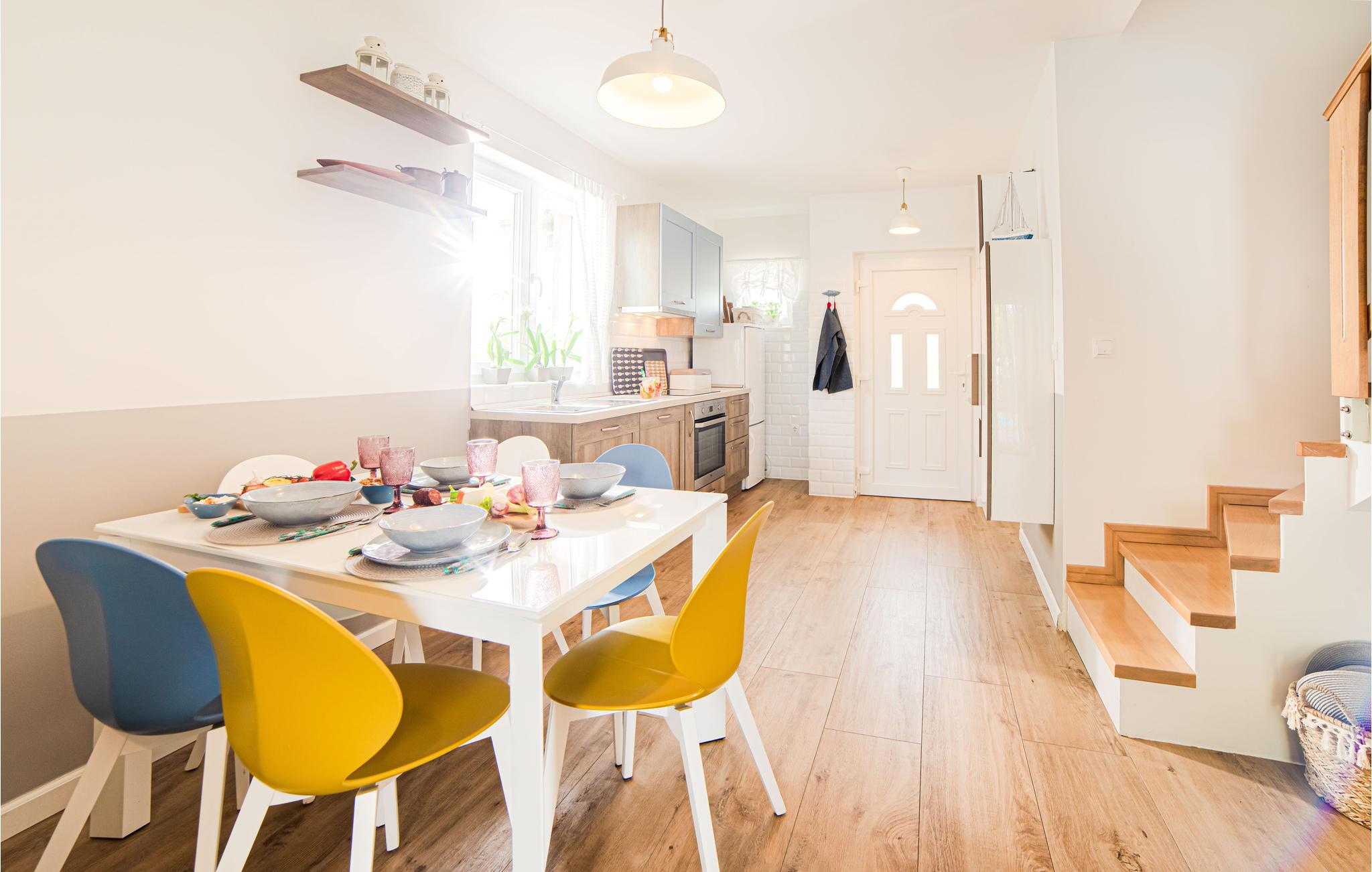 Unn deg selv og familien en ferie med velvære i dette vakre rekkehuset. Denne innkvarteringen ligger i den lille landsbyen Klimno på øya Krk, og er innredet med sans for detaljer og stil. I første etasje er stuen med kjøkken. Fra stuen har du også tilgang til den overbygde terrassen. Soverommet og badet i første etasje nås via en bratt trapp uten rekkverk. Forfriskning finner du i svømmebassenget utenfor. Klimno er et romantisk sted med den lille kirken St. Klement fra det 14. århundre. Dra nytte av det gunstige klimaet i den beskyttede bukten for ulike vannsporter fra mai til sent på høsten.