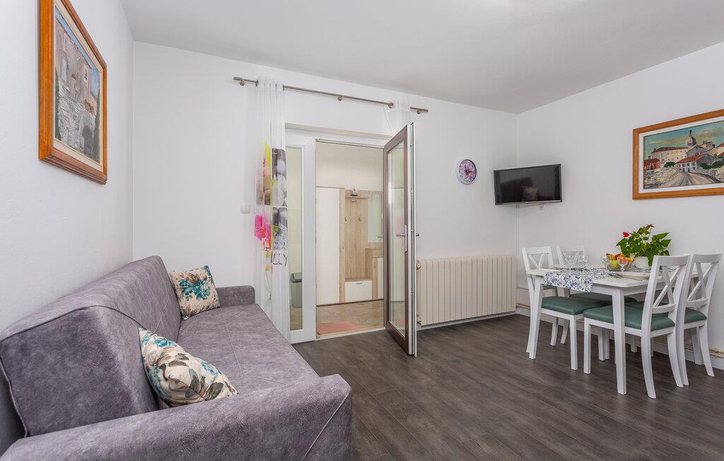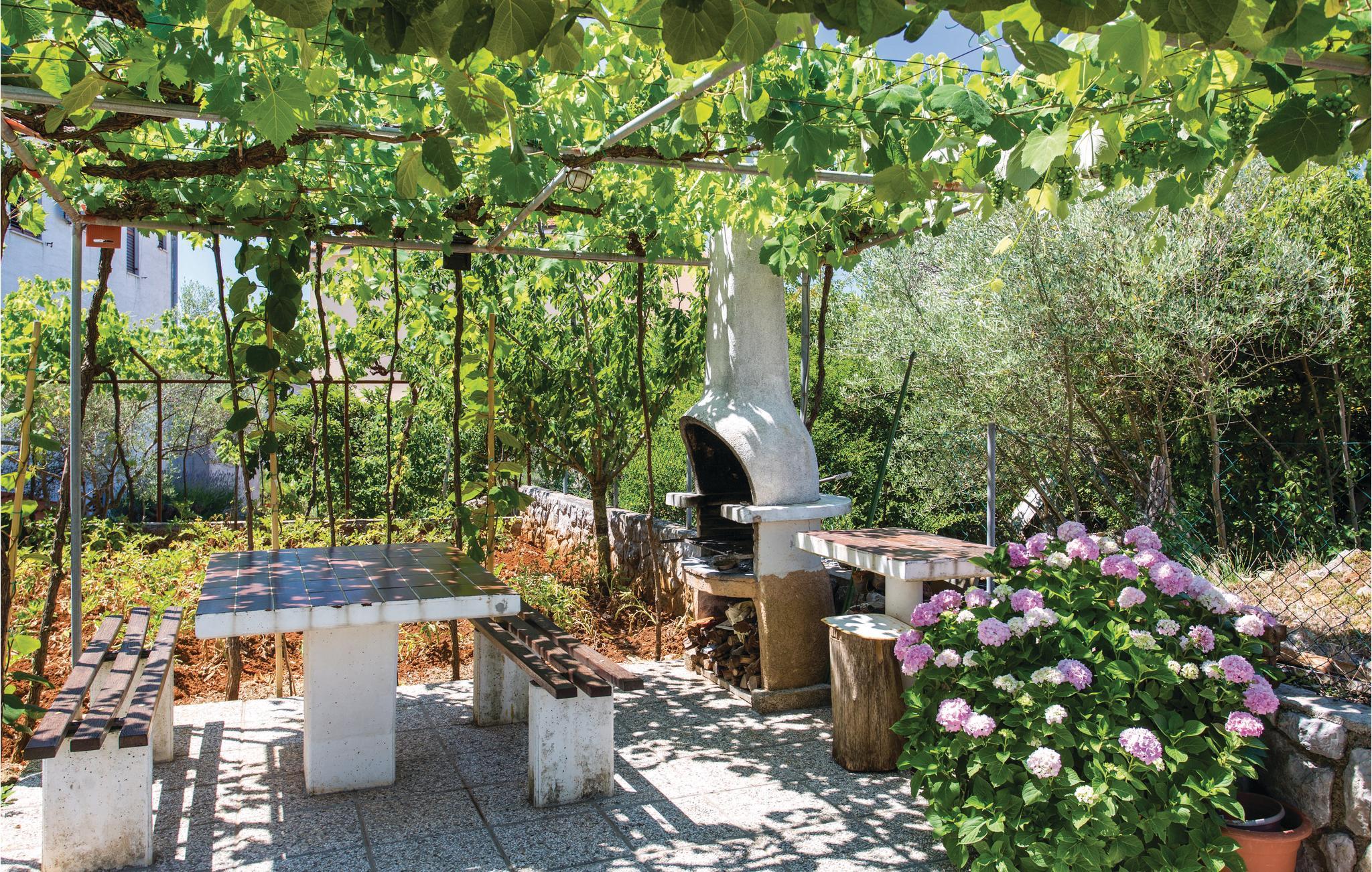 Denne koselige ferieleiligheten ligger i et bolighus på øya Krk. Den består av to separate enheter som deler en felles terrasse. De tilbyr de ideelle forholdene for to familier som ønsker å tilbringe ferien sammen, men likevel ønsker å opprettholde sitt privatliv. Den overbygde terrassen er et flott sted for frokost og grilling. Her kan du også investere tiden din i romanen du tok med deg, spille kort eller se på barna leke.