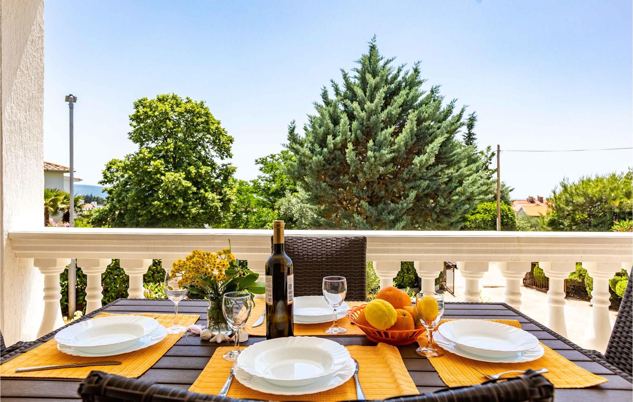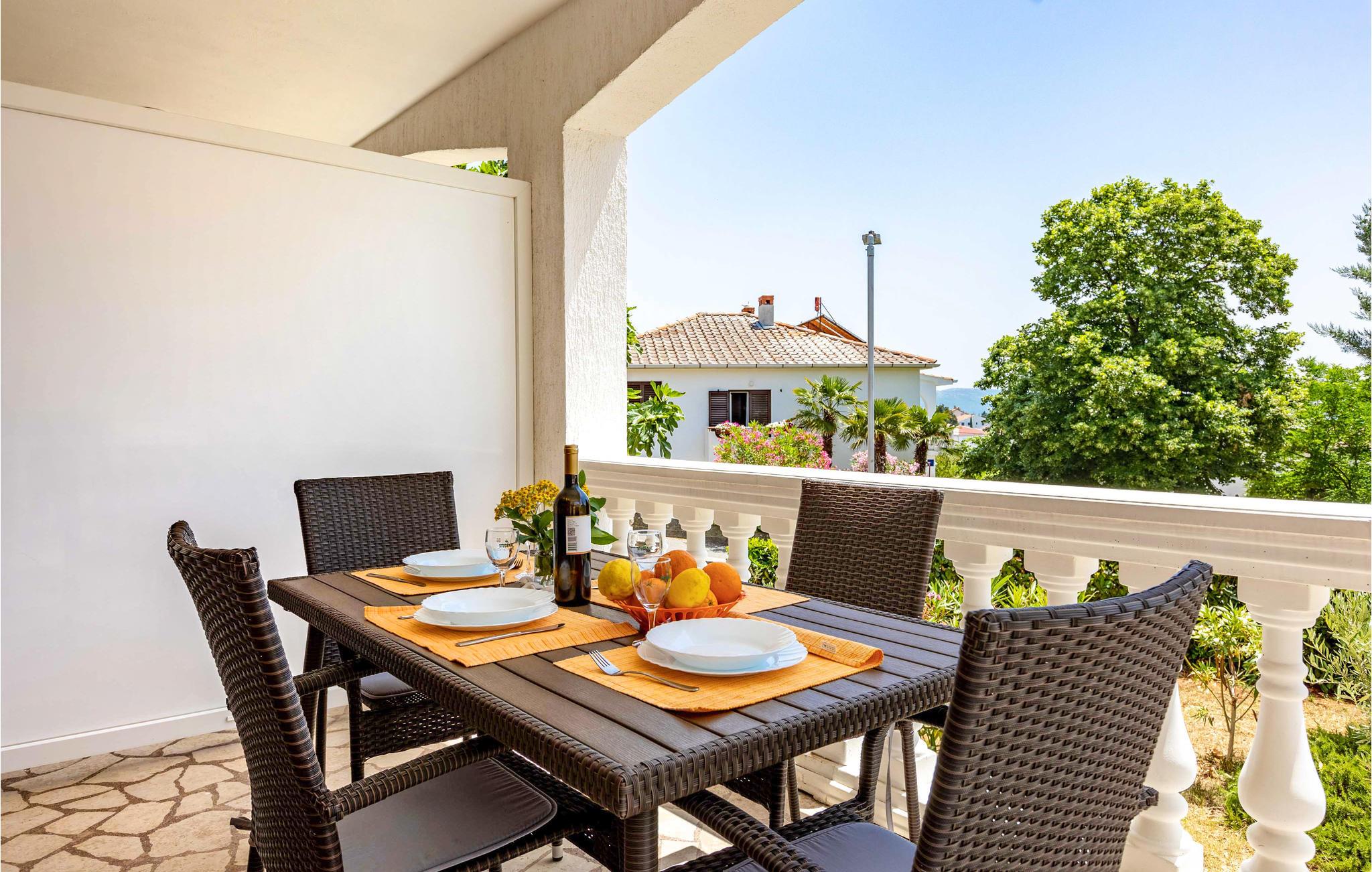 Nyt den fantastiske øyatmosfæren mens du bor i et hyggelig boligområde i byen Krk, midt på øya med samme navn. Den praktisk møblerte ferieleiligheten ligger i første etasje og tilbyr deg blant annet et flott sted å slappe av på den overbygde terrassen. De nærmeste strendene kan lett nås til fots, slik at du alltid kan ta et dykk i Adriaterhavet.